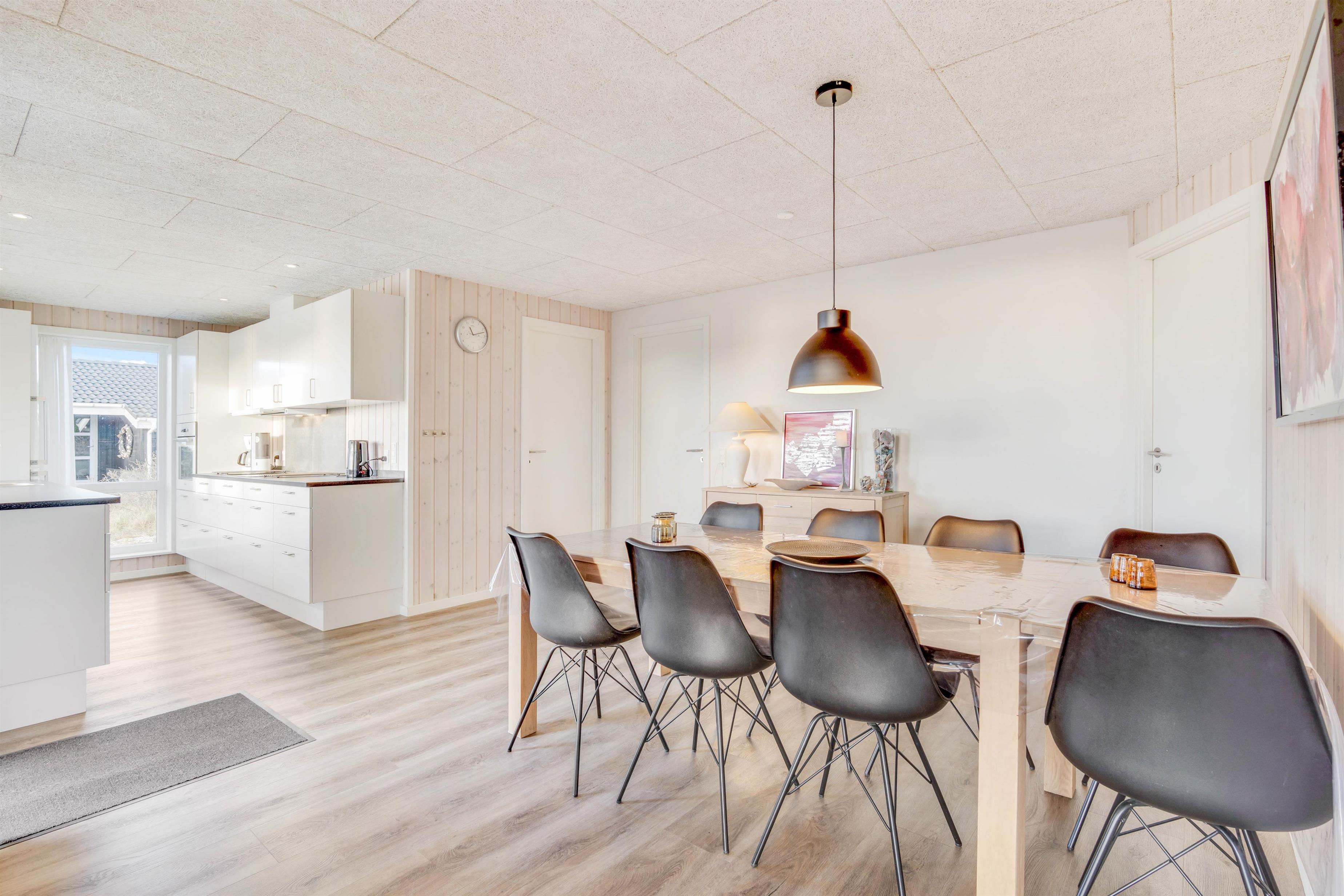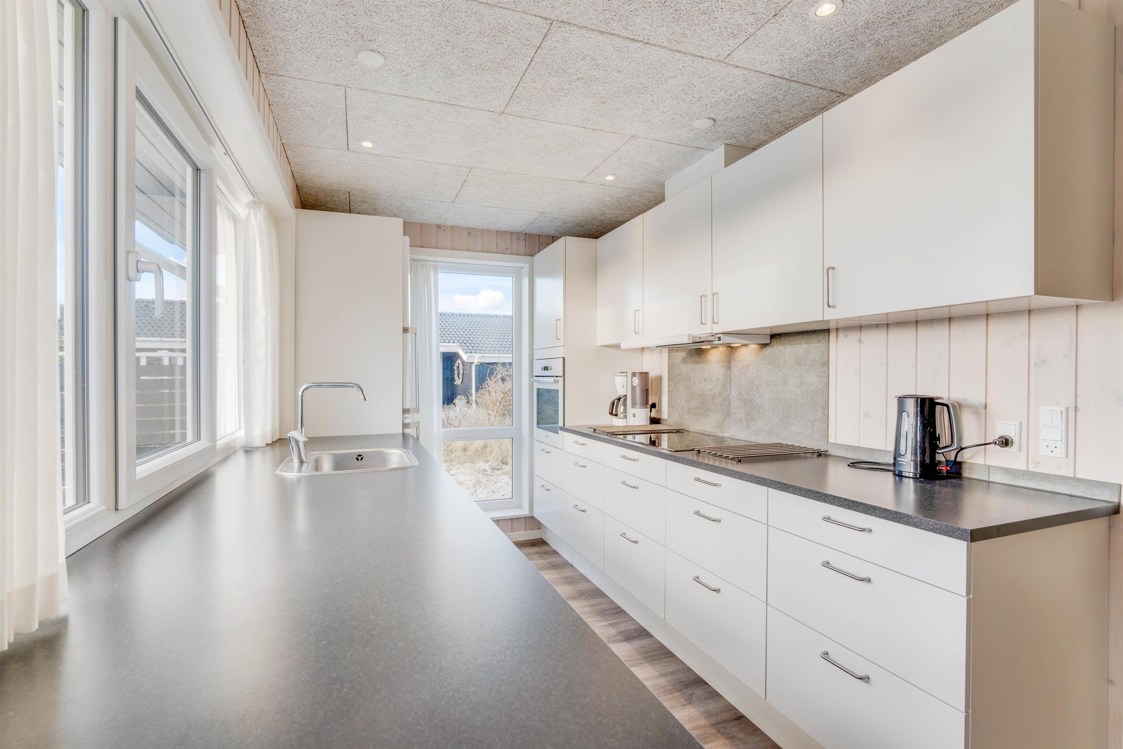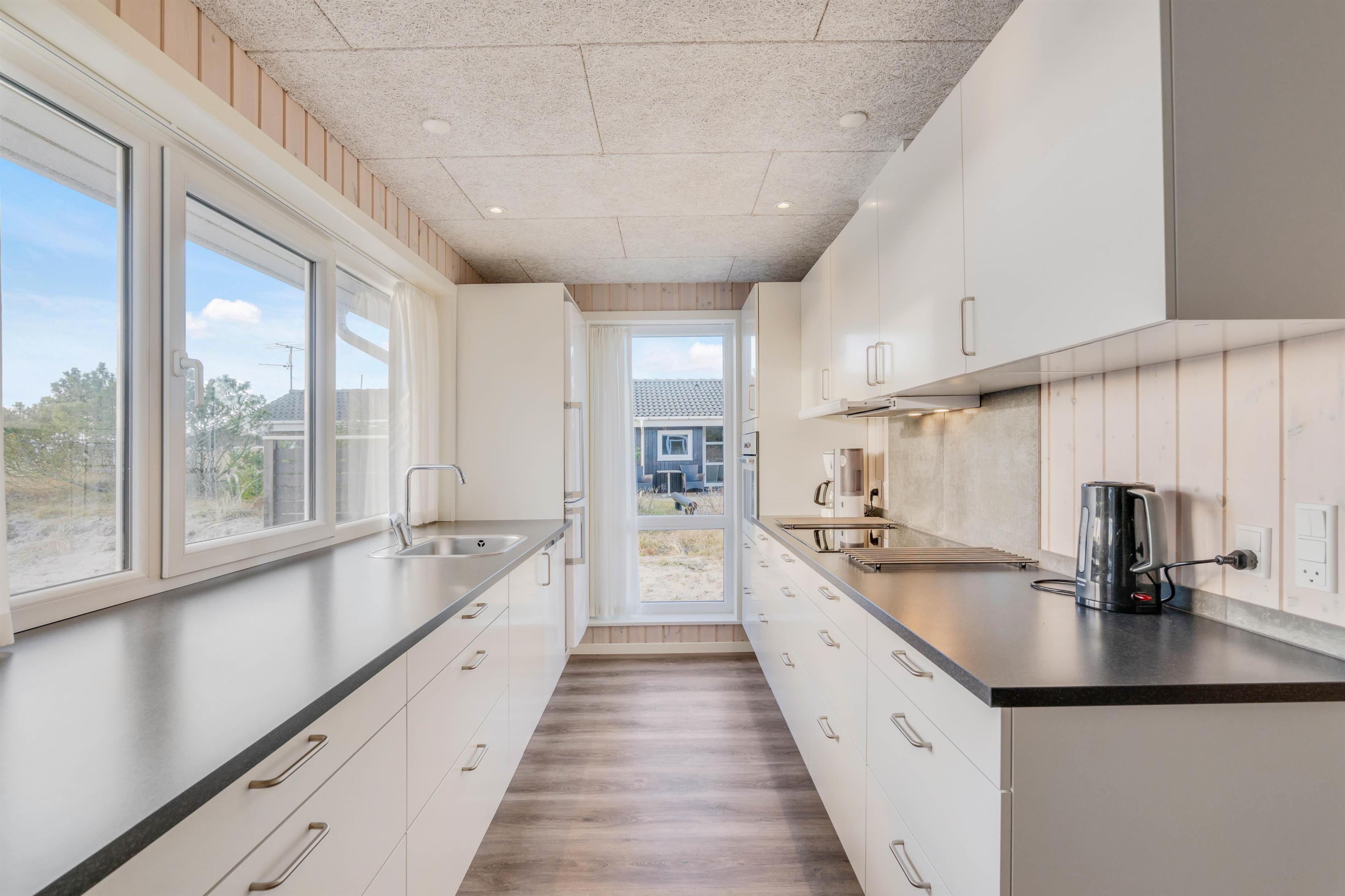 Feriehuset er opført i 2018 med stilren indretning. I det moderne køkken med det store vinduesparti er det en sand fornøjelse at tilberede dagens måltider, mens udsigten nydes til lyden af børnenes leg i haven.