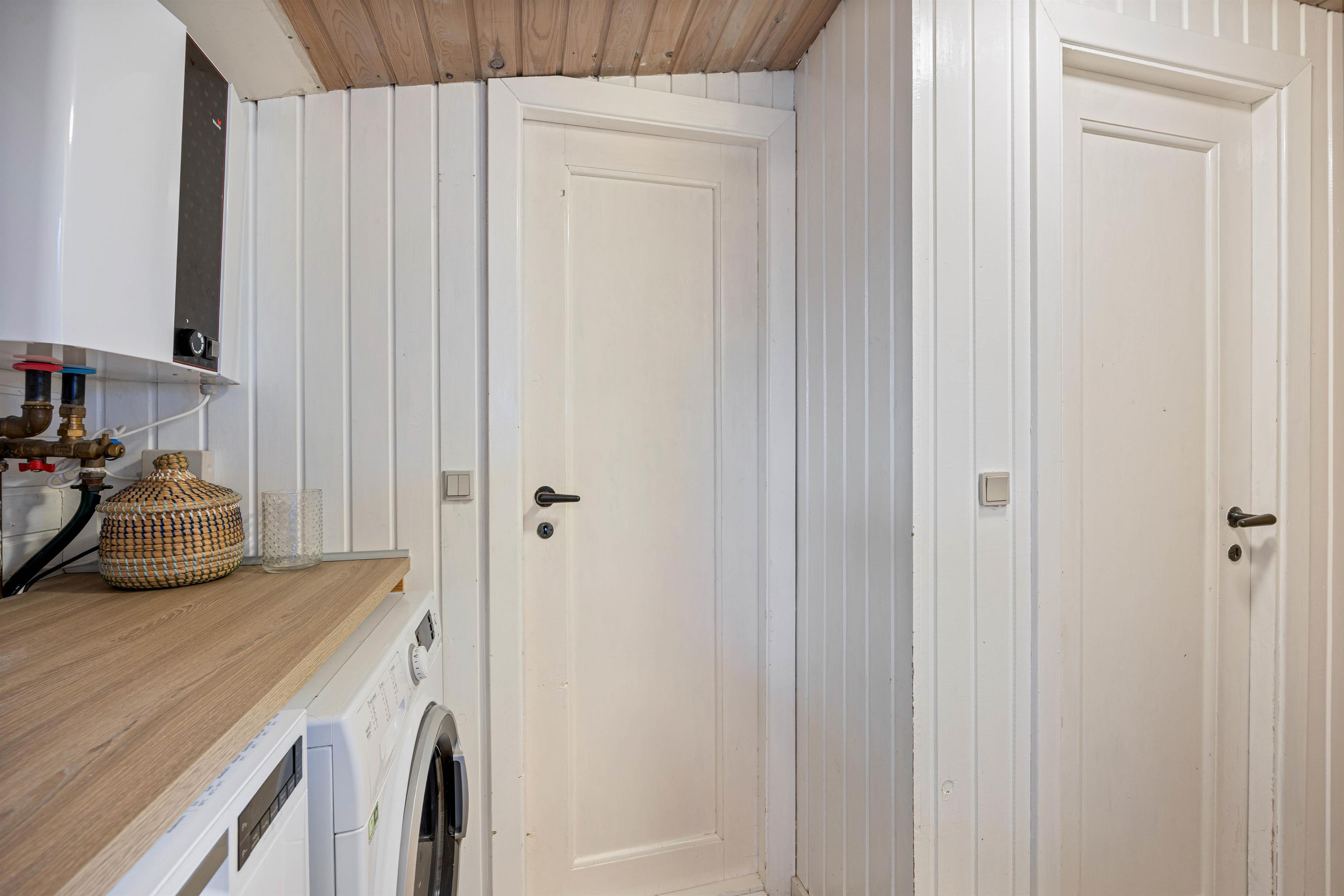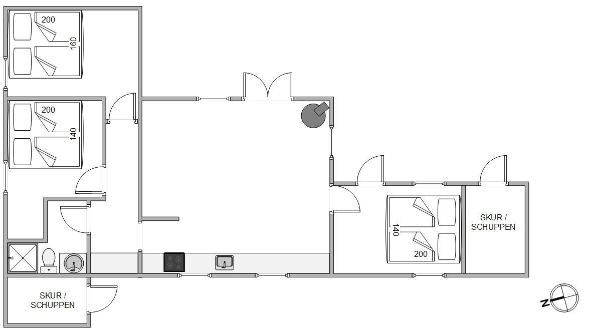 Sommerhuset fremstår lyst og hjemligt med bl.a. flotte og praktiske trægulve overalt. Ovenlysvinduer giver et fantastisk lys i sommerhuset – og når det er mørkt, kan I se stjernehimlen fra sofaen.