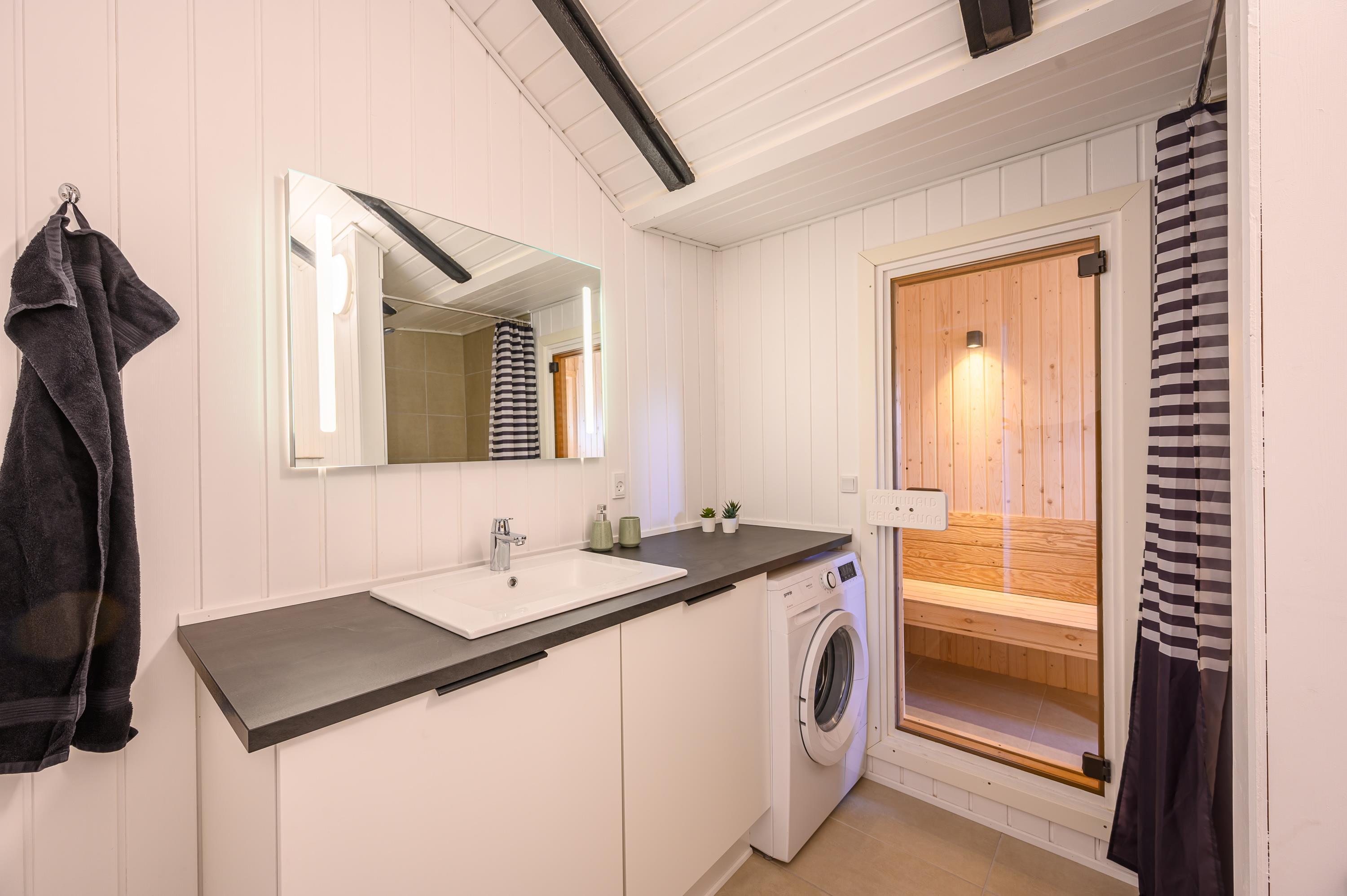 Sommerhuset er indrettet med tre gode soverum og et stort badeværelse med gulvvarme og indgang til saunaen, som inviterer til ekstra afslapning og velvære på ferien. Fra saunaen er der også udgang til terrassen med vilmarksbadet.