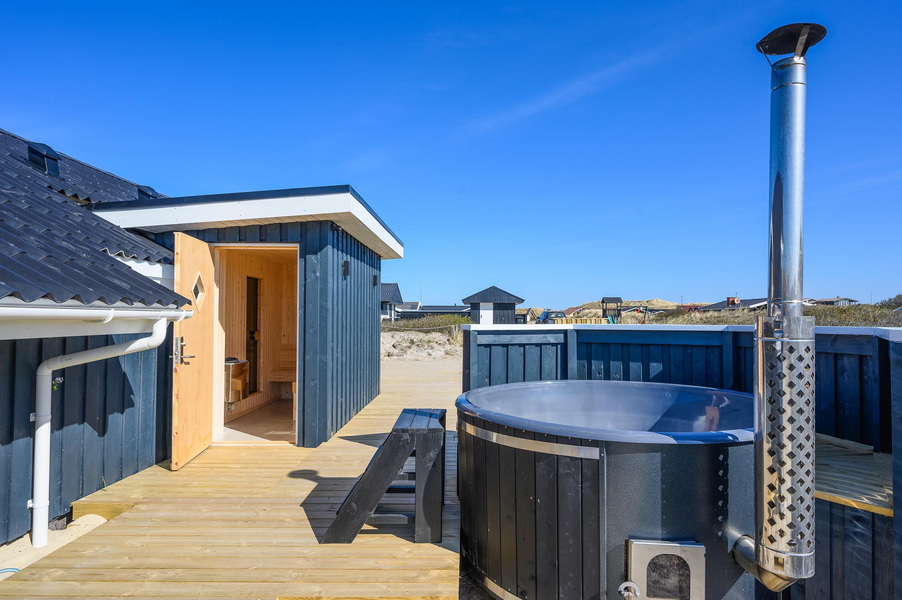 En afslappende session i det store varme udendørs badekar er lige, hvad der skal til, når der skal tankes ny energi – og efter badeturen kan I blive tørre i saunaen, som I har adgang til direkte fra terrassen. Her får I altså jeres helt eget lille wellnessområde, endda med bølgebrus i baggrunden!