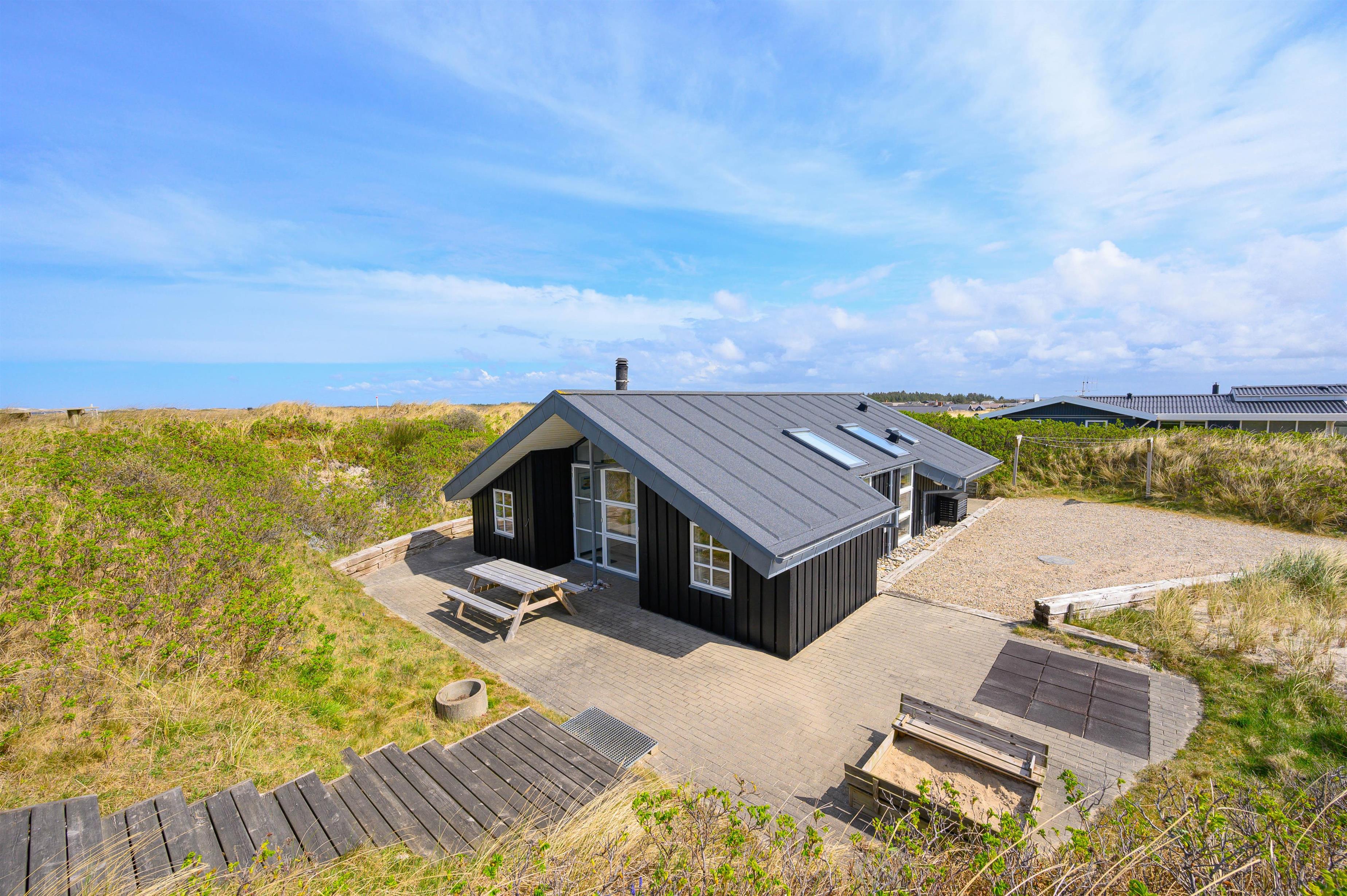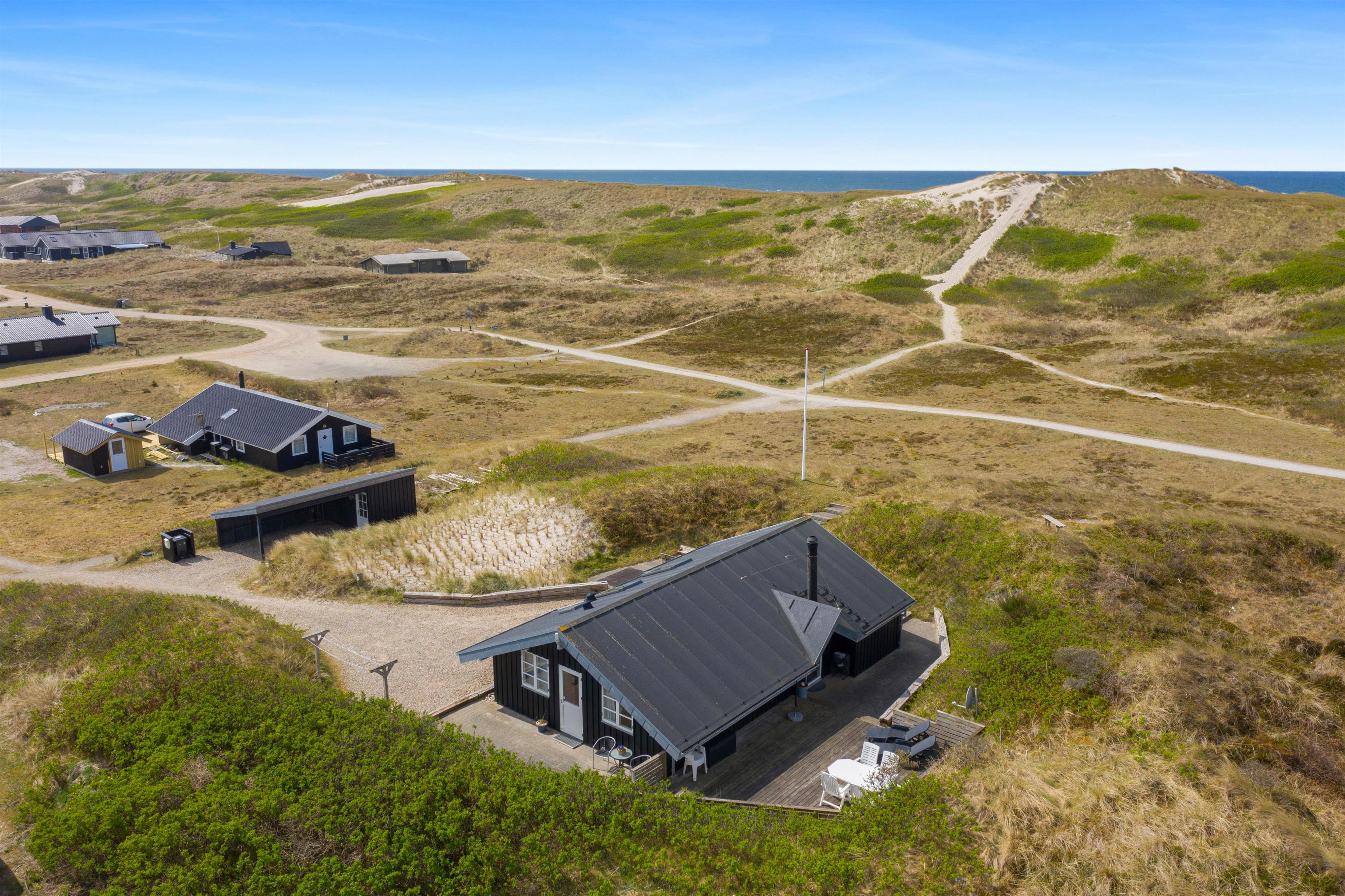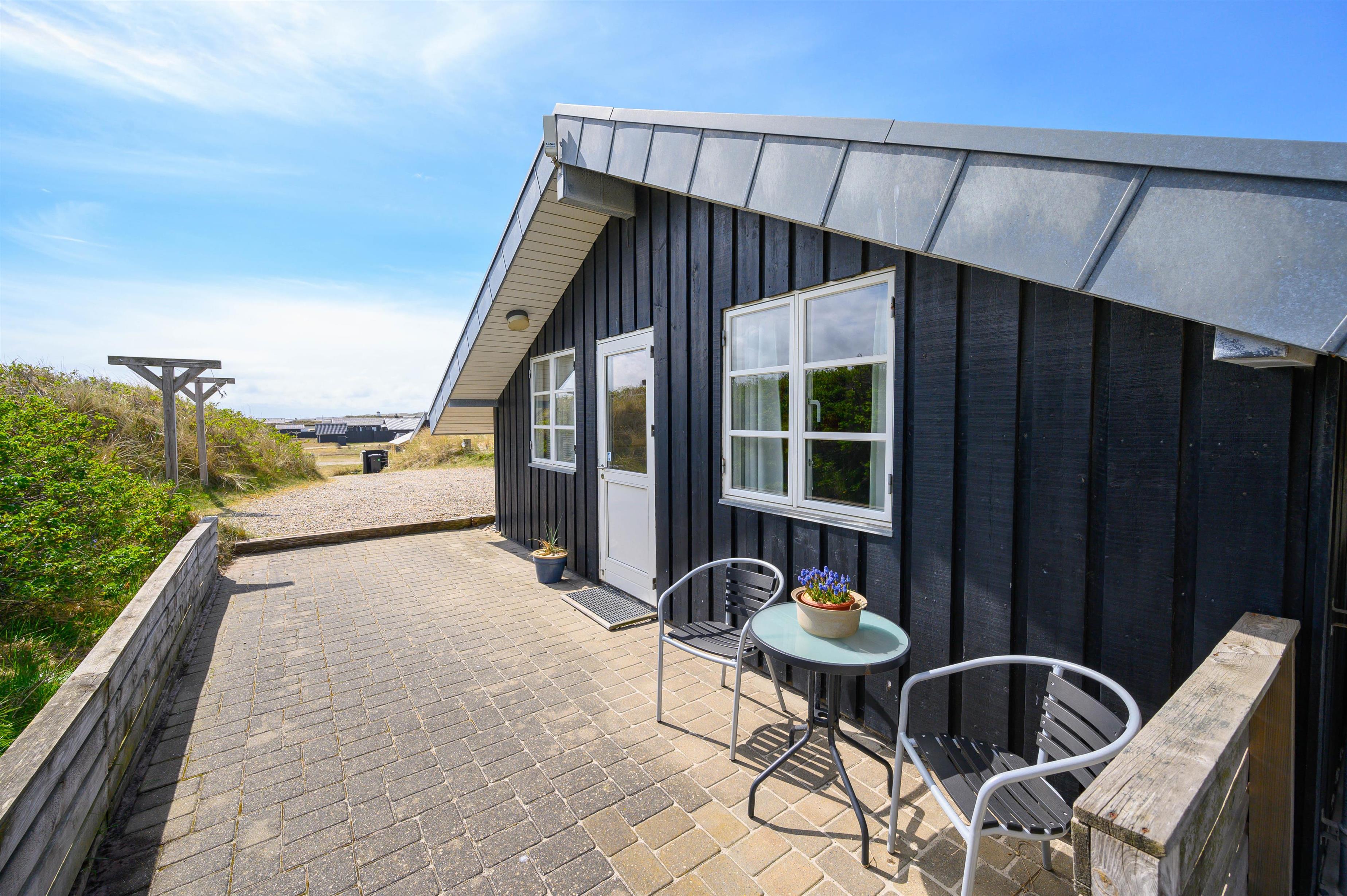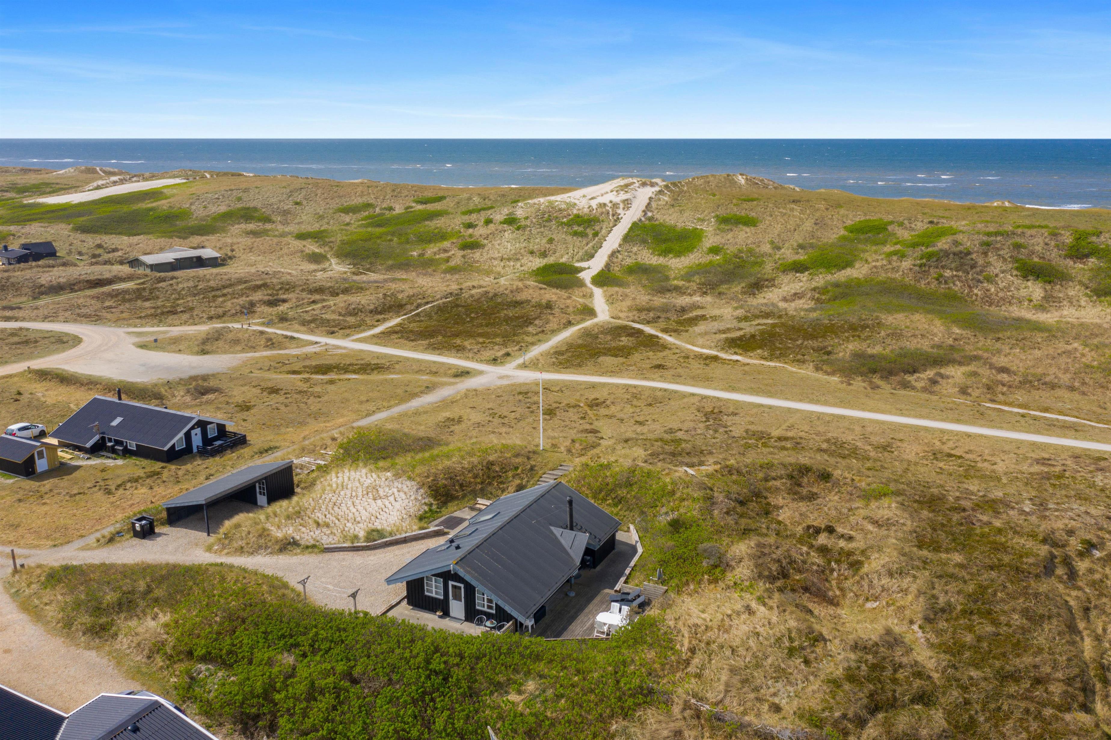 På ferien skal livet så vidt muligt leves udendørs, og det er der rige muligheder for i dette sommerhus. Det ligger kun 150 meter fra den skønne strand, på en klitgrund og er omgivet af fremragende terrasser, hvor I altid kan finde et sted i læ for vinden.