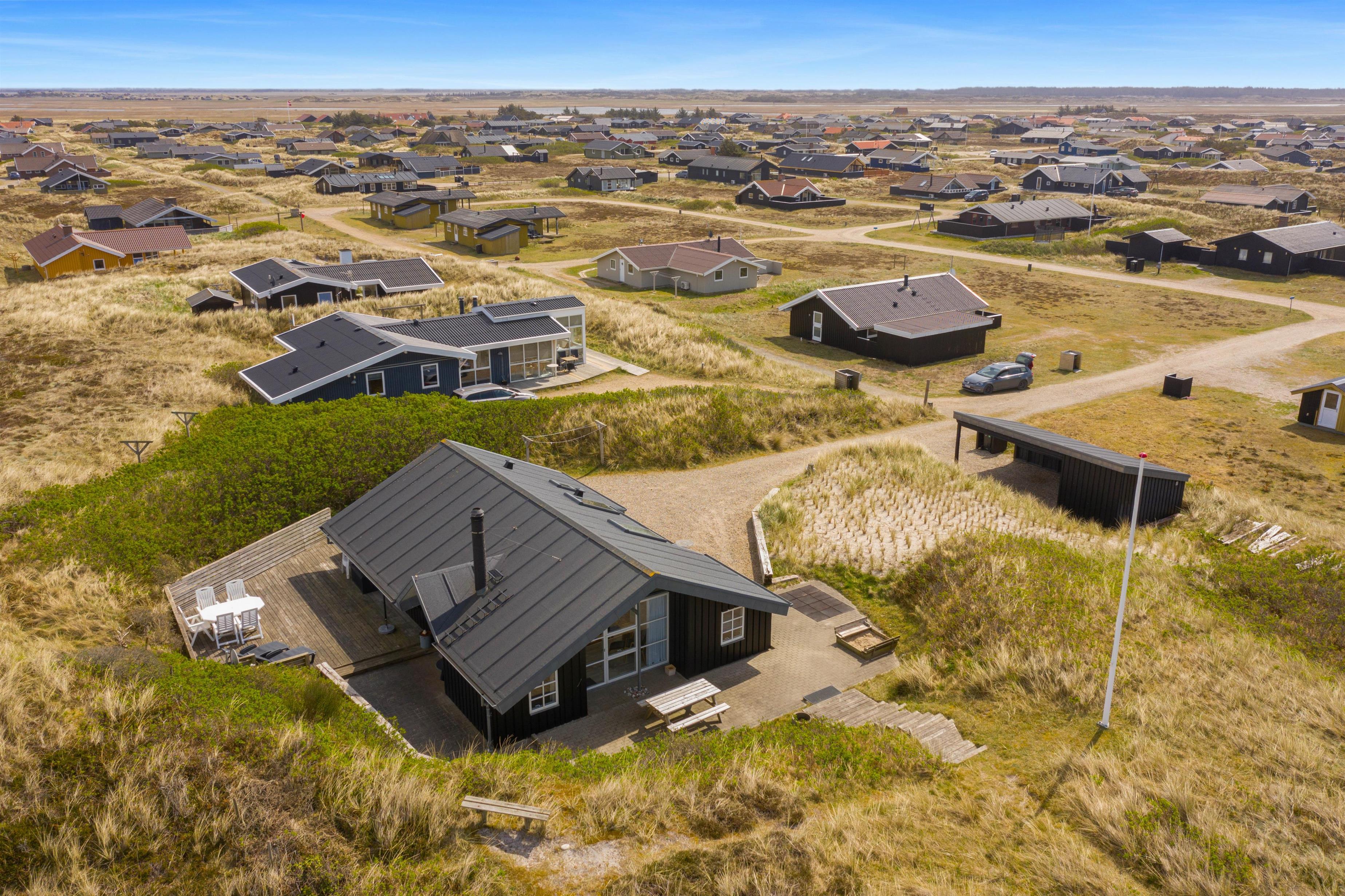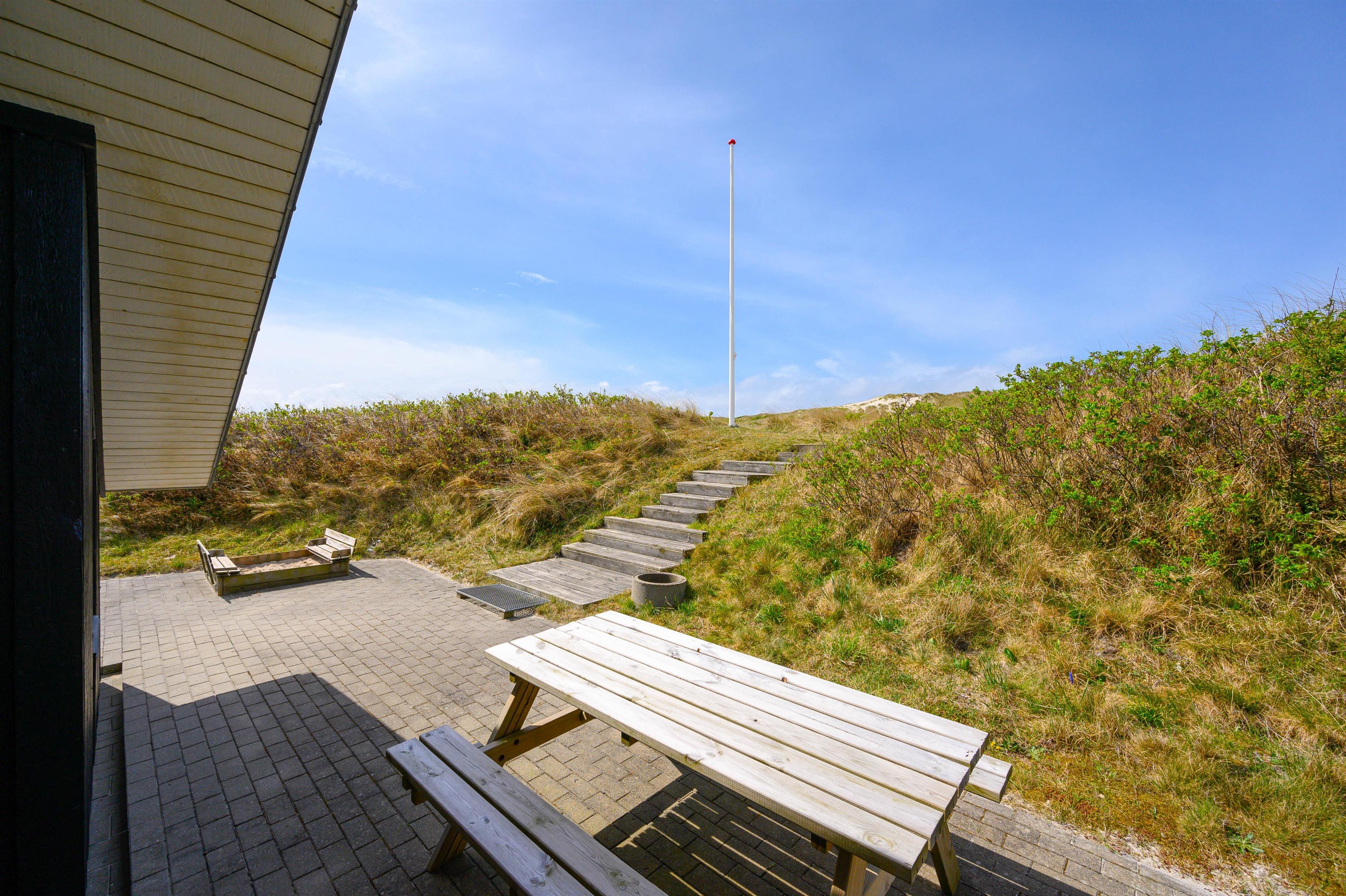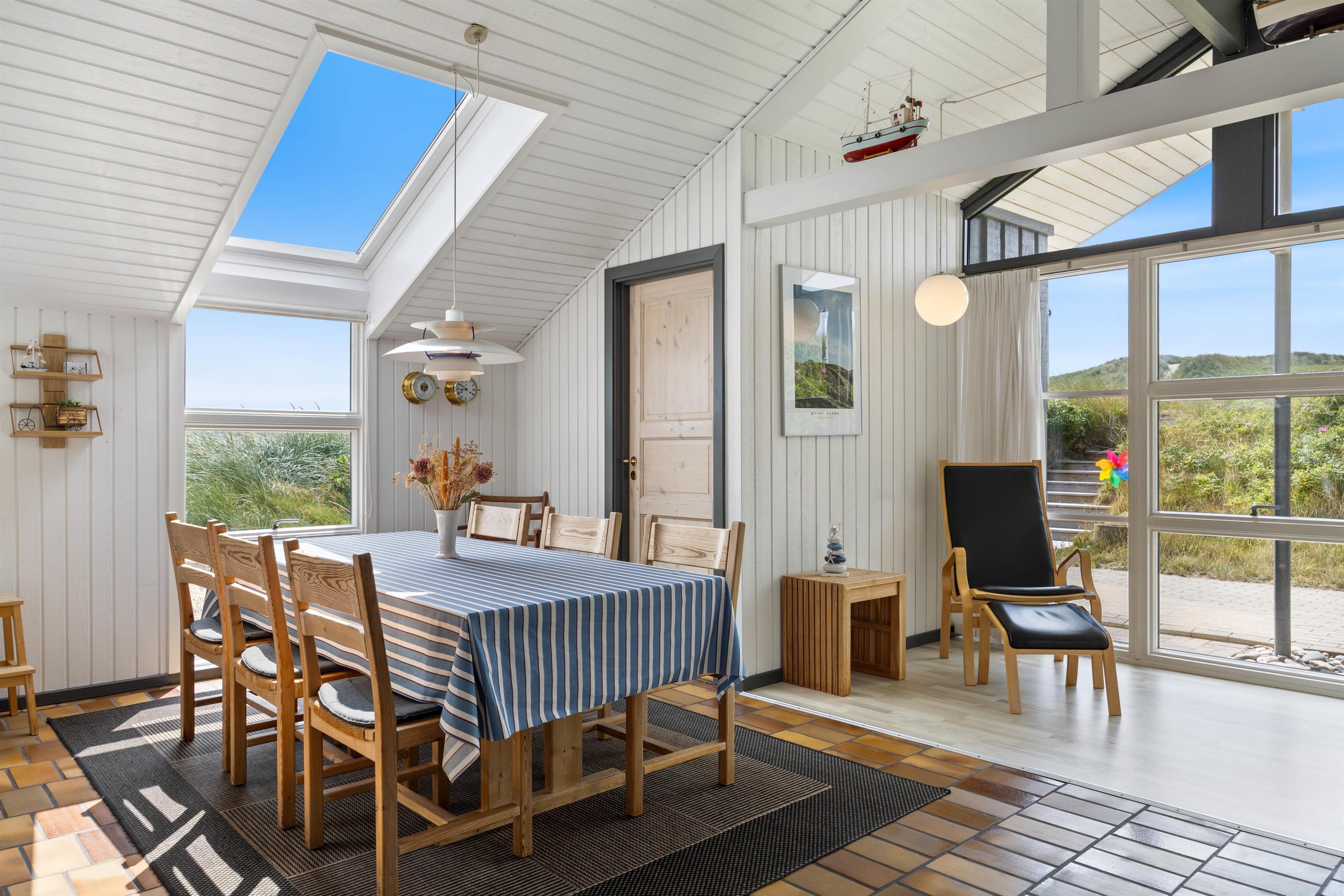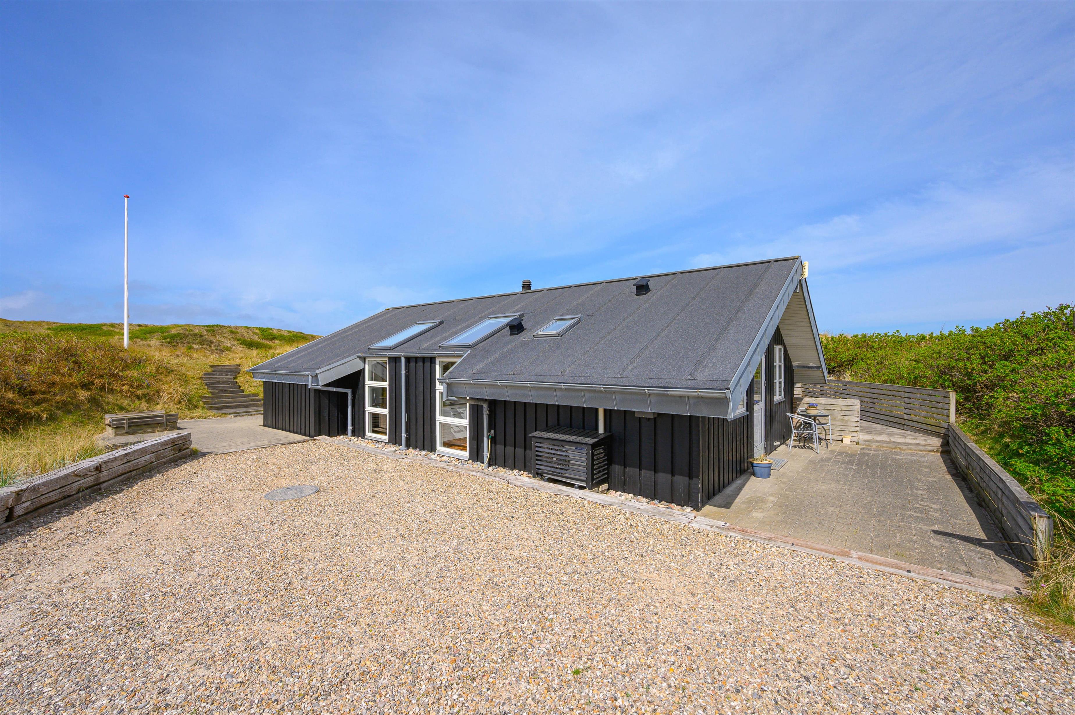 På ferien skal livet så vidt muligt leves udendørs, og det er der rige muligheder for i dette sommerhus. Det ligger kun 150 meter fra den skønne strand, på en klitgrund og er omgivet af fremragende terrasser, hvor I altid kan finde et sted i læ for vinden.