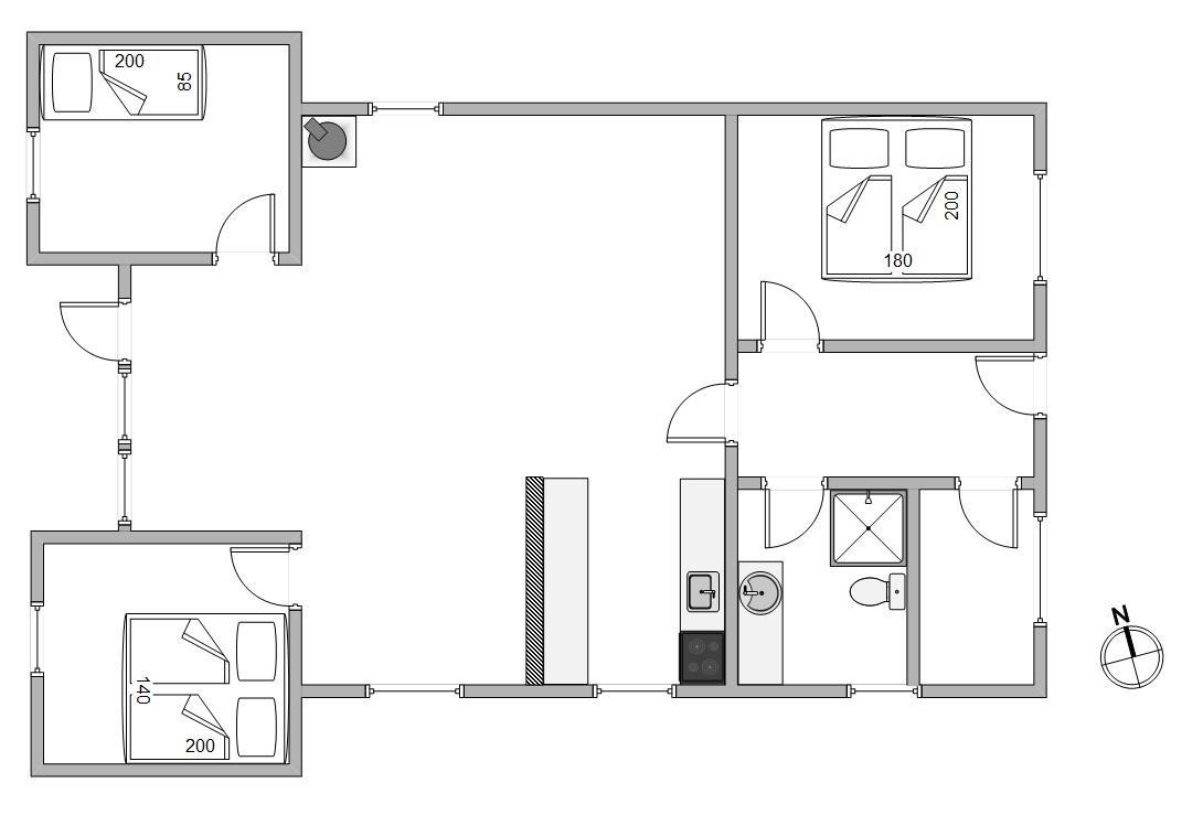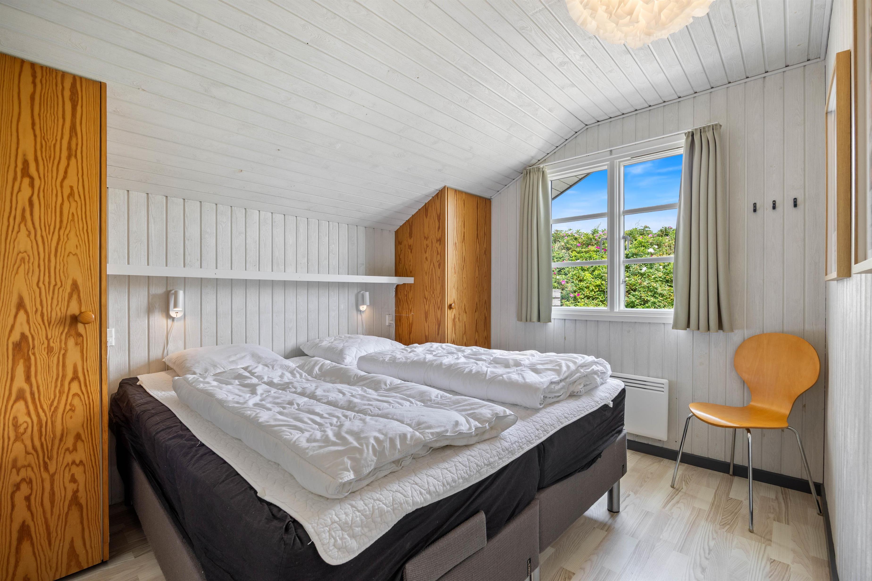 Sommerhuset byder plads til 5 personer i 3 komfortable soveværelser, som er indrettet med 2 dobbeltsenge samt 1 enkeltseng. Badeværelset er pænt indrettet og har vaskemaskine samt en behagelig gulvvarme.