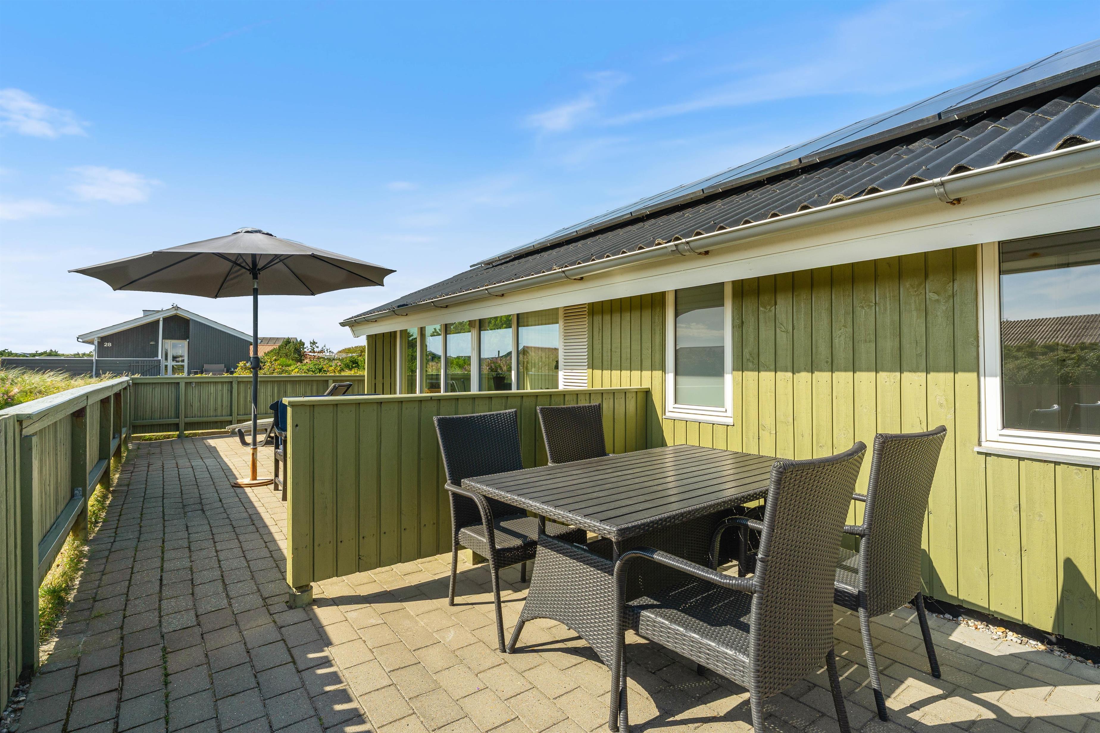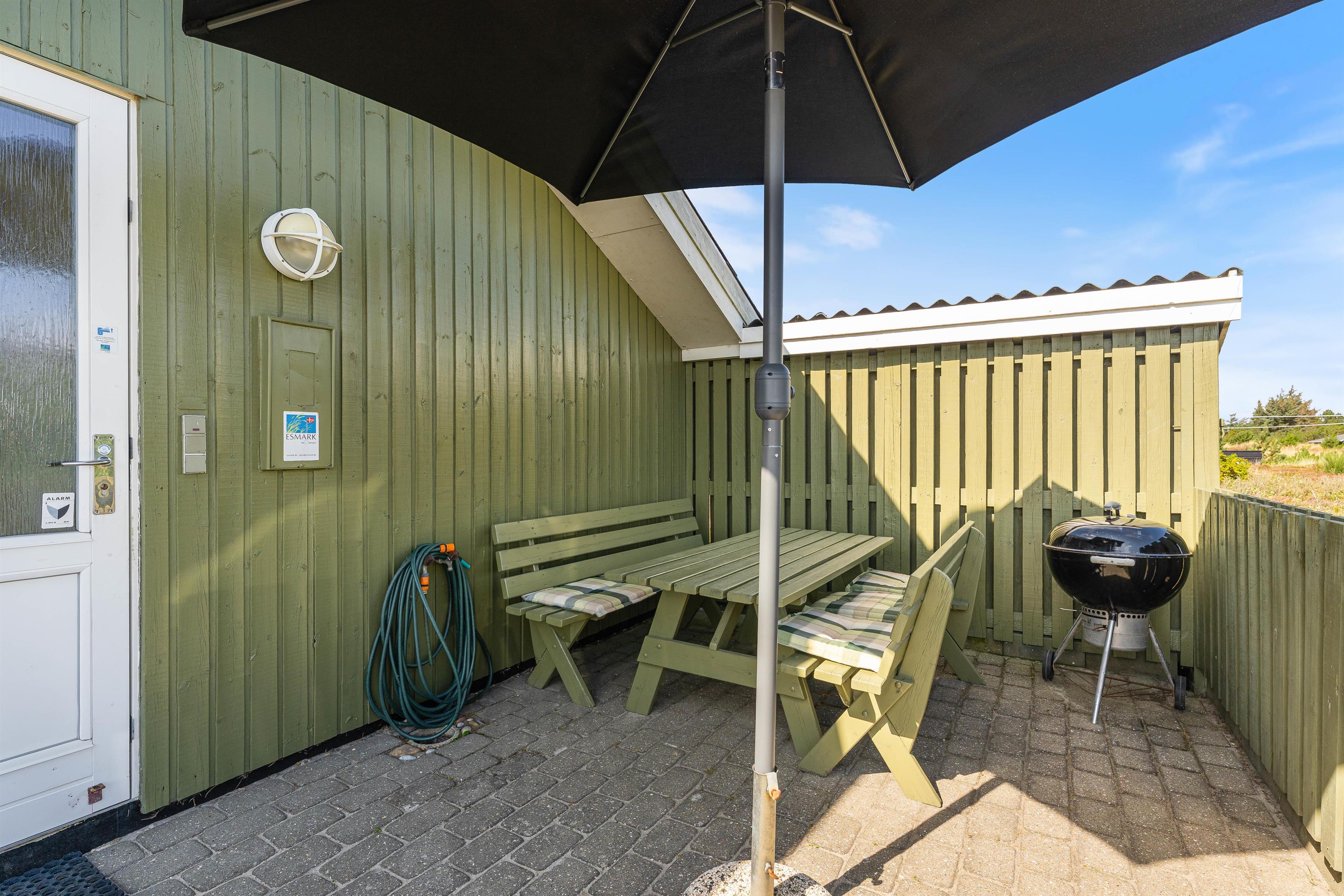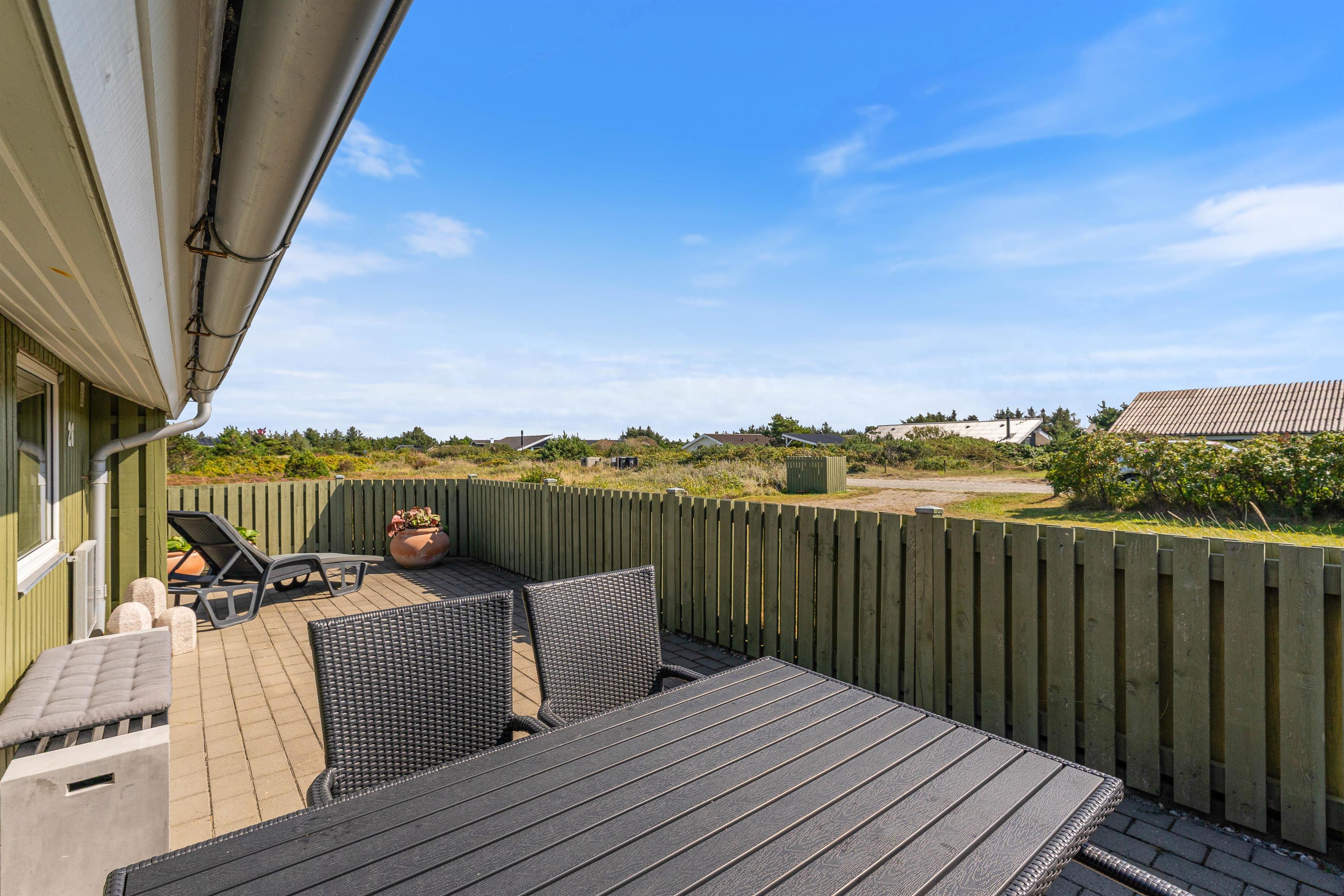Rundt om sommerhuset breder den lukkede terrasse sig ud – et oplagt sted at nyde ferien under åben himmel. Her er lækroge, solpletter og plads til både afslapning og leg.