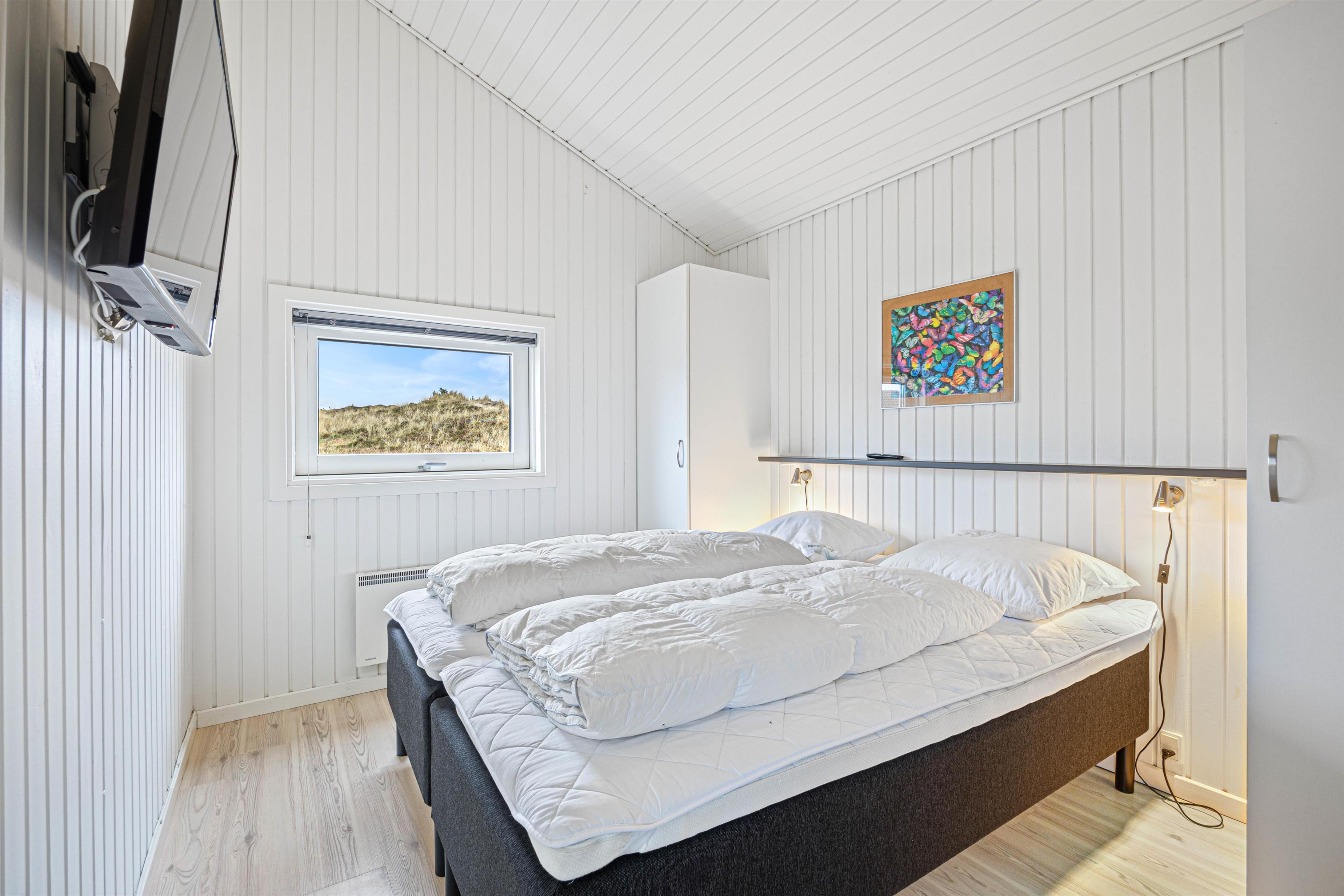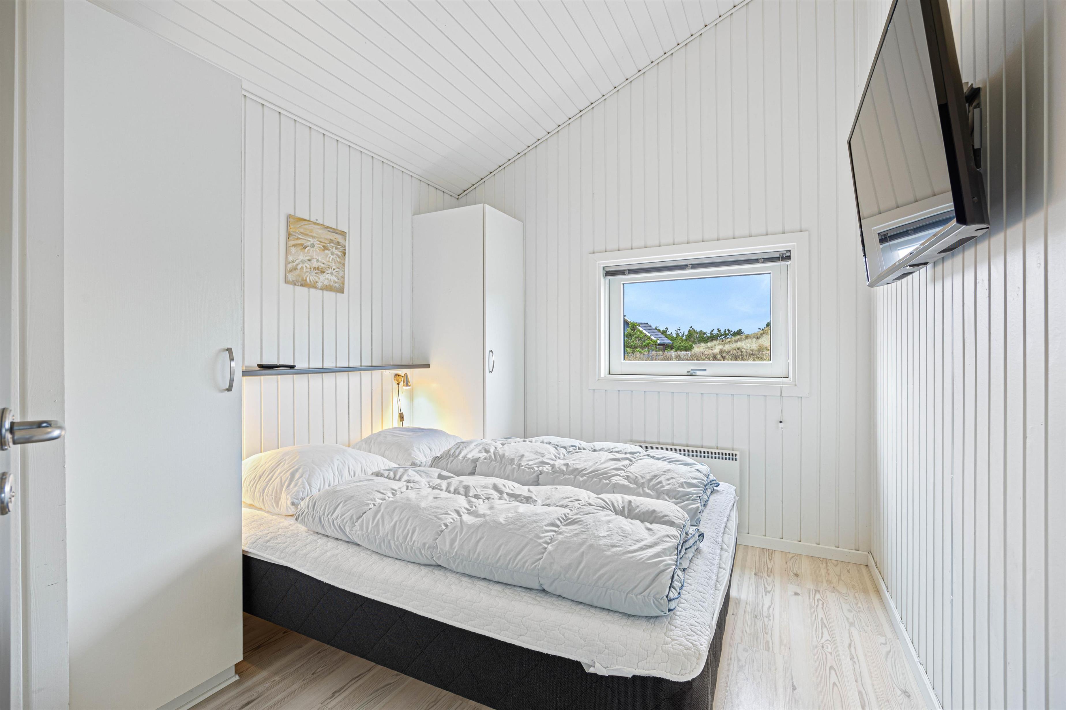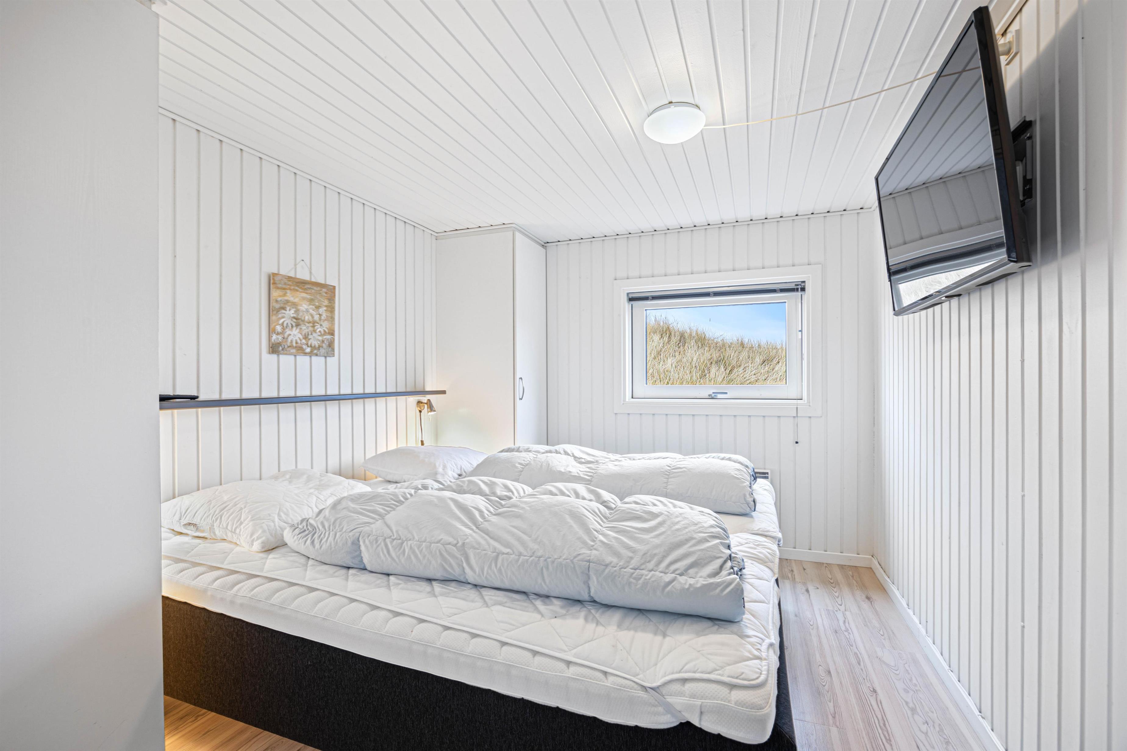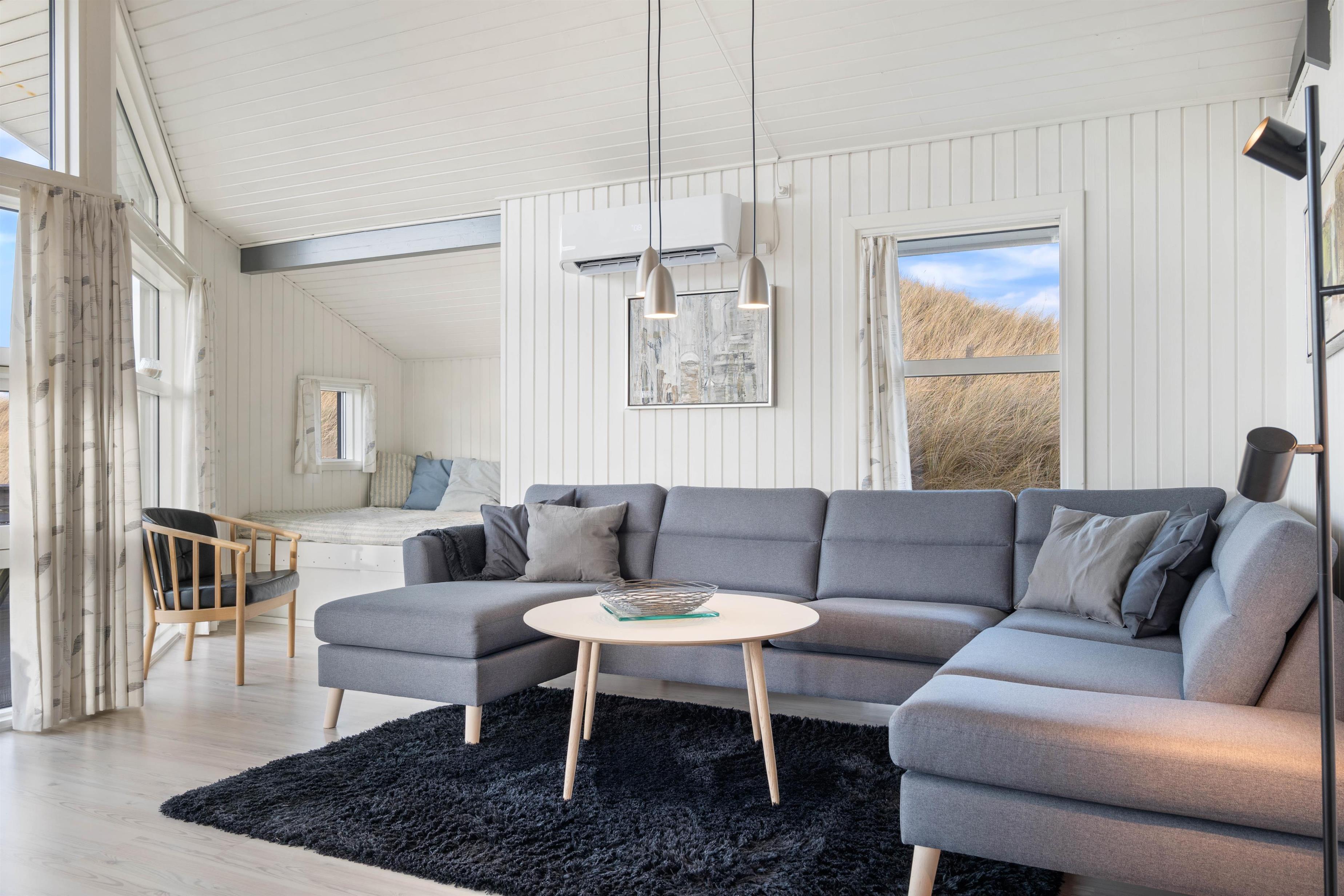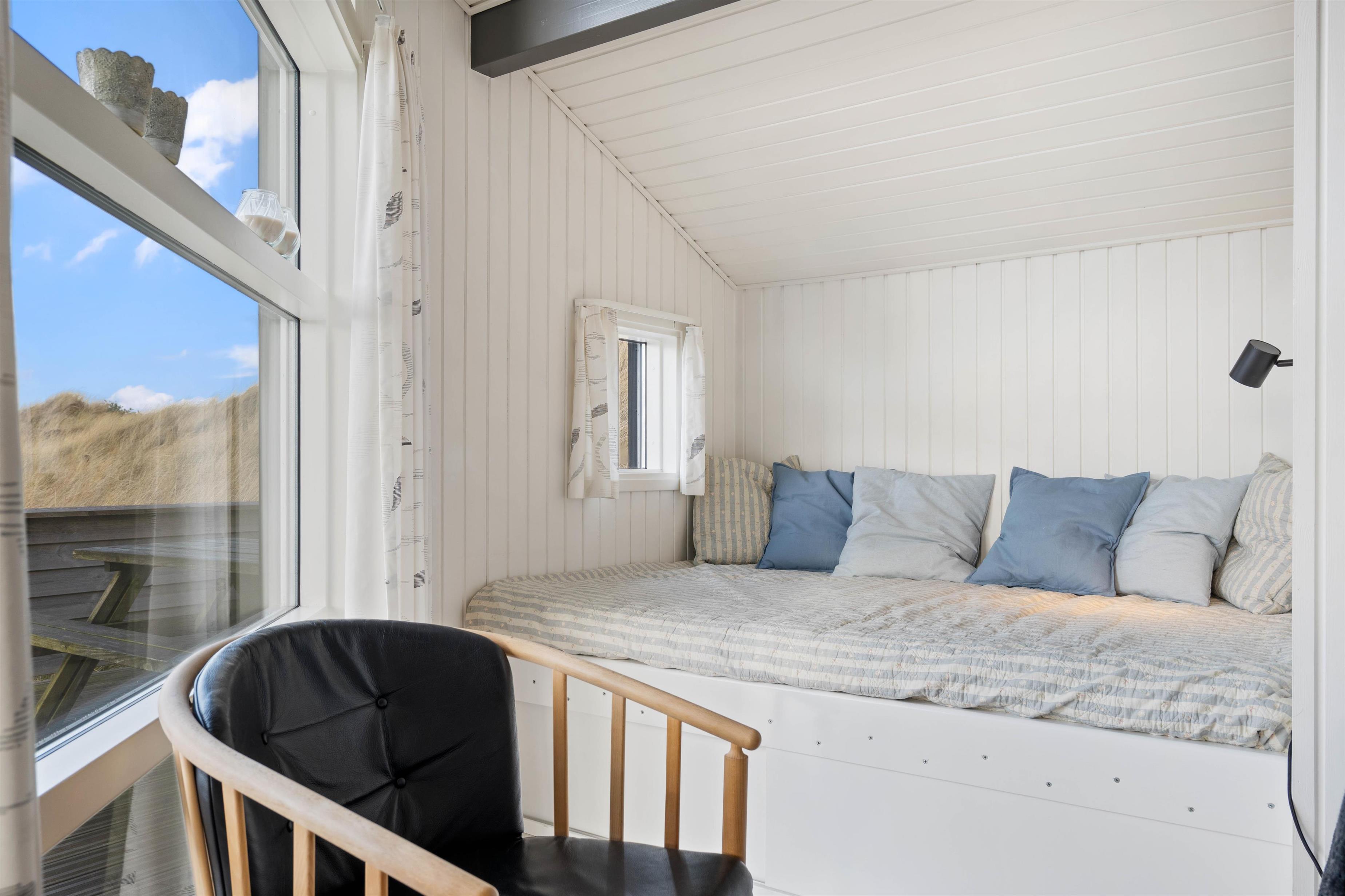 Overalt er der et smukt lysindfald, som sammen med de lyse vægge og lofter giver en meget fin stemning. Udover de 3 komfortable soveværelser er der en hyggelig hems med 2 madrasser, samt en virkelig fin alkove, hvor det er oplagt at snuppe en afslapningsstund med en god bog.