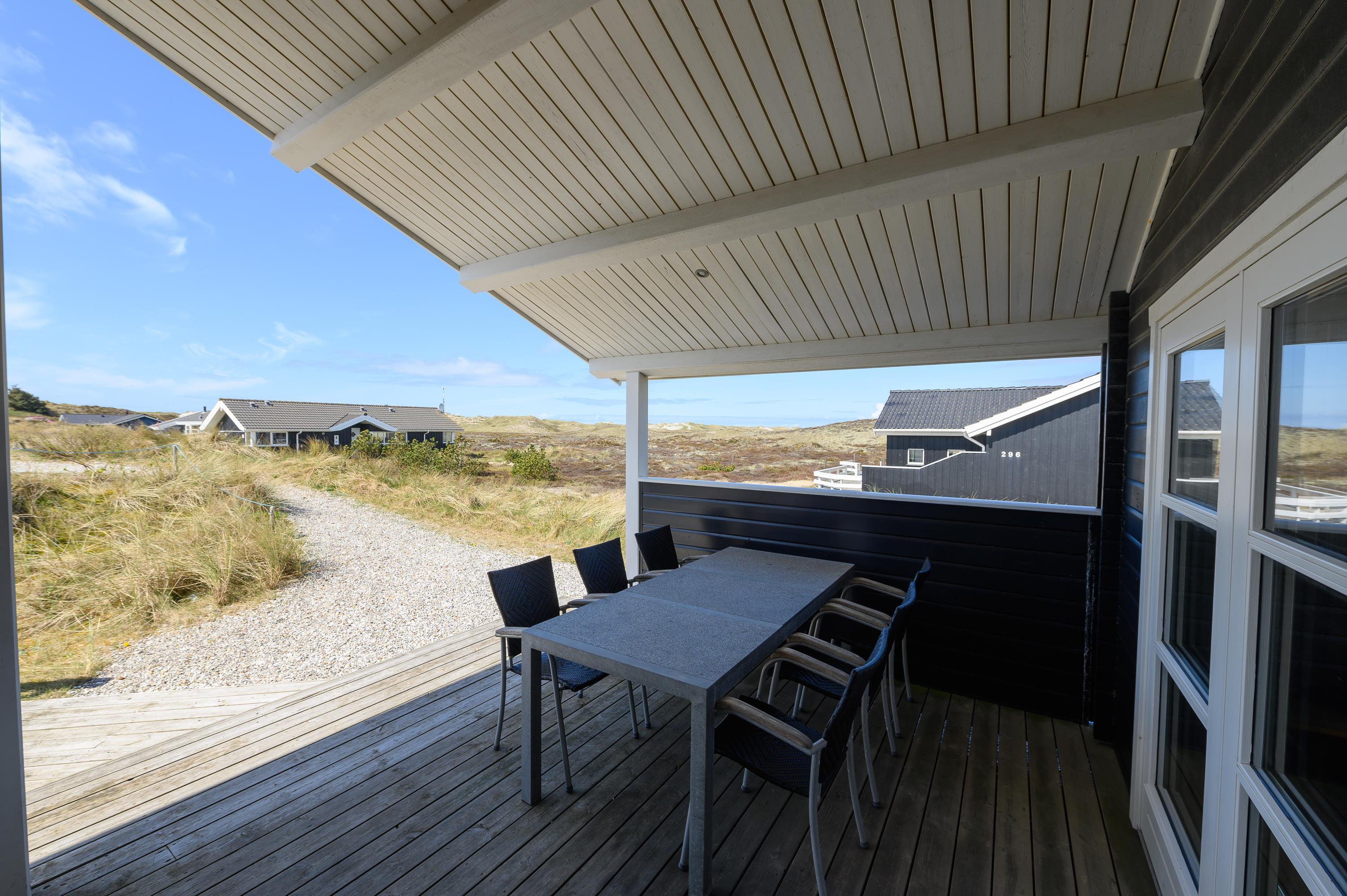 Sommerhuset er omgivet af skønne terrasser, hvor den friske luft og smukke natur kan nydes i fulde drag. Mod syd er der en skøn naturlig afskærmet terrasse, hvor du kan hygge dig med familie og venner i rolige omgivelser. Fra den vestvendte overdækkede terrasse har du smuk udsigt til hede og klitter, og her er de perfekte forhold til en hyggelig grillaften med familie og venner.