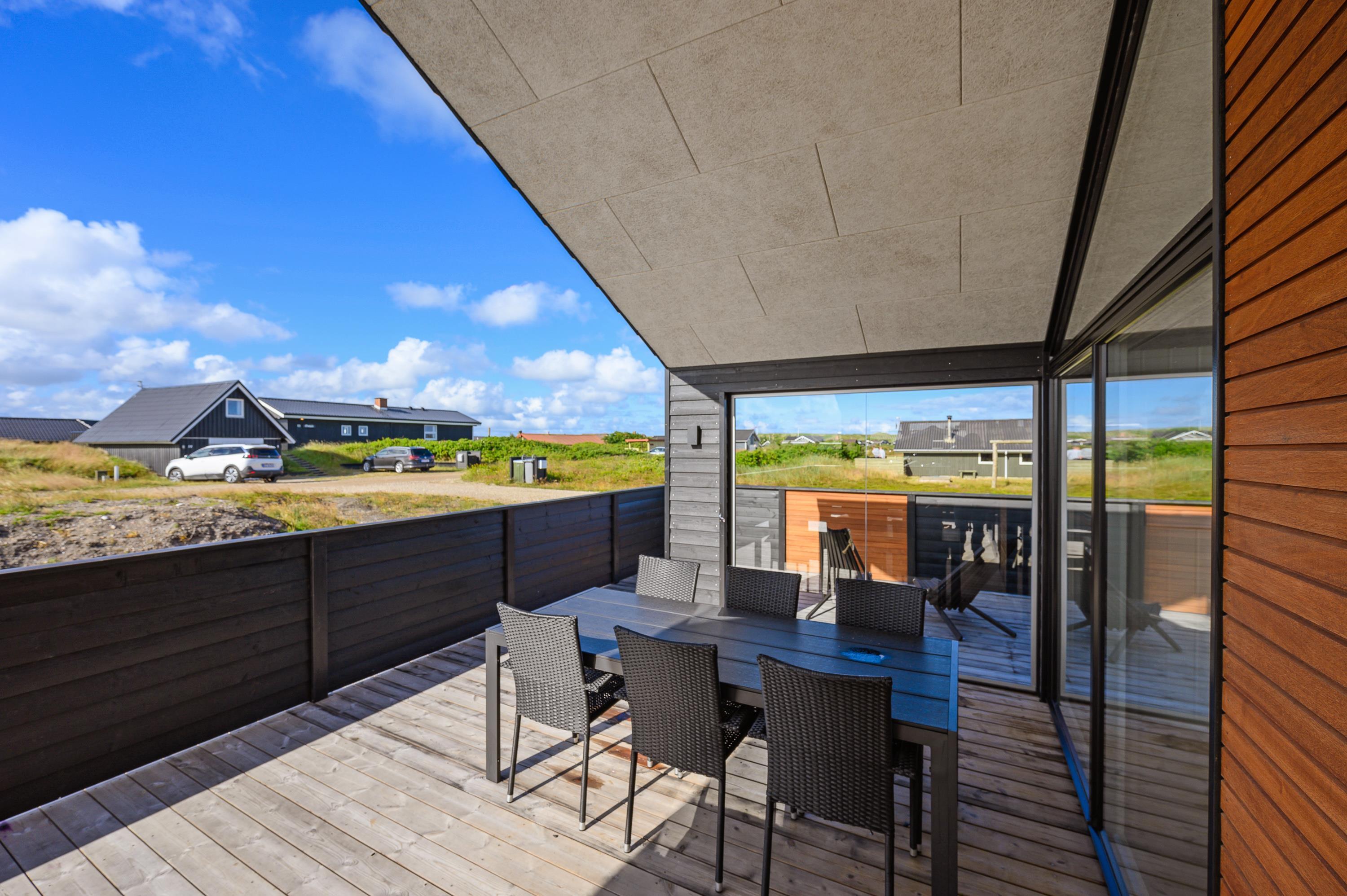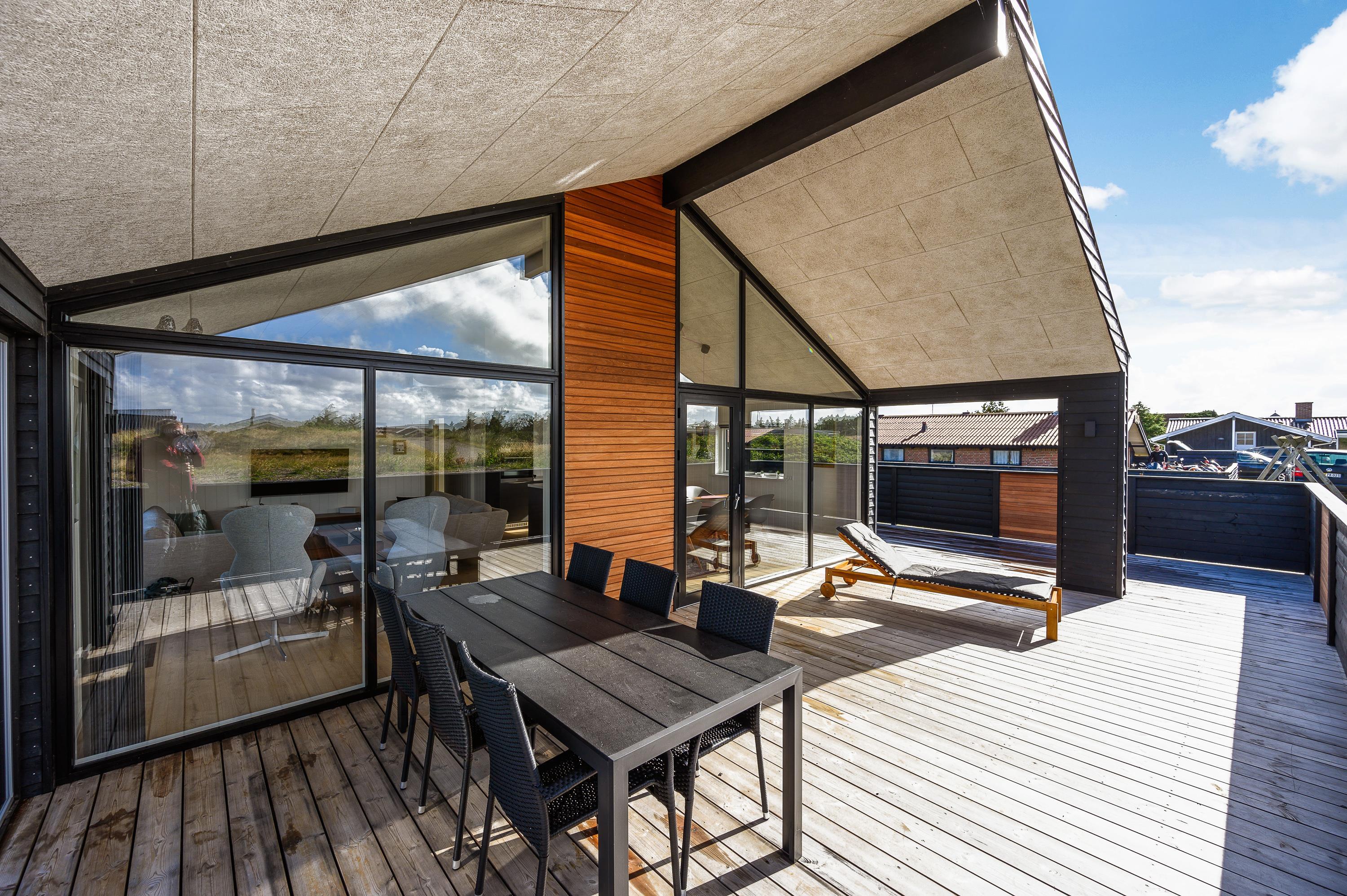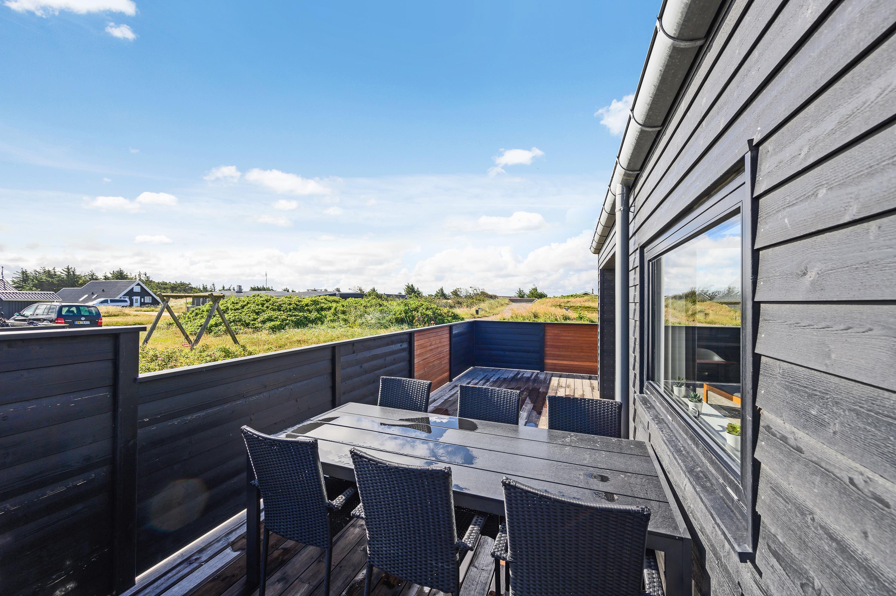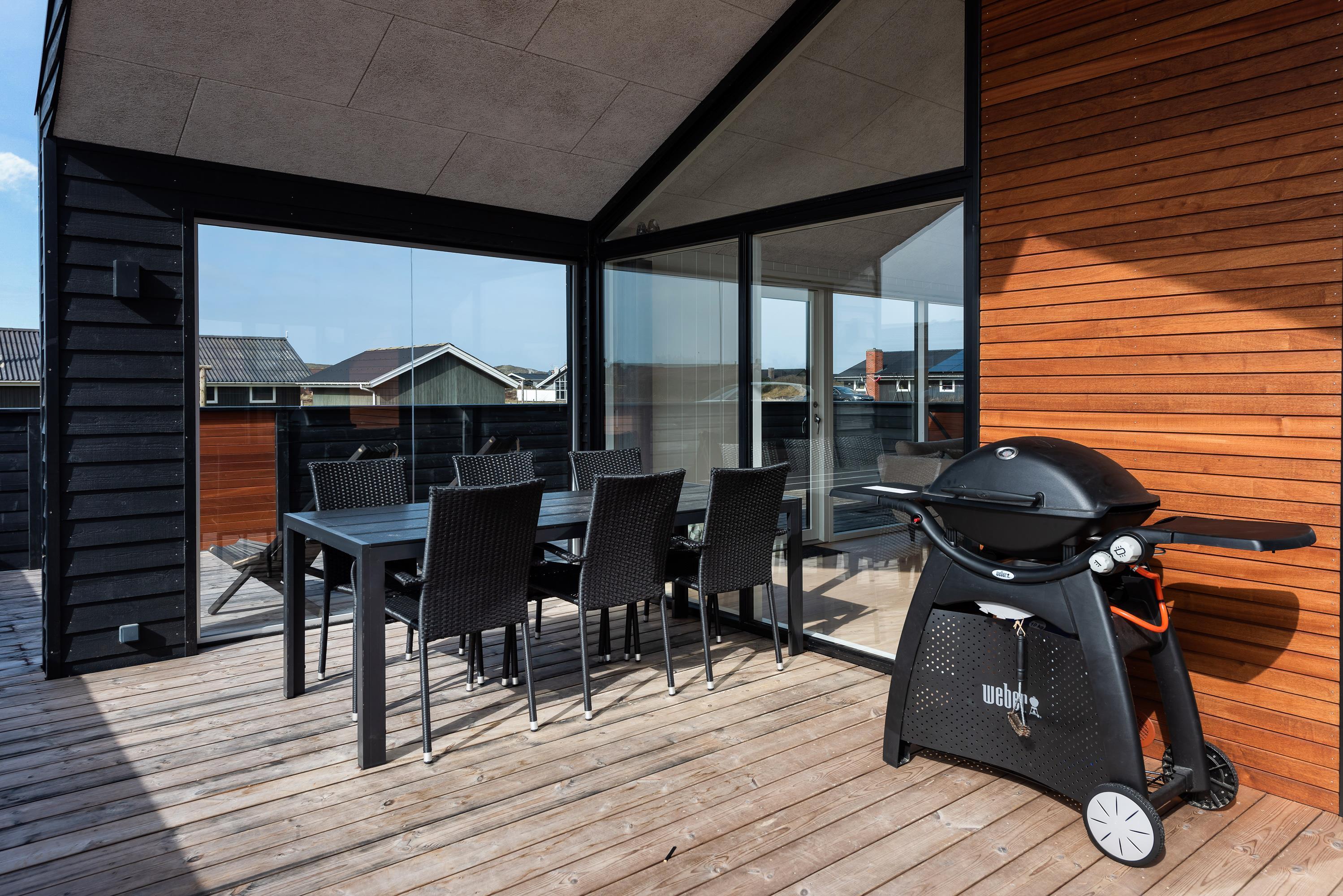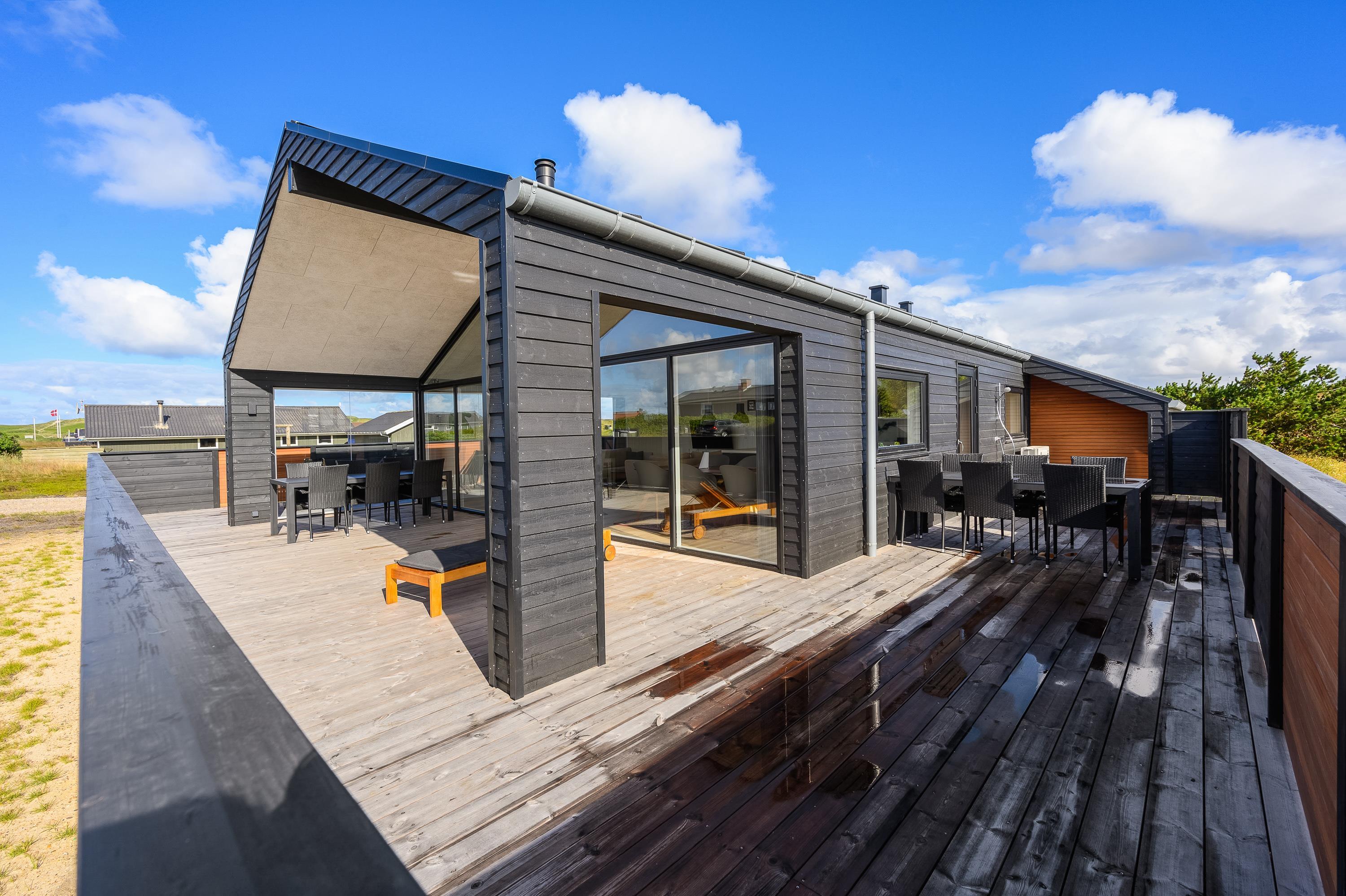 Den store sydvendte terrasse, som er delvist overdækket, indbyder til rigtig meget udetid. Nyd solopgangen mod øst over Ringkøbing Fjord til morgenkaffen. Lad børnene lege på den store naturgrund, mens I nyder eftermiddagssolen fra liggestolene på terrassen. Efter en tur til stranden kan i om sommeren få et forfriskende skyld under udebruseren. Den kan benyttes fra april til november.