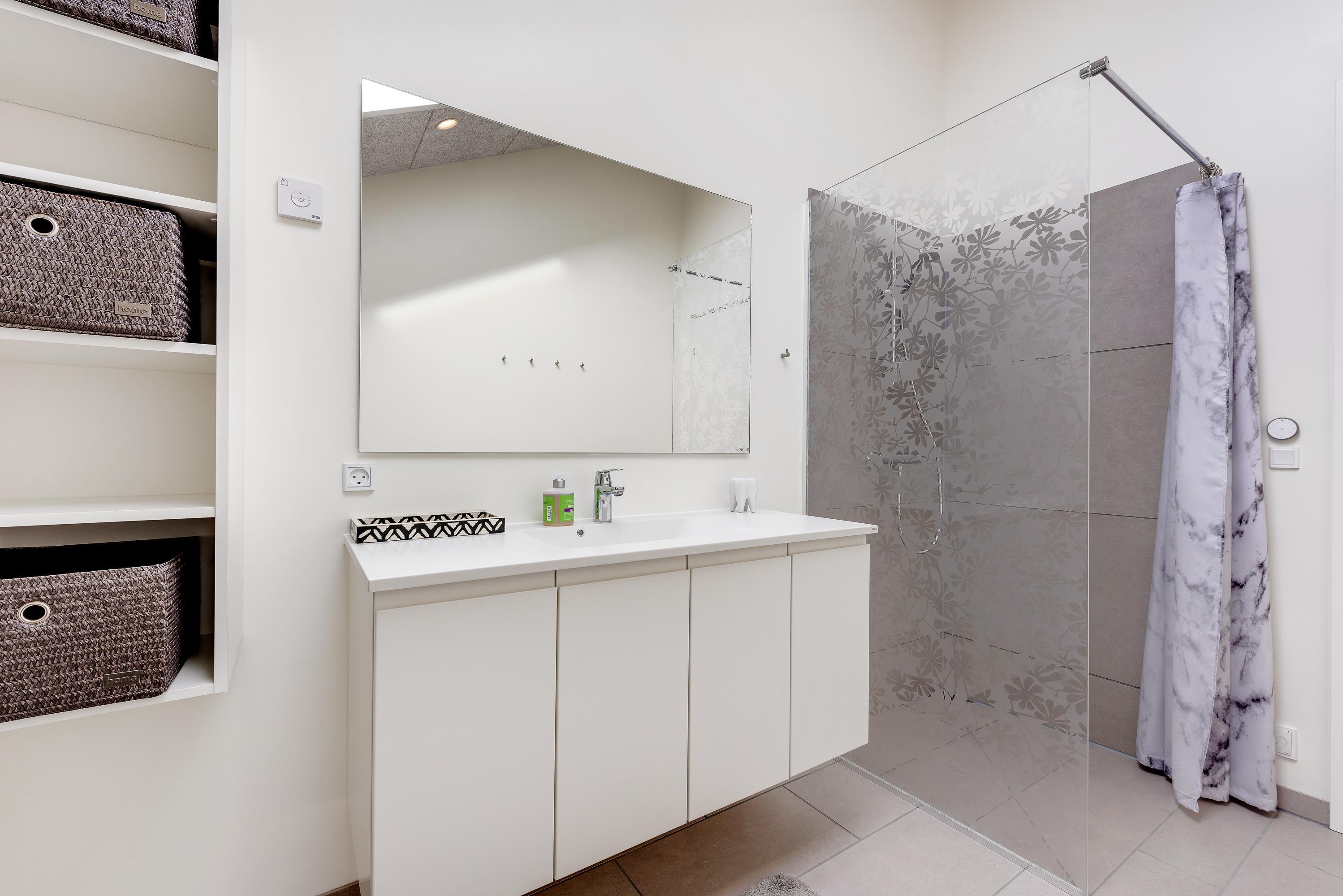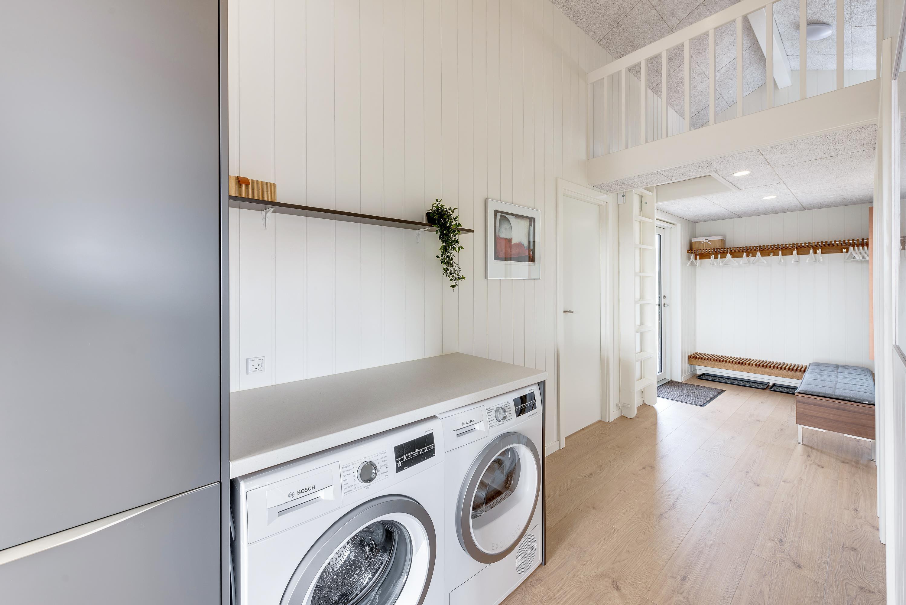 Lige inden for døren finder I en praktisk gang, hvor der er rigelig plads til at hænge overtøjet. Her er naturligvis også vaskemaskine og tørretumbler, så I ikke nødvendigvis behøver at tage højde for alt hjemmefra.