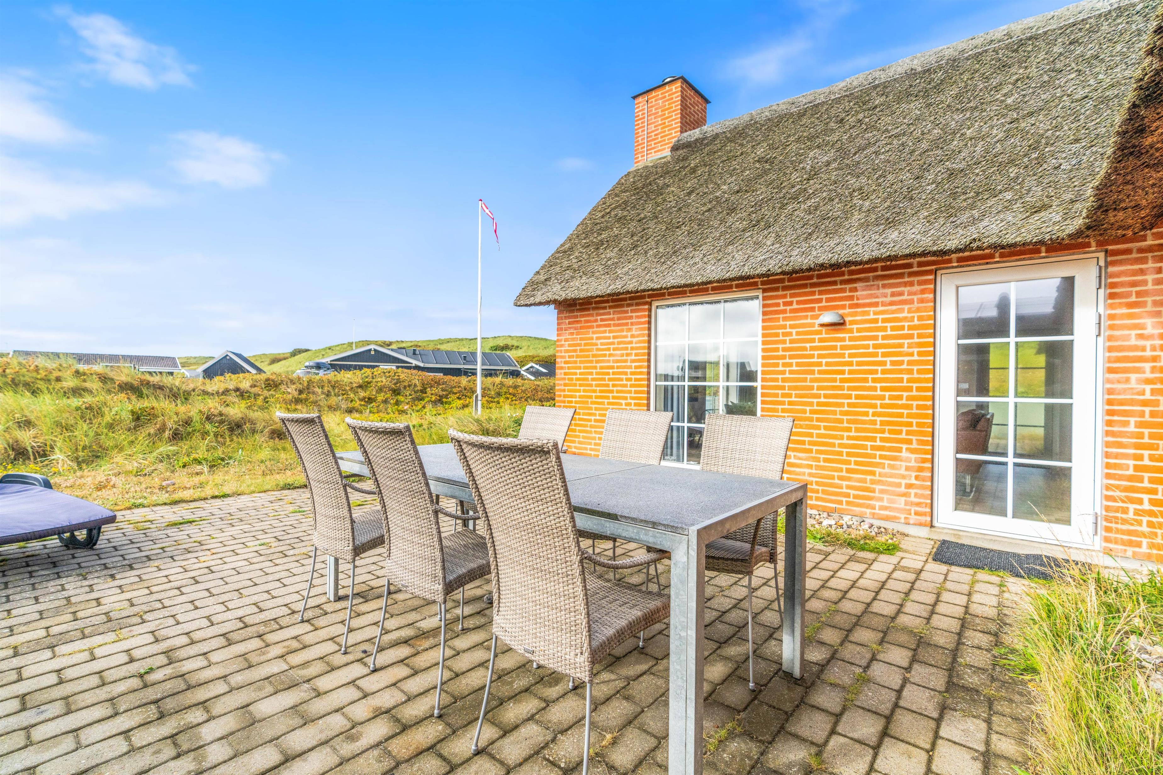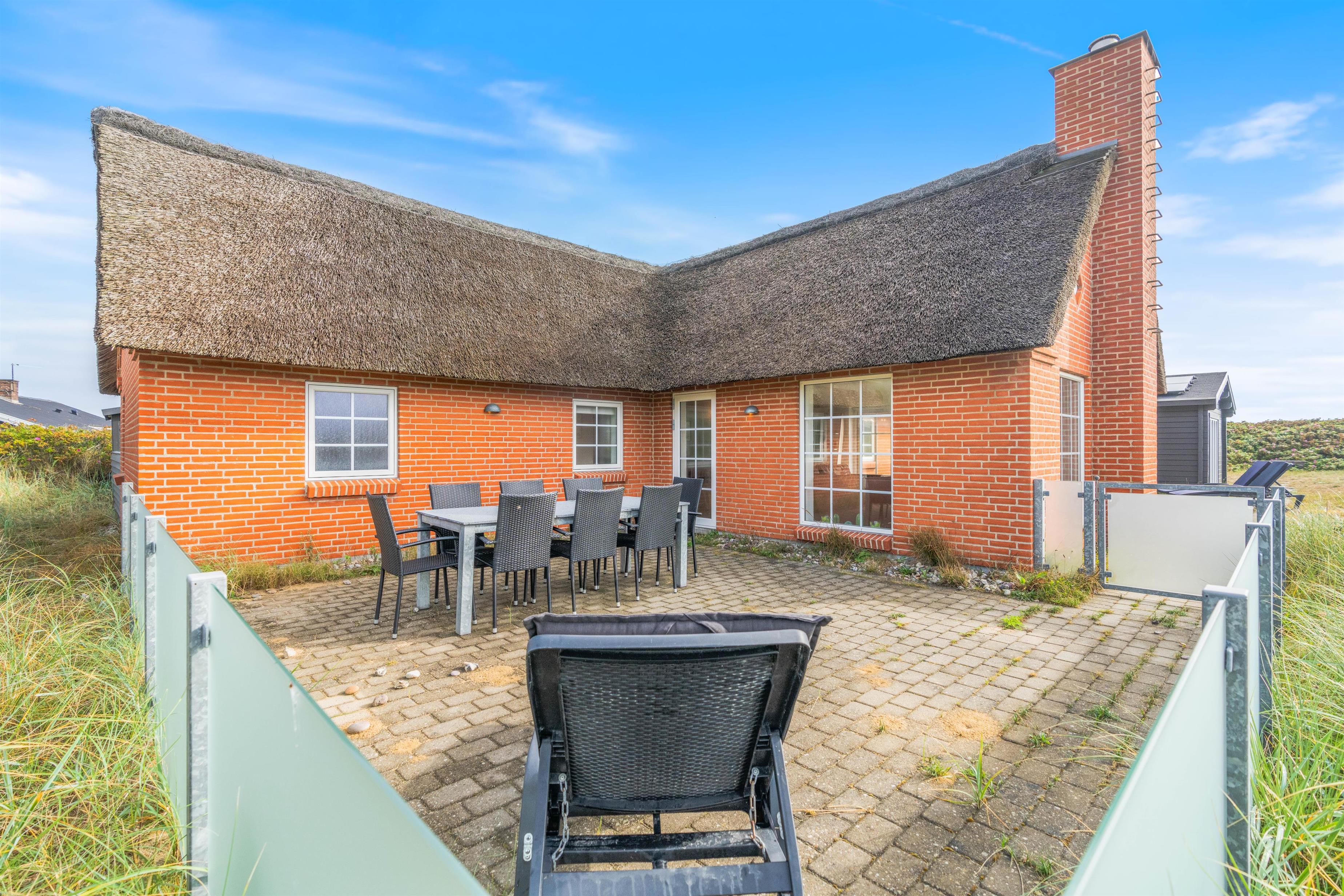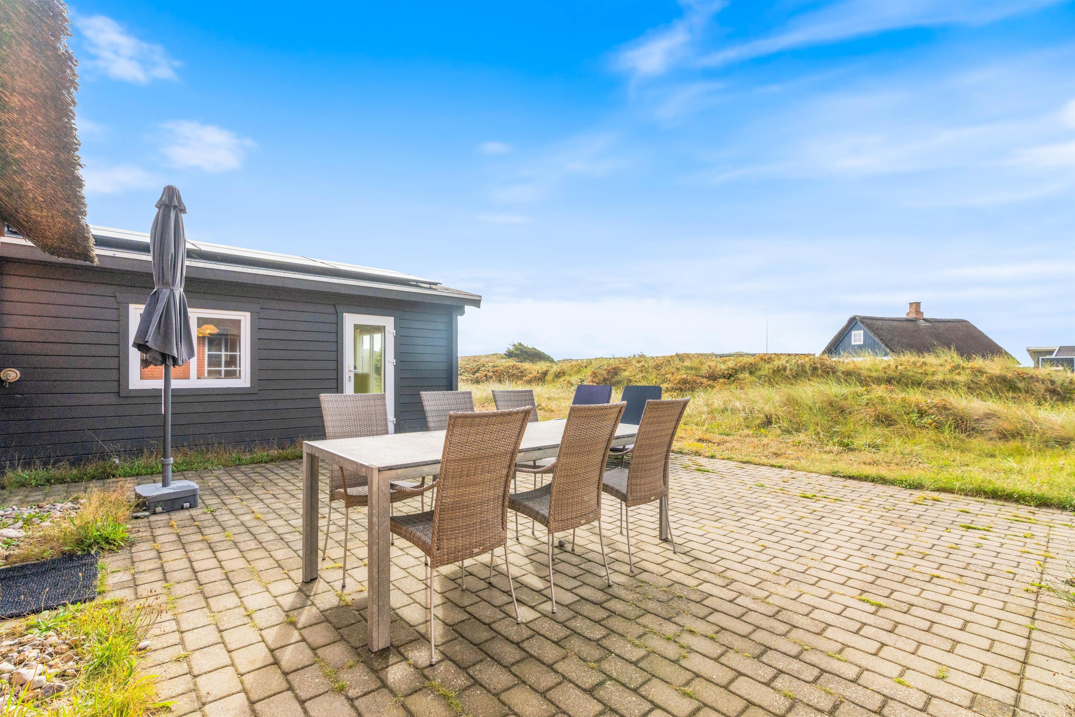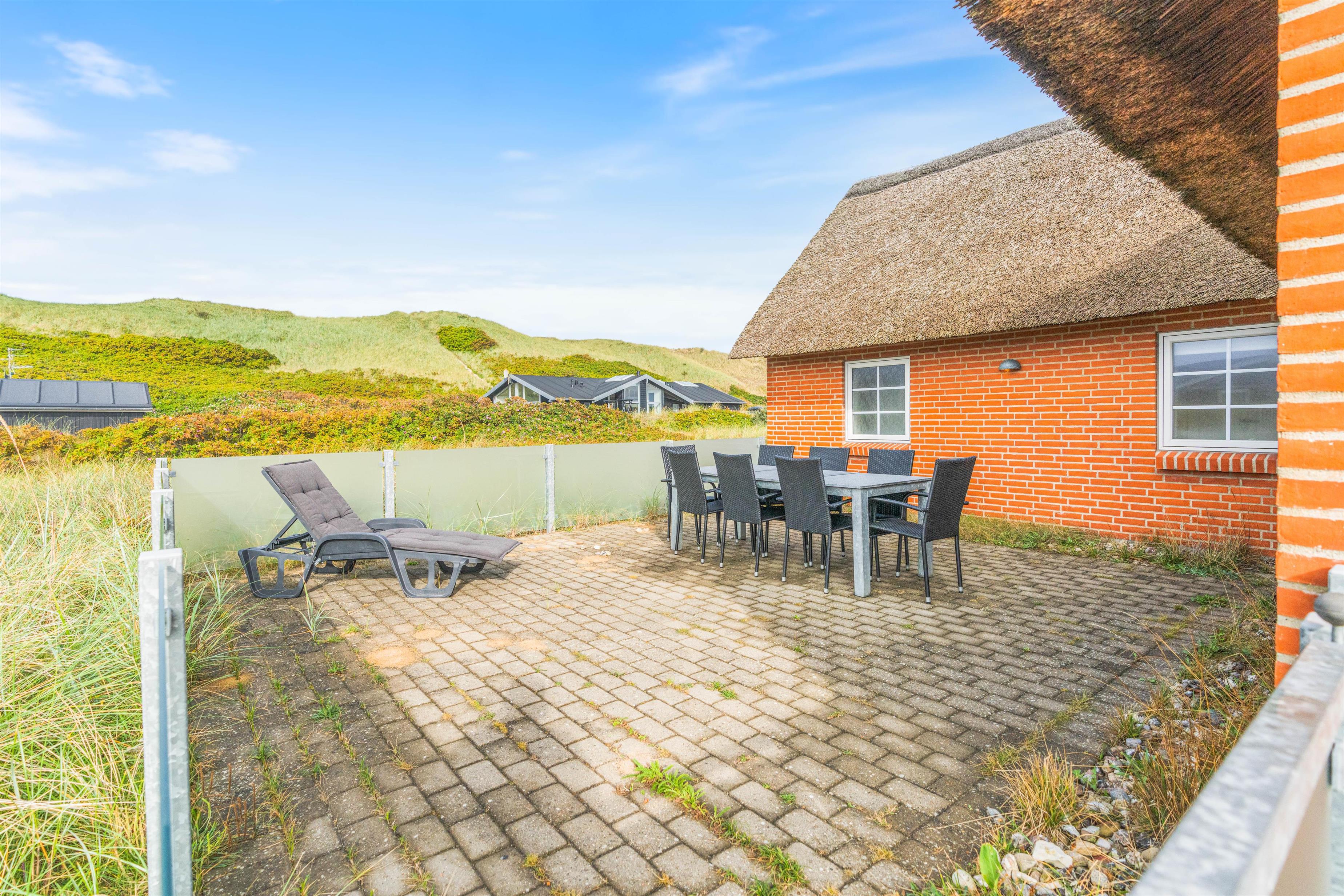 Fra terrassen kan I høre de brusende bølger kalde på jer, og kun 100 meter væk finder I den fantastiske sandstrand. Tag en kølig dukkert på en varm sommerdag, eller gå en tur i den friske blæst, mens efterårsvinden sætter havet i oprør.
