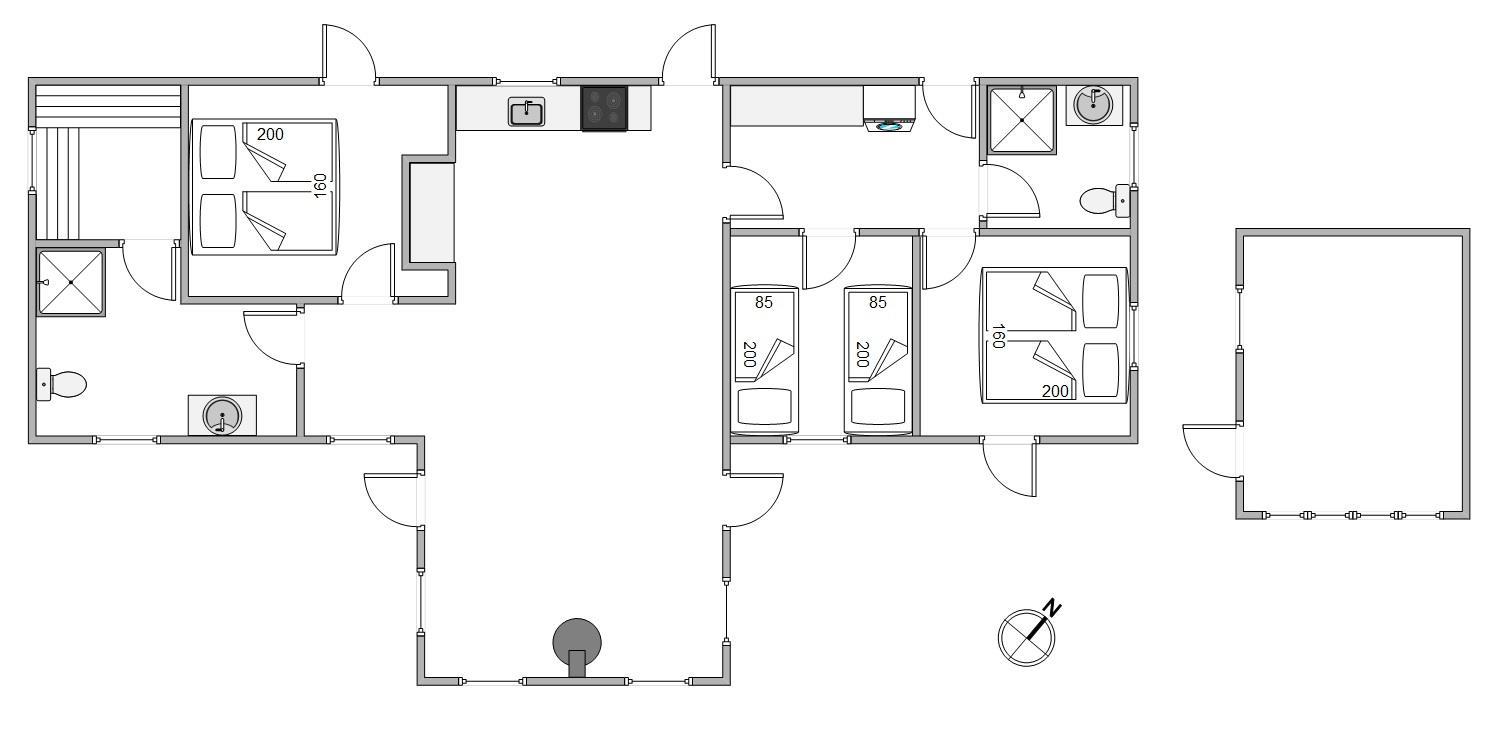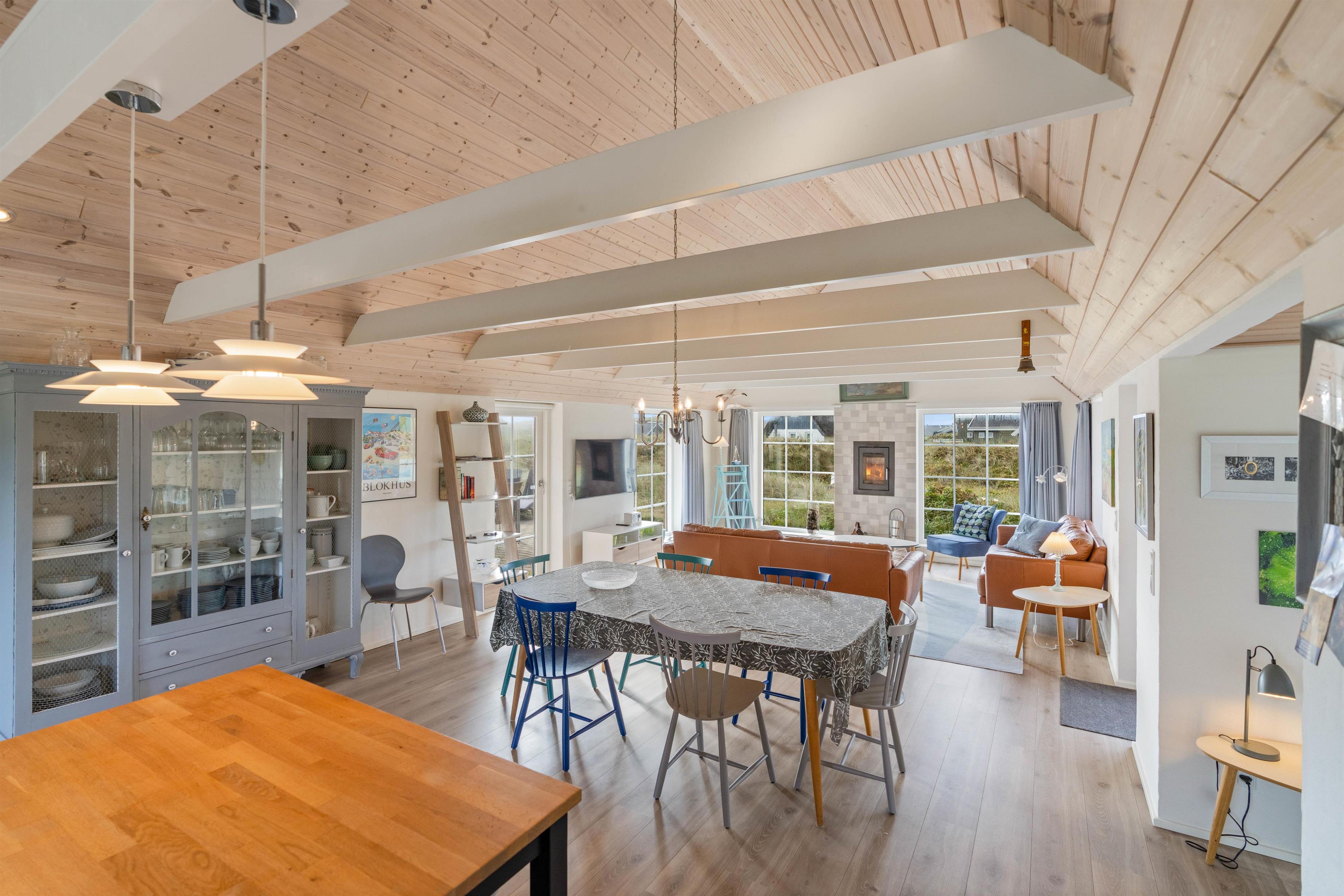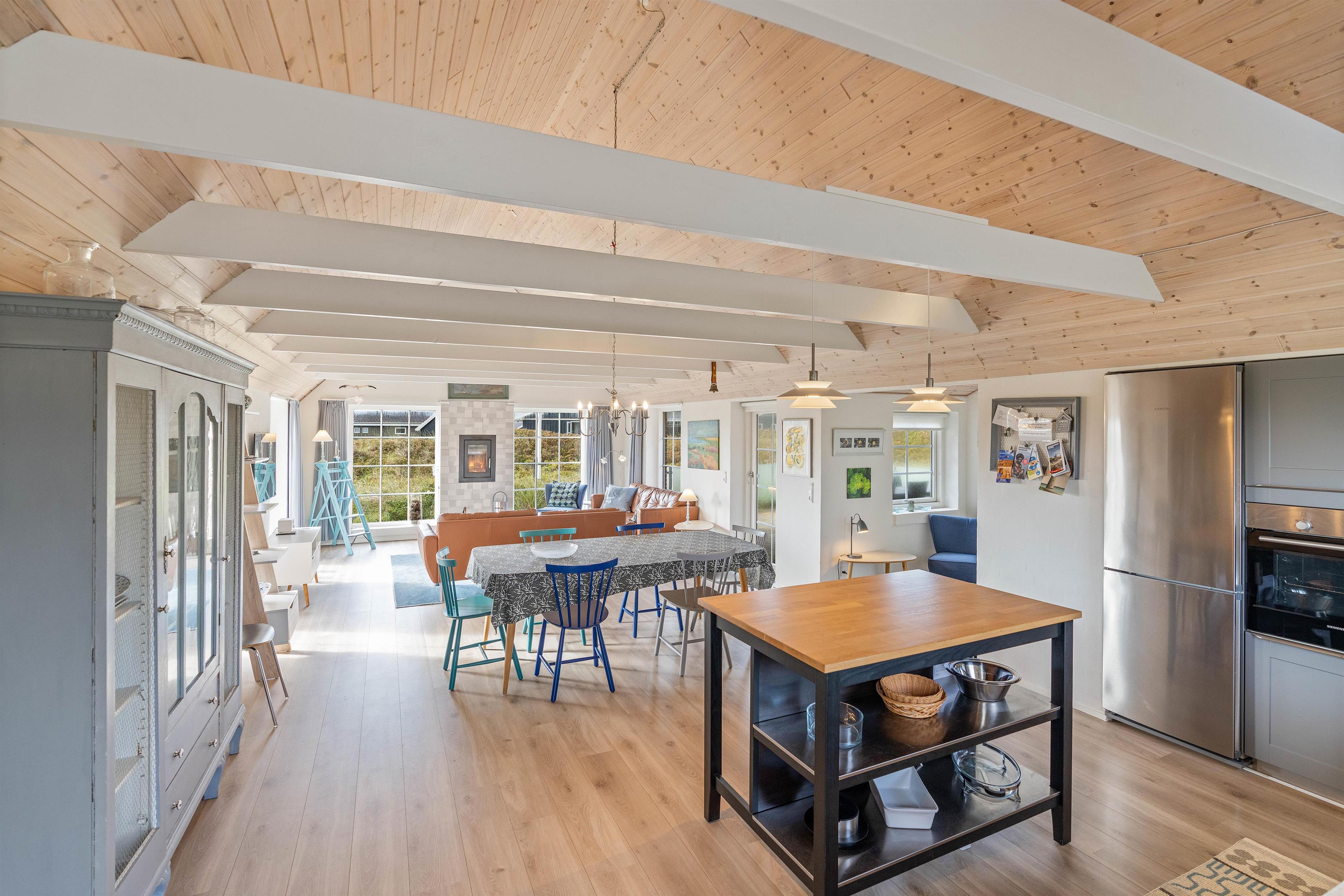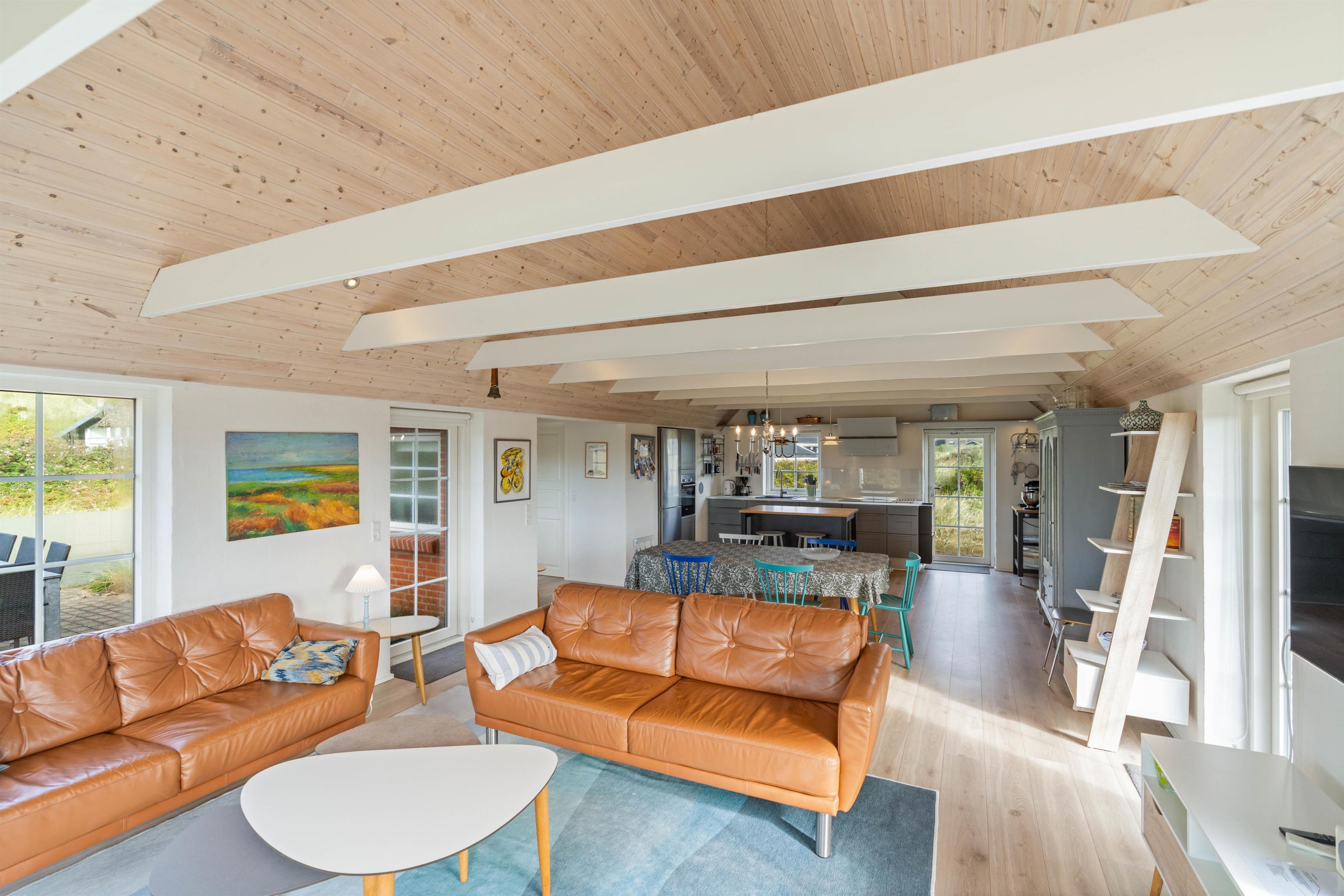 Fra første øjekast vil I blive mødt af den stilfulde indretning. Fra ende til anden er sommerhuset lyst og lækkert indrettet, og med et areal på 120 m² er der mere end god plads til 6 personer. Huset er indrettet med både soveværelser og badeværelser i begge ender, hvorfor huset er ideelt for 2 par, som ønsker at holde ferie sammen, eller for en familie med ældre børn, som har mulighed for at trække sig tilbage i deres egen afdeling.