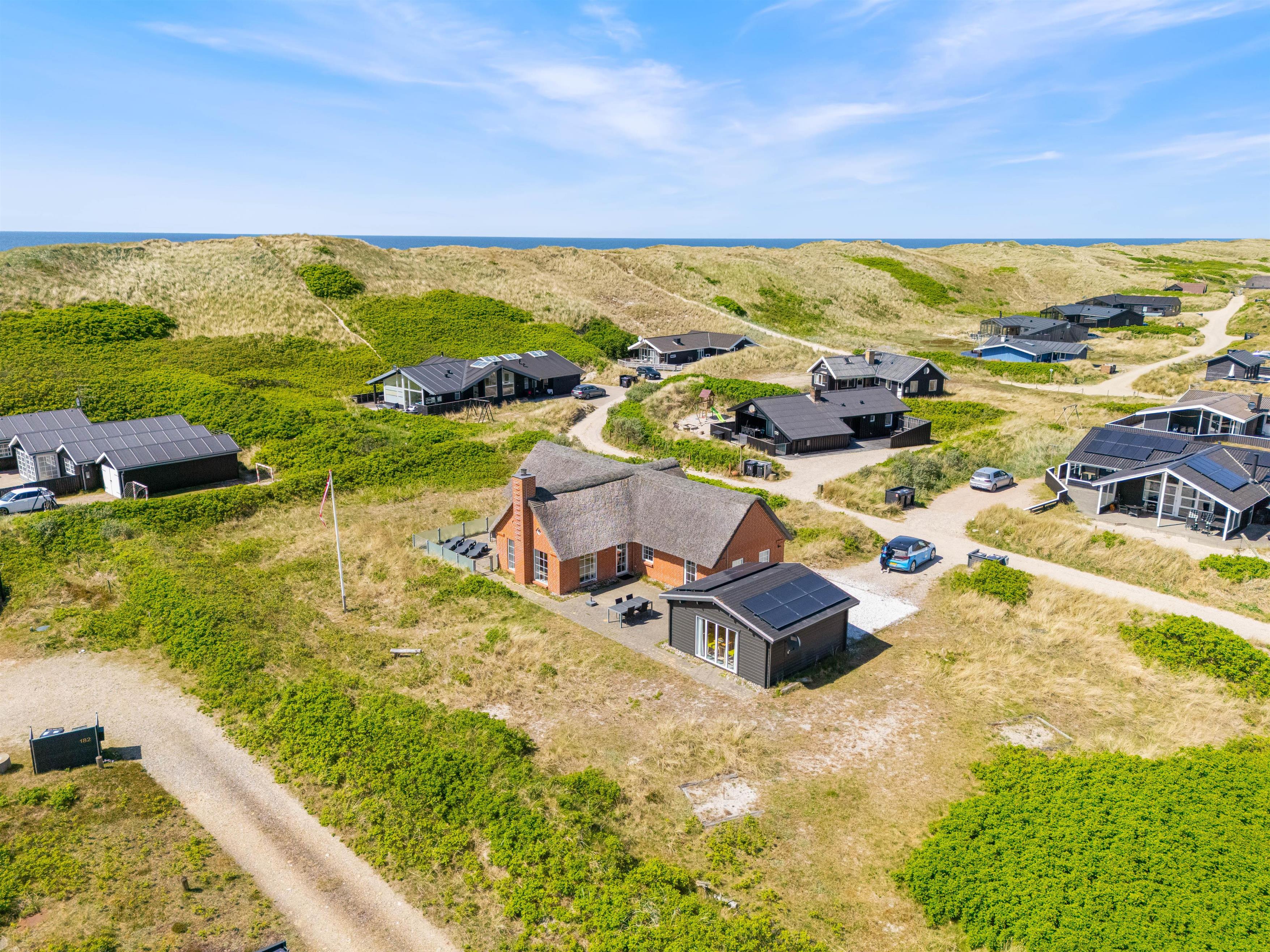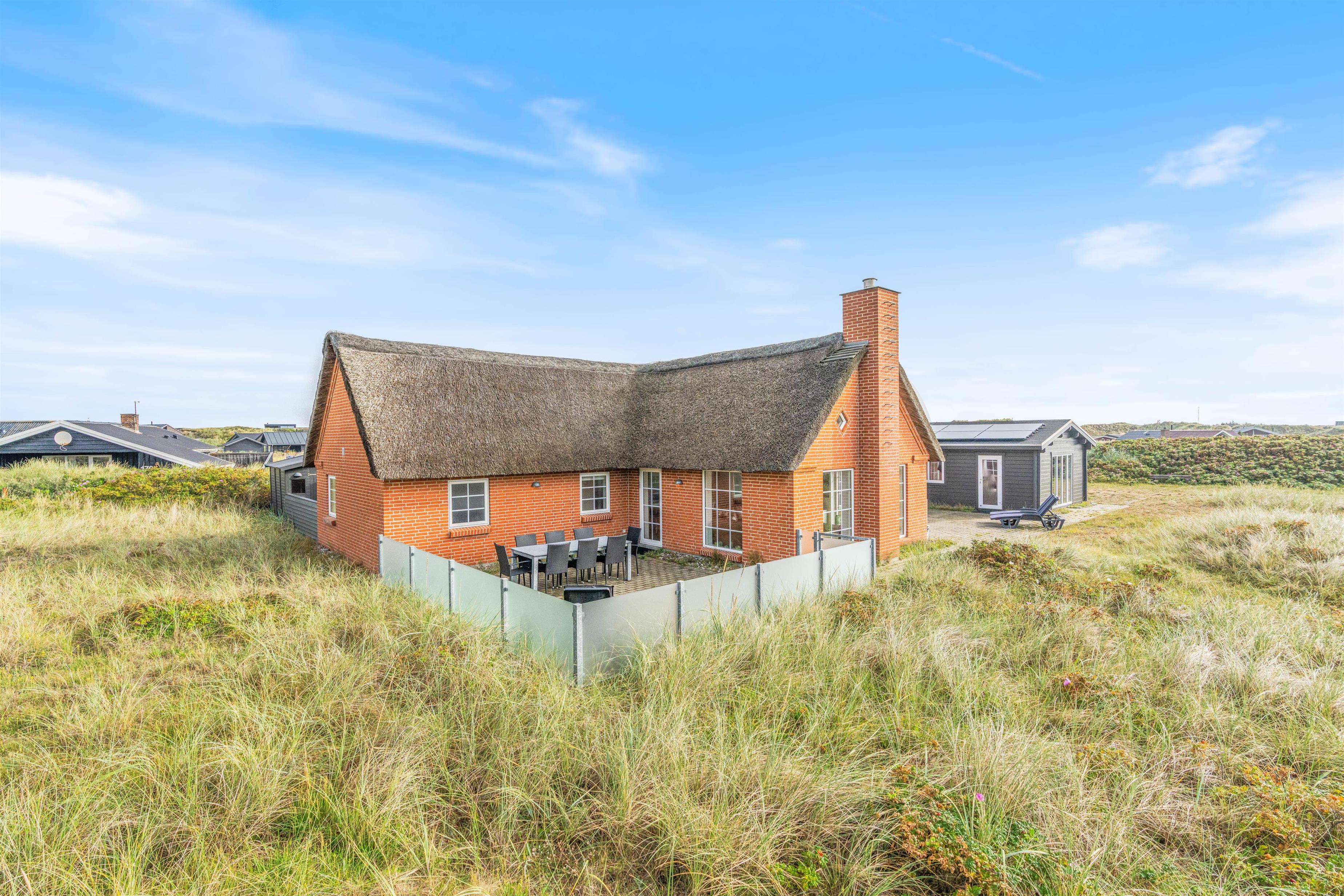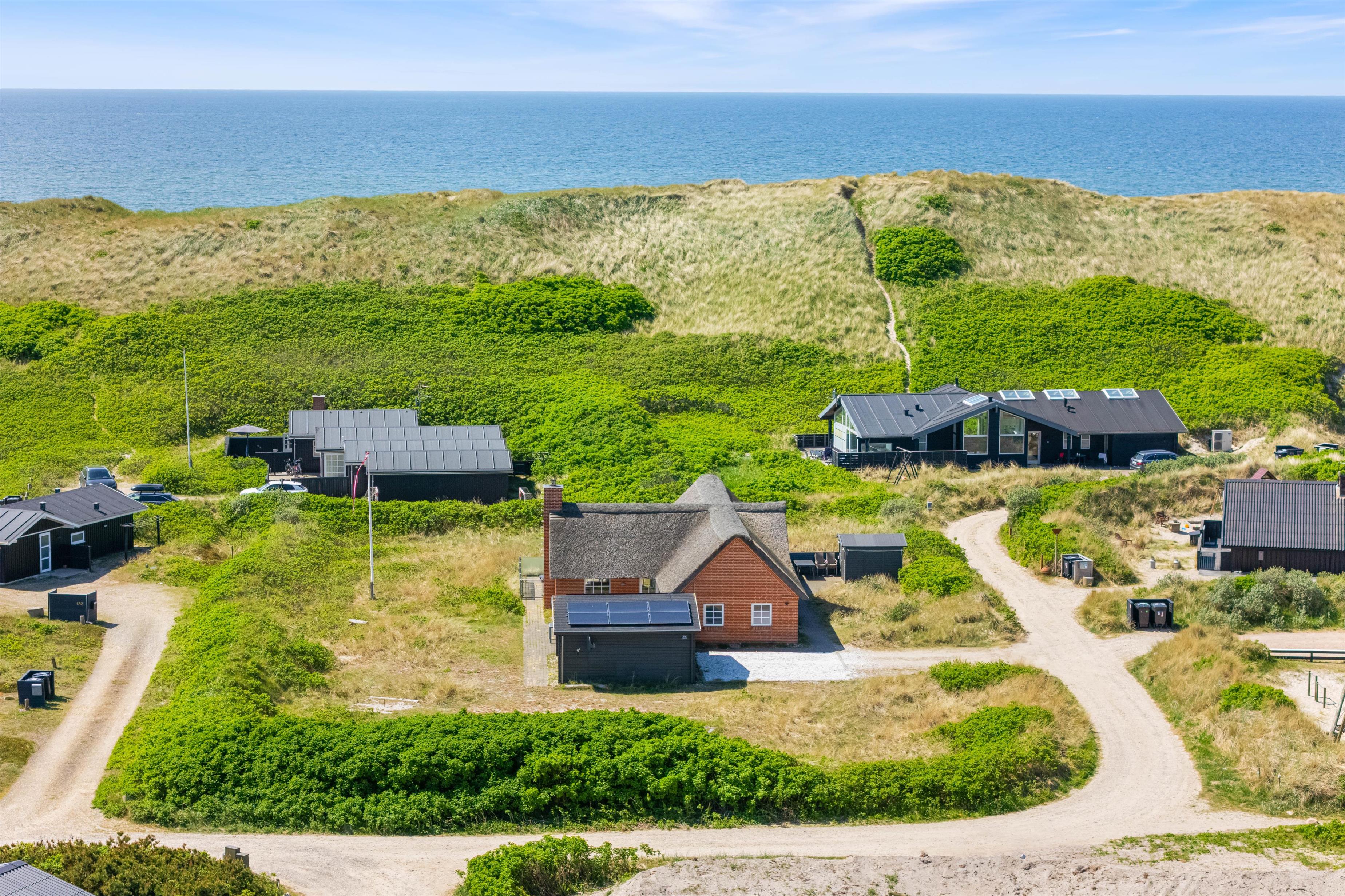 På Julianevej 178 i Bjerregårds klitbeklædte ferielandskab ligger dette stråtagsbelagte feriehus og venter på jer. Sommerhuset blev bygget i 2017, og dets lyse og lækre indre er godt udstyret med egen sauna, aktivitetsrum og en lynhurtig internetforbindelse - og med en fantastisk beliggenhed kun 100 meter fra stranden, får I hele feriepakken her!