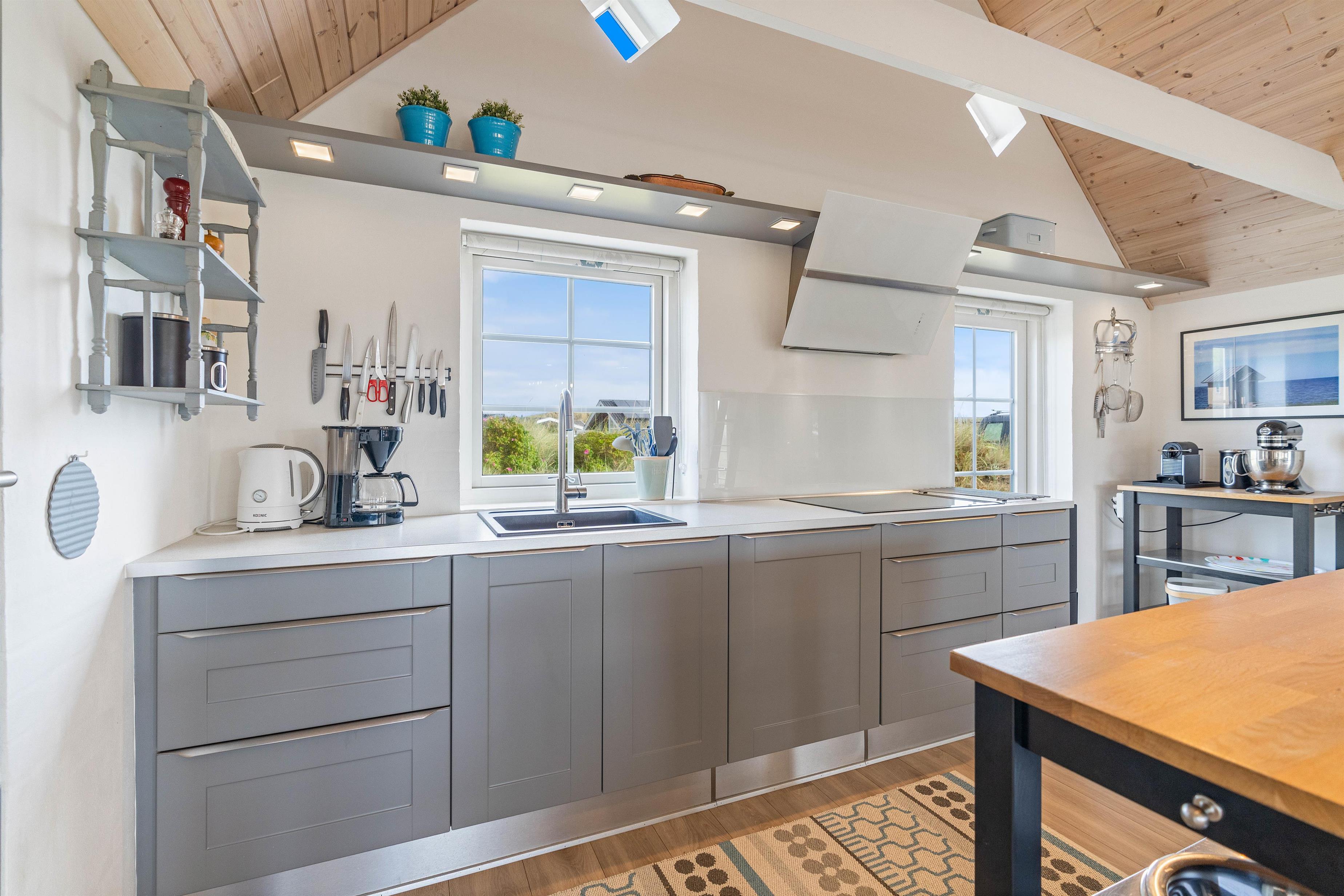 I det veludstyrede køkken finder I blandt andet en Kitchen Aid køkkenmaskine og en Nespresso maskine. Og mens I slapper af på sofaen med en friskbrygget kop kaffe, kan børnene og de barnlige sjæle få lov at slå sig løs i det fine aktivitetsrum, der både er indrettet med billardbord og fladskærm, hvor medbragte spillekonsoller kan tilsluttes.