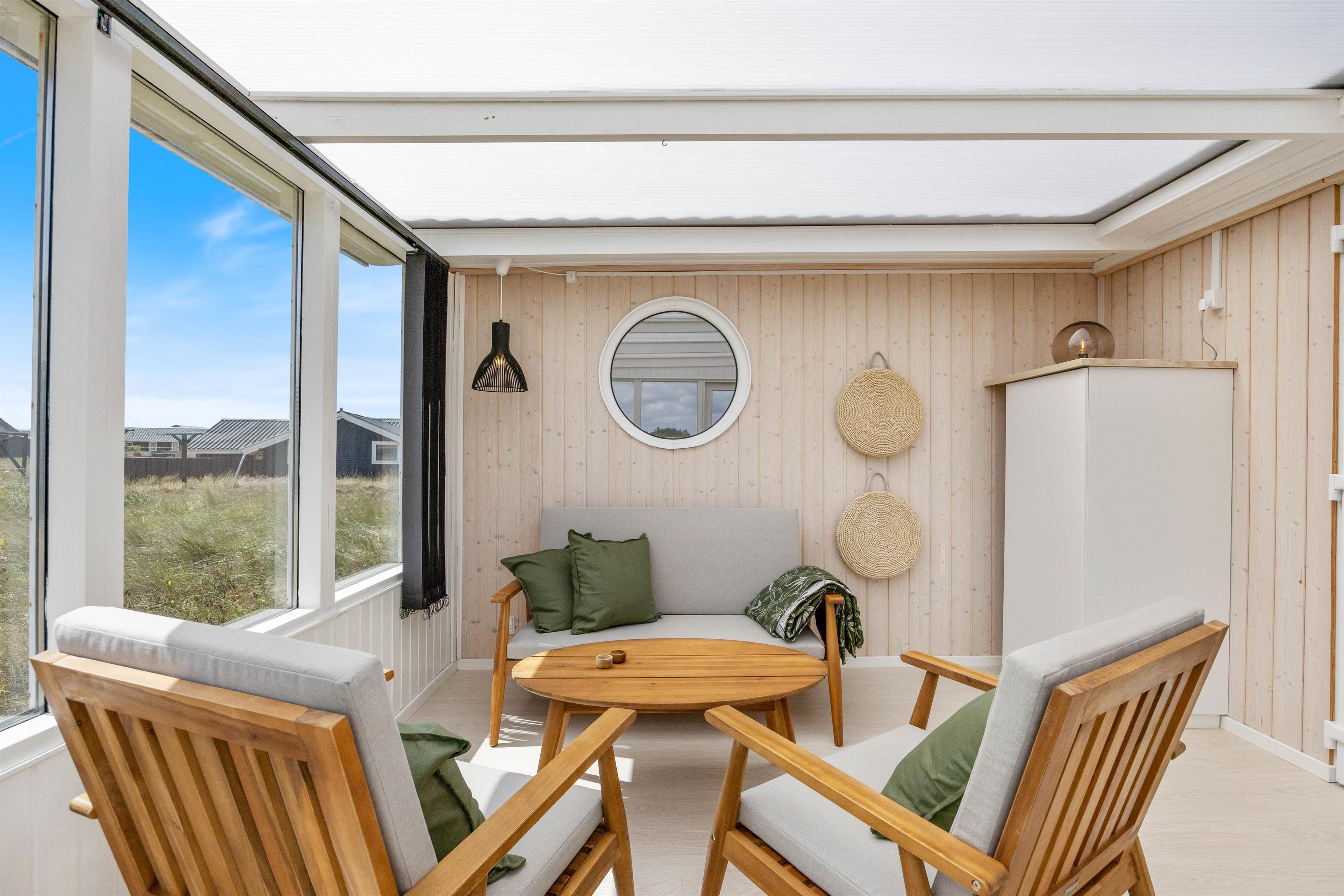Et særligt højdepunkt ved huset er den dejlige udestue. Med sine komfortable møbler er den det ideelle sted til mange afslappede timer – selv når vejret ikke viser sig fra sin bedste side.