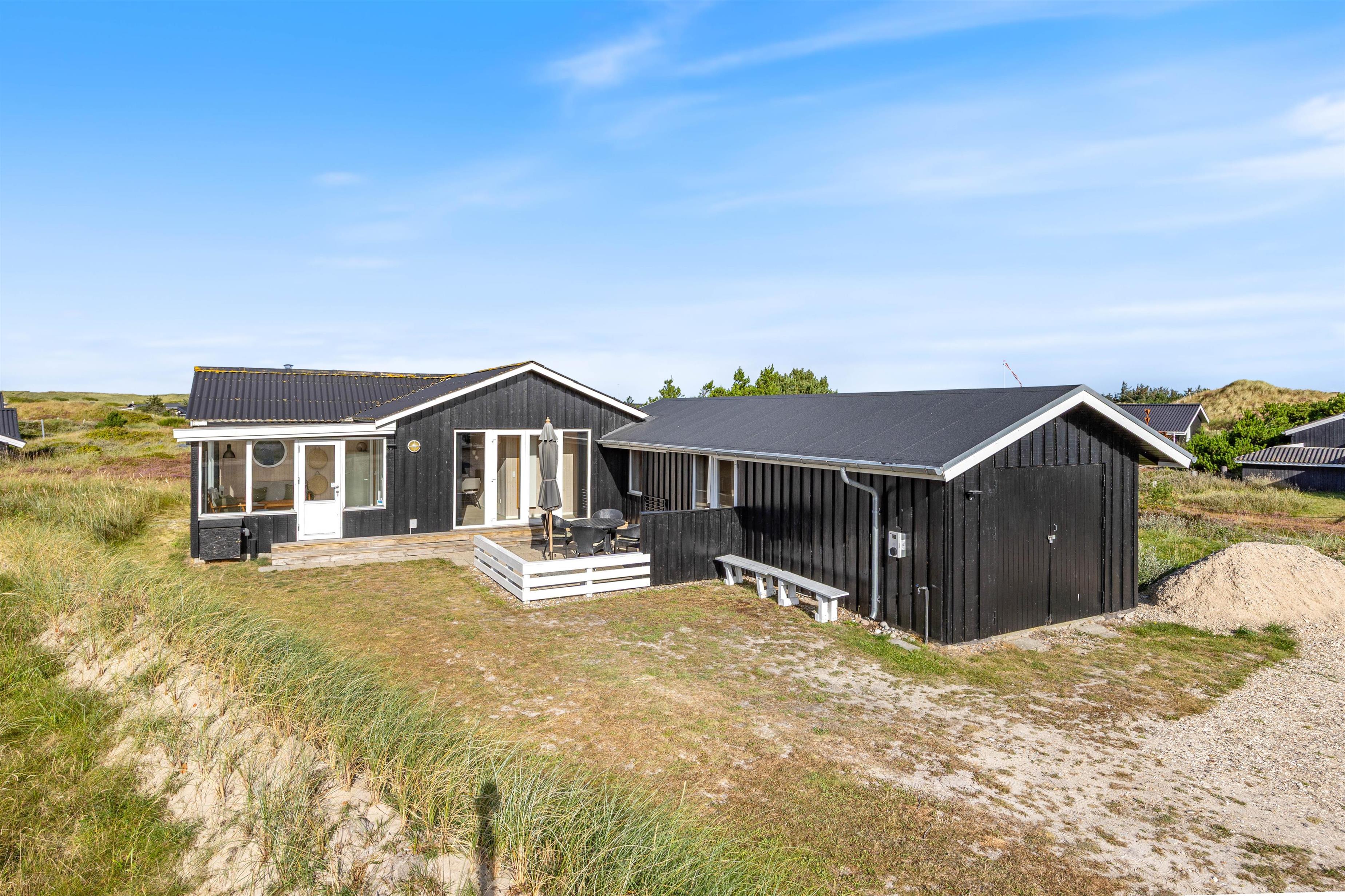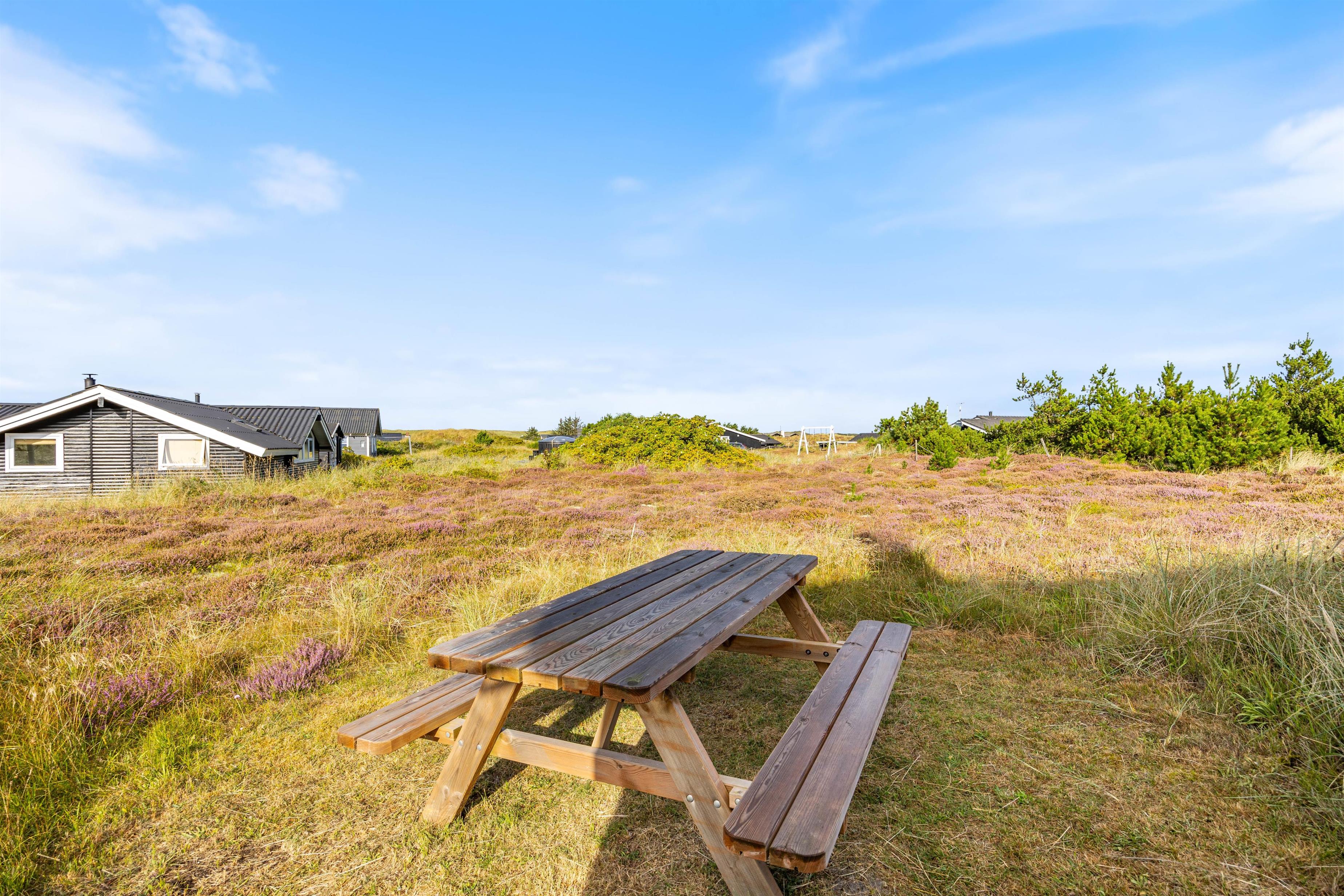 Den cirka 1.300 m² store naturgrund giver rig mulighed for at slappe af og nyde solen. På den åbne terrasse står der behagelige havemøbler klar – perfekt til at indånde den friske vestkystluft. Om aftenen kan I tænde op i grillen og nyde et glas vin eller en kold øl i hyggeligt selskab.