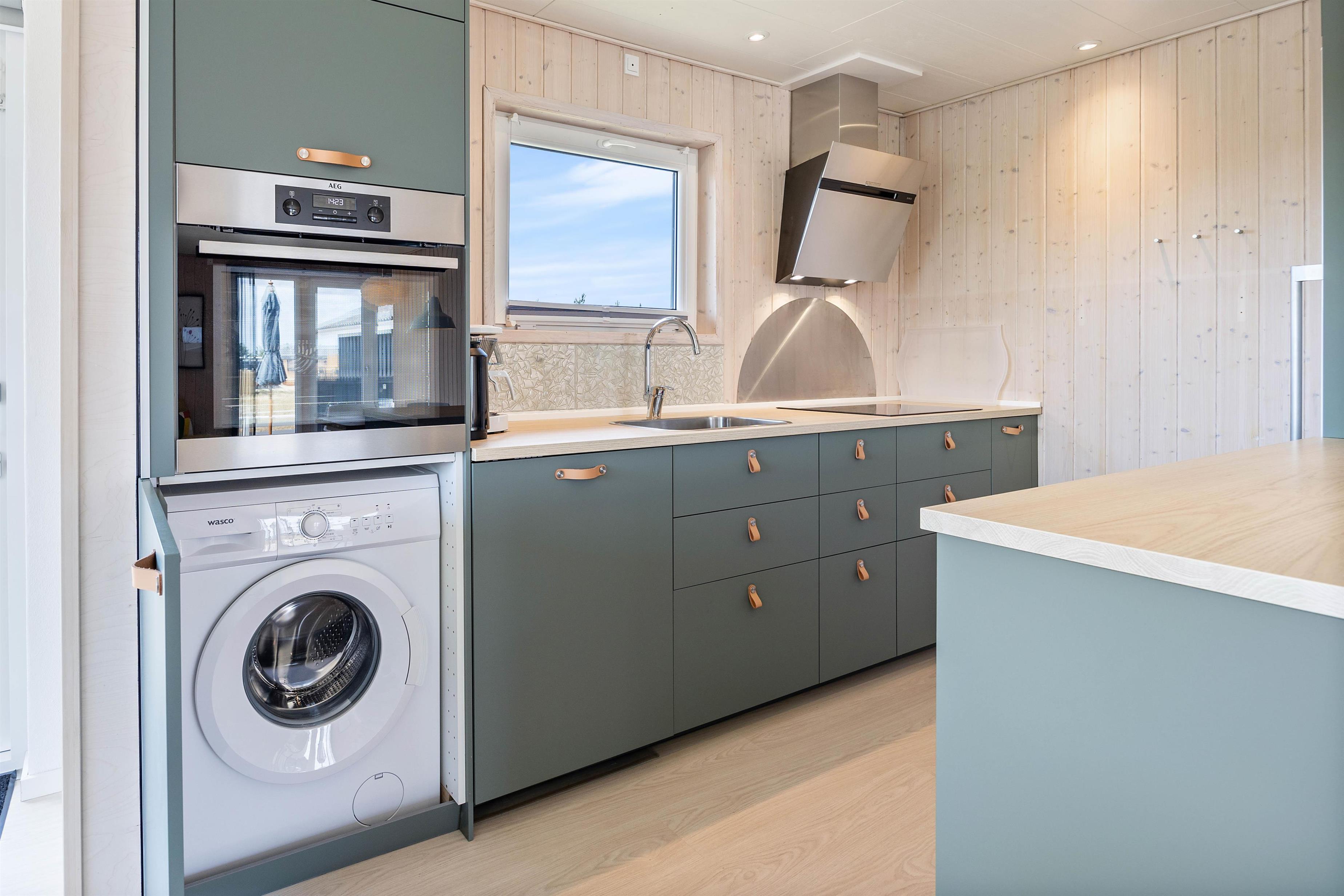 Det veludstyrede køkken gør madlavningen nem og hyggelig – alt, hvad I skal bruge, er til rådighed, også opvaskemaskinen.