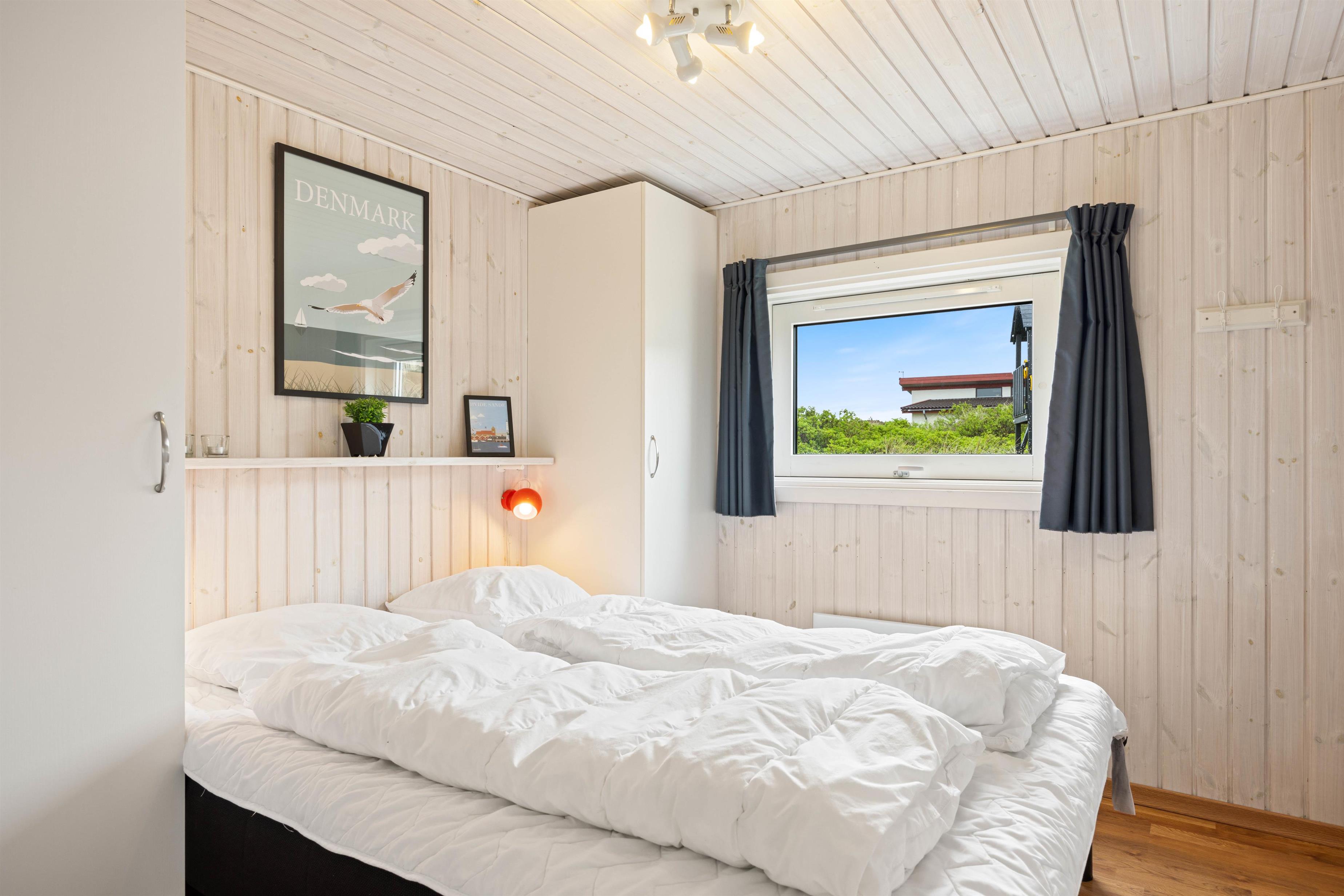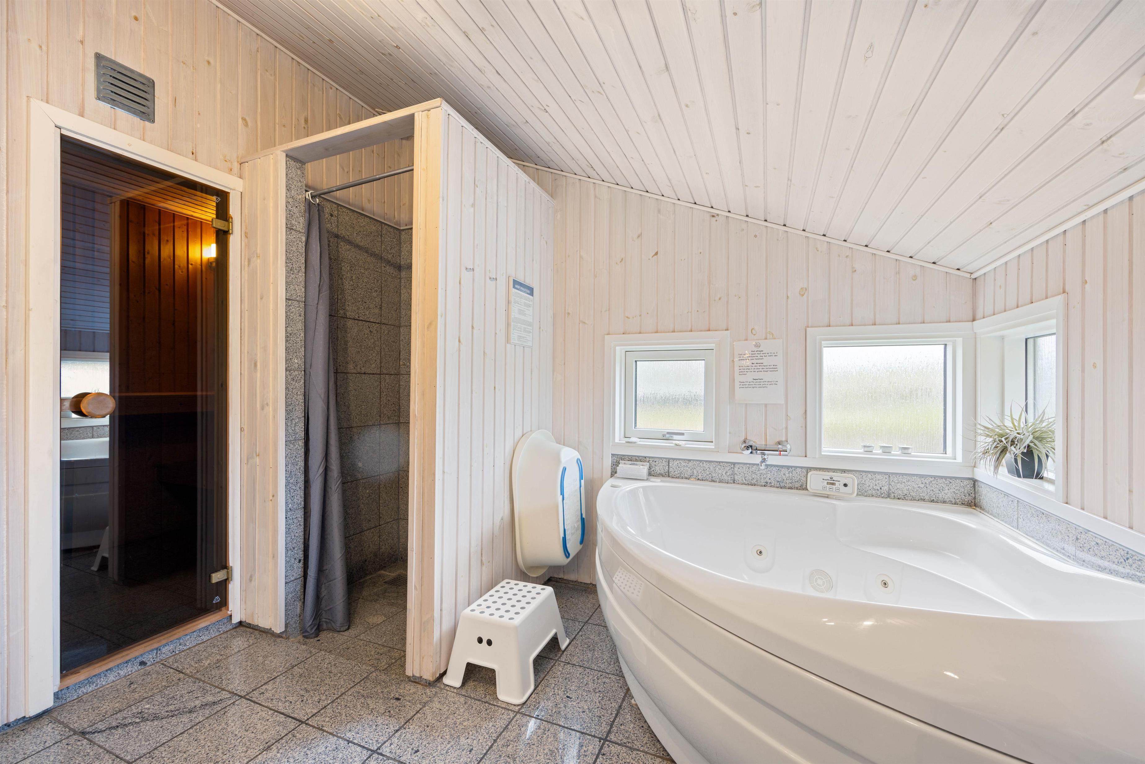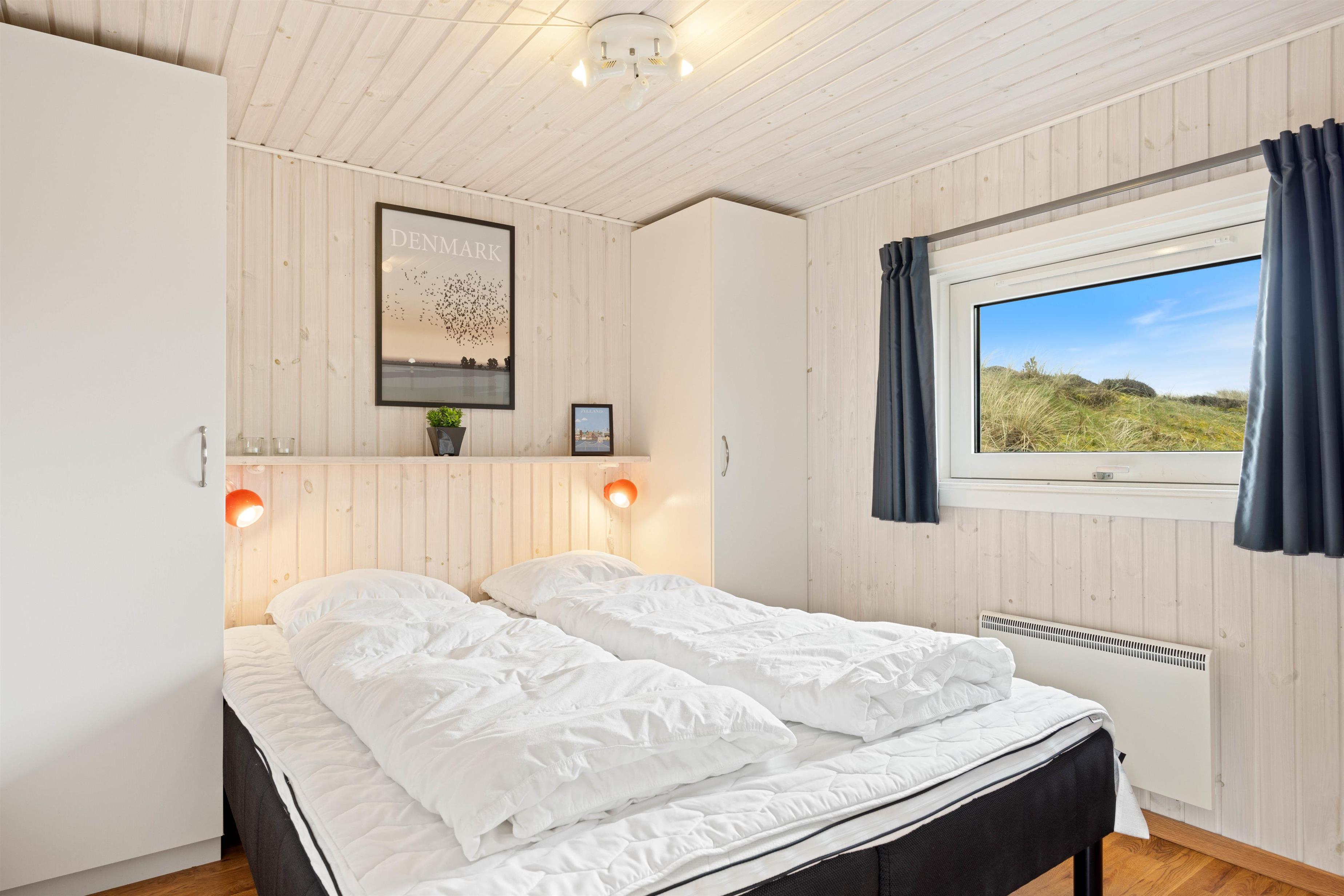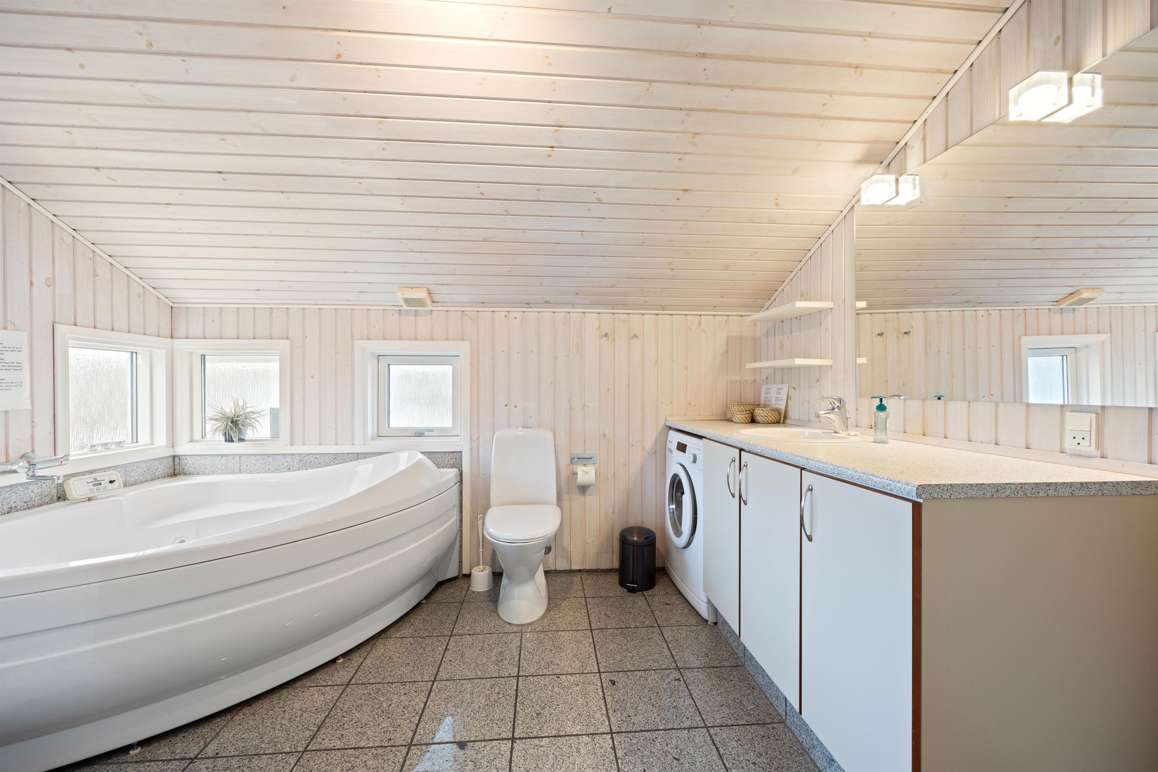 I forbindelse med det store badeværelse har I jeres eget wellnessområde med spabad og sauna. Her kan I tage jer god tid til at stresse af, da resten af familien kan benytte gæstebadeværelset imens. I de tre soveværelser med komfortable dobbeltsenge kan I hvile ud efter dagens oplevelser i den friske vesterhavsluft. De unge kan sove på hemsen, hvor der er 2 madrasser til dem. Der er babyseng, højstol og vaskemaskine til rådighed for jer på ferien.