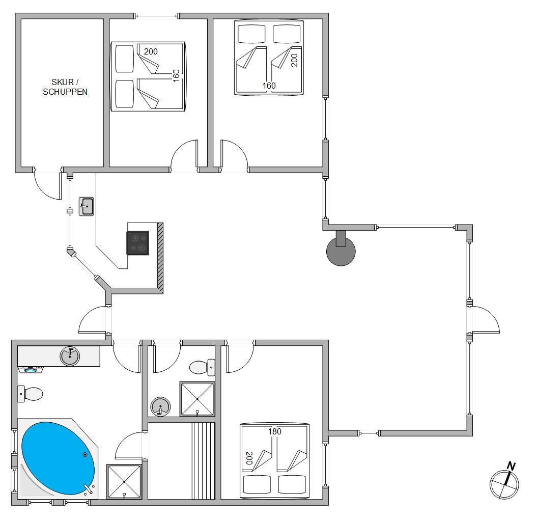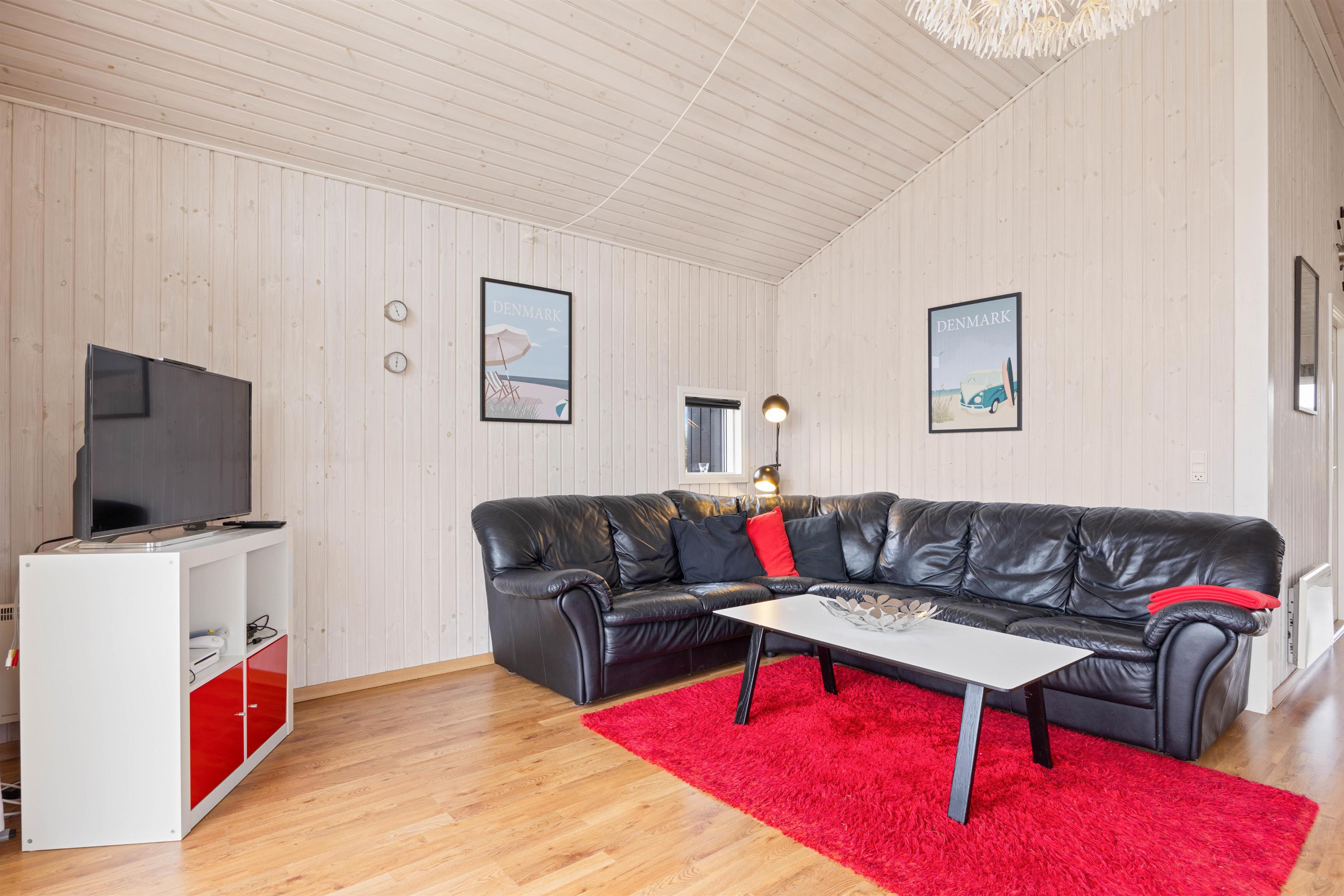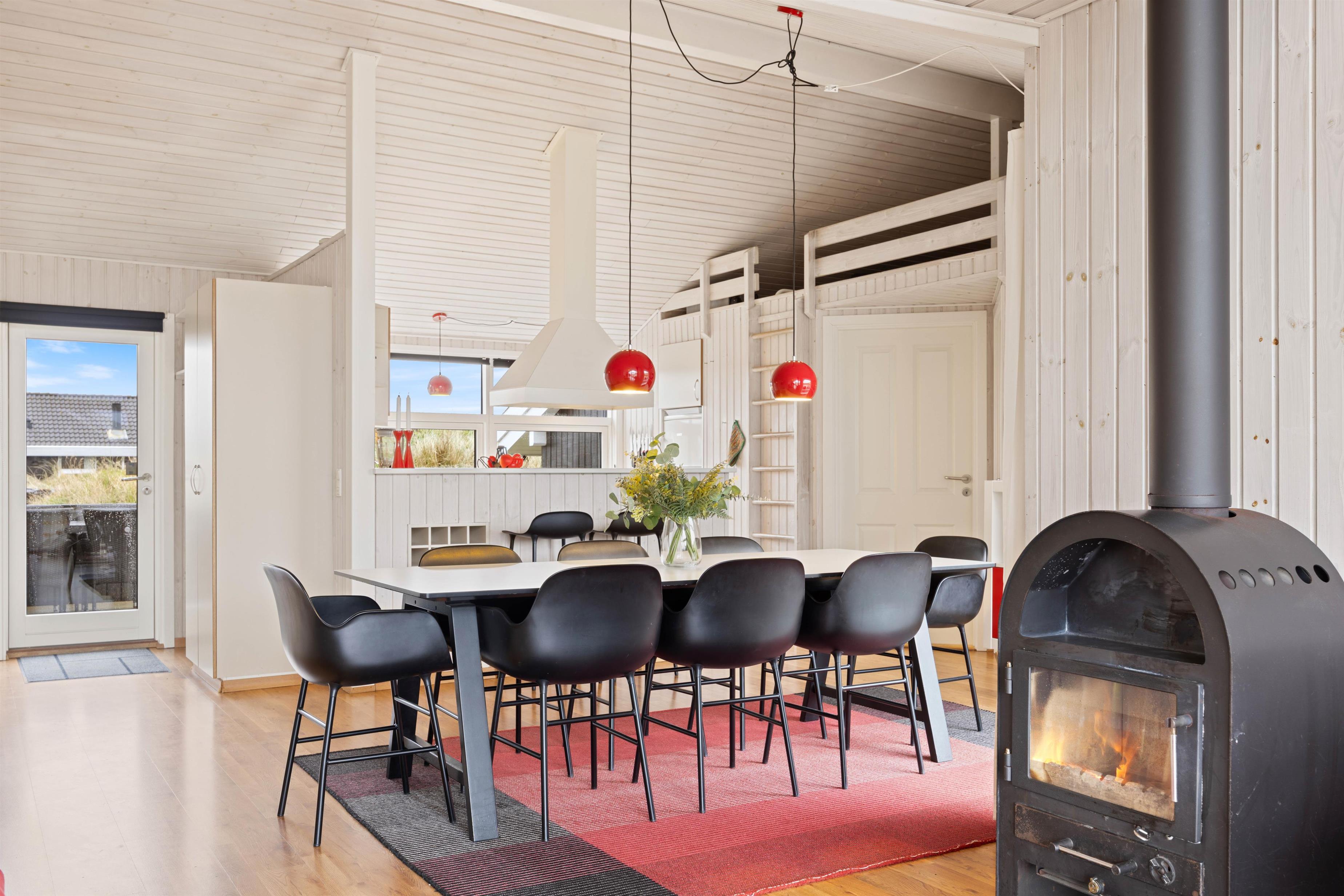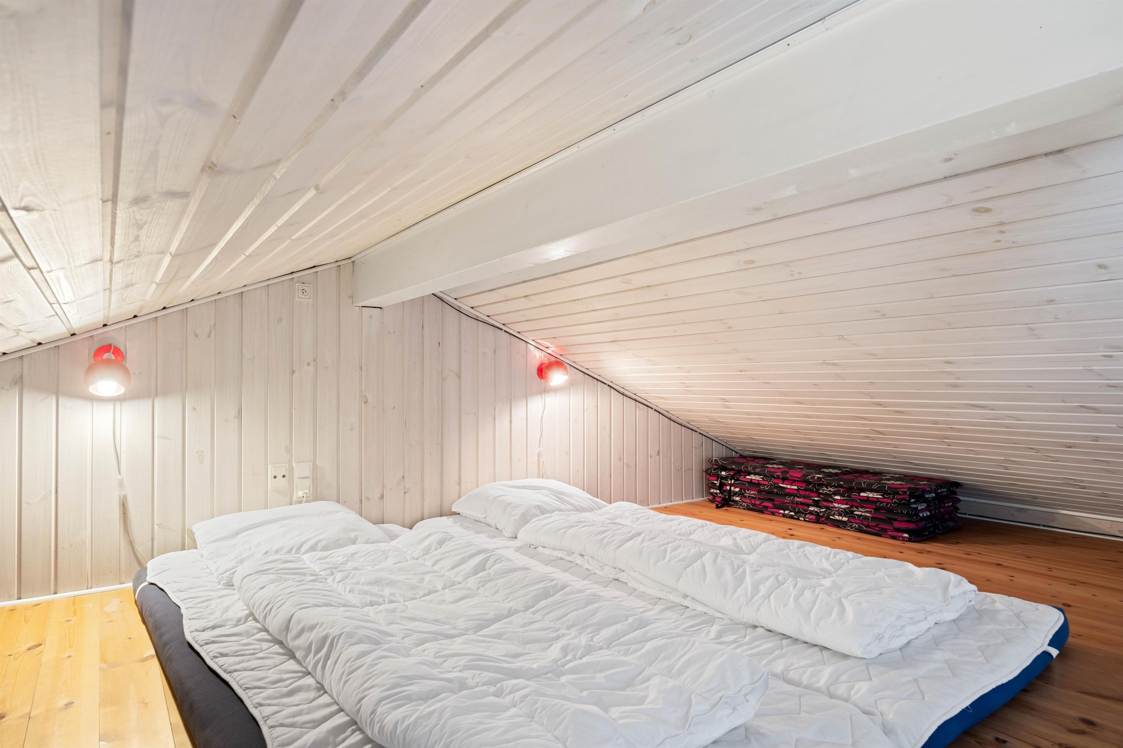 I forbindelse med det store badeværelse har I jeres eget wellnessområde med spabad og sauna. Her kan I tage jer god tid til at stresse af, da resten af familien kan benytte gæstebadeværelset imens. I de tre soveværelser med komfortable dobbeltsenge kan I hvile ud efter dagens oplevelser i den friske vesterhavsluft. De unge kan sove på hemsen, hvor der er 2 madrasser til dem. Der er babyseng, højstol og vaskemaskine til rådighed for jer på ferien.