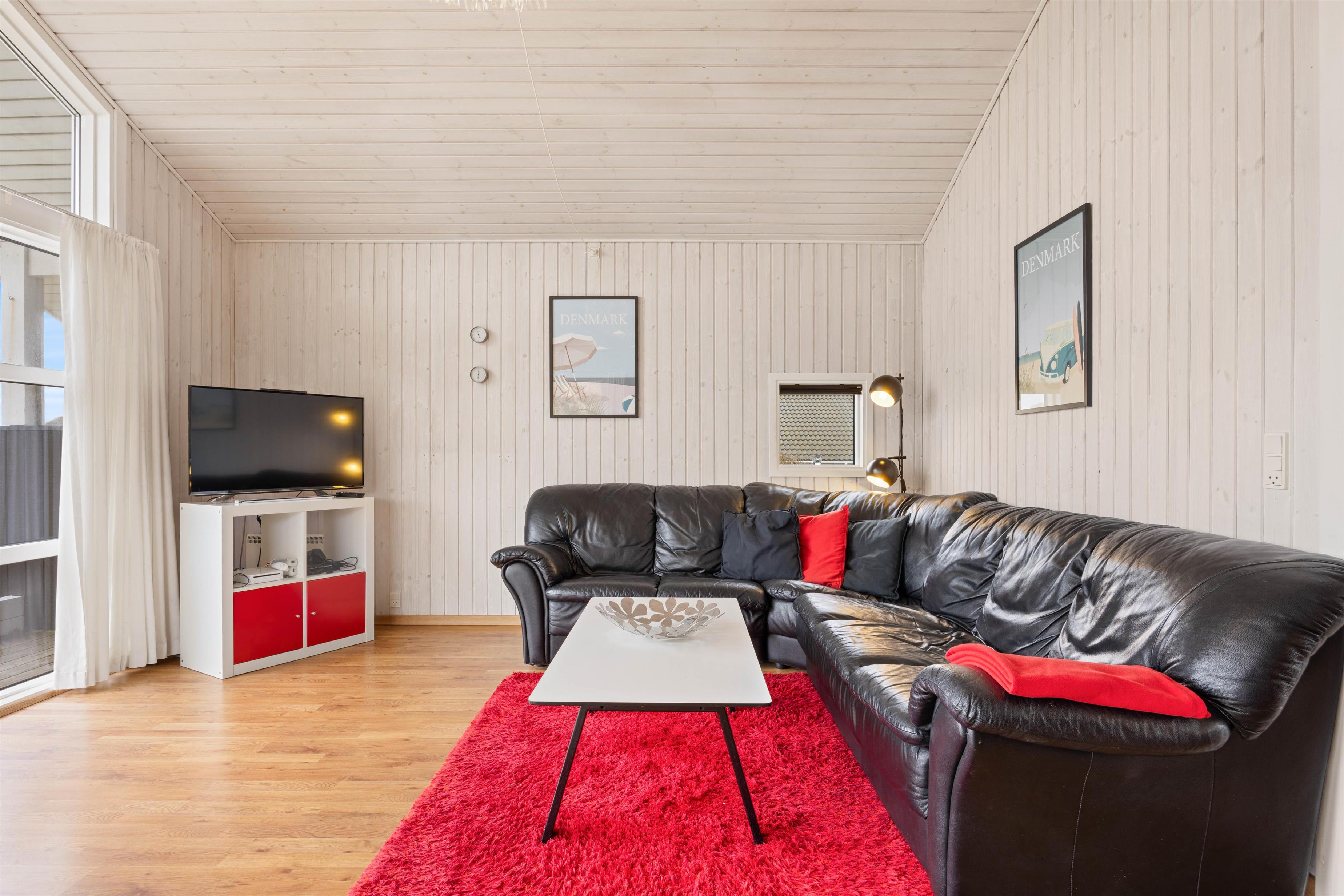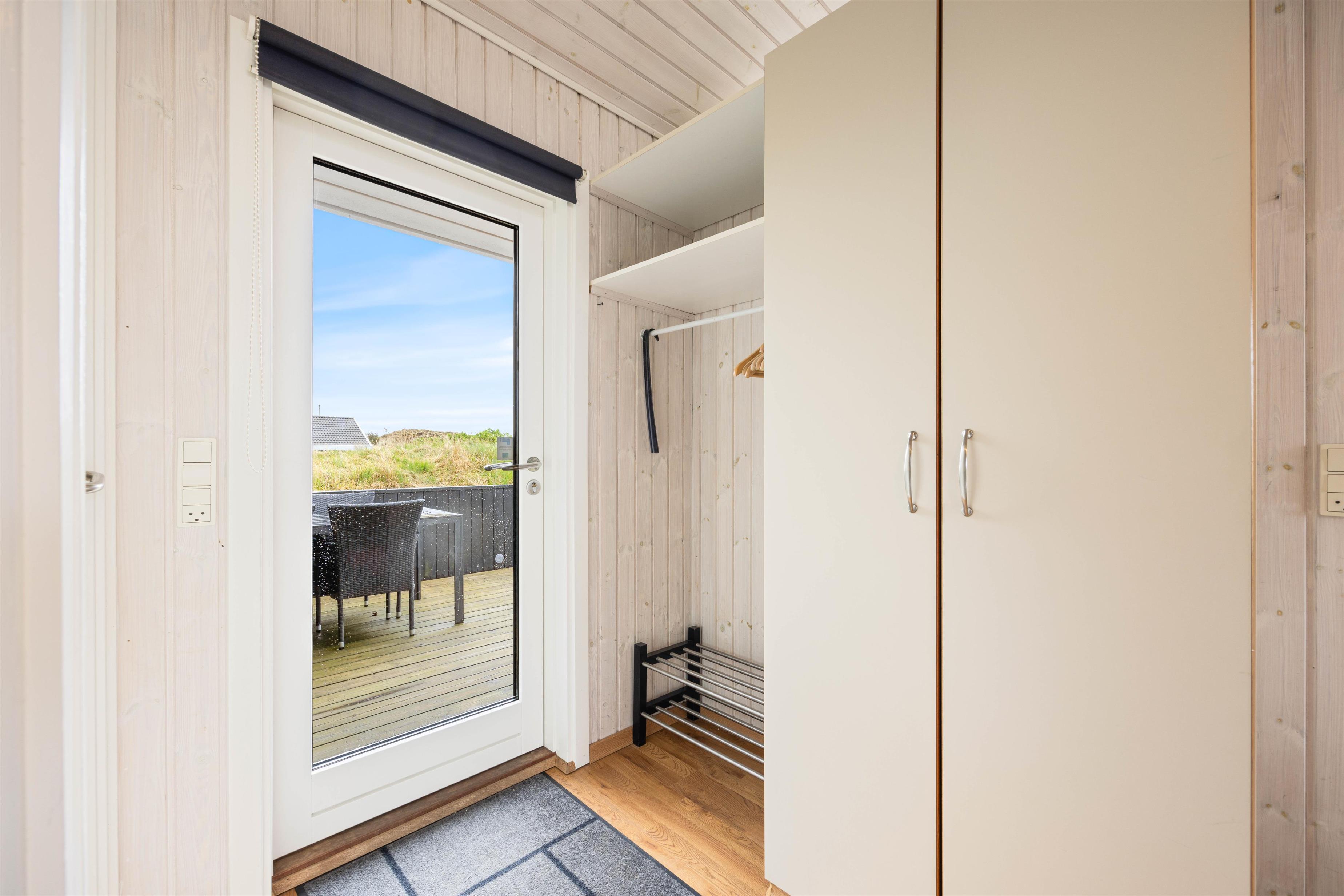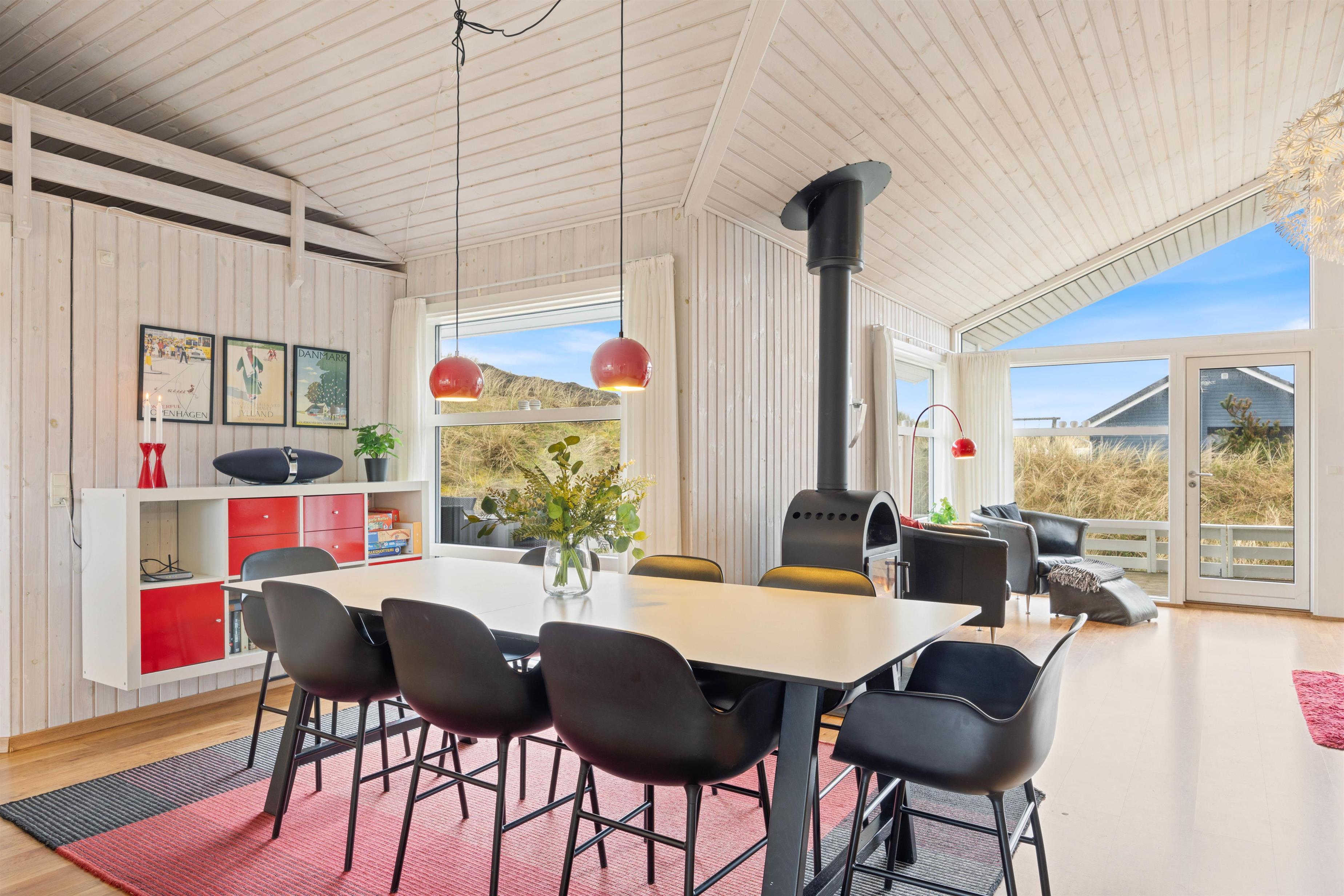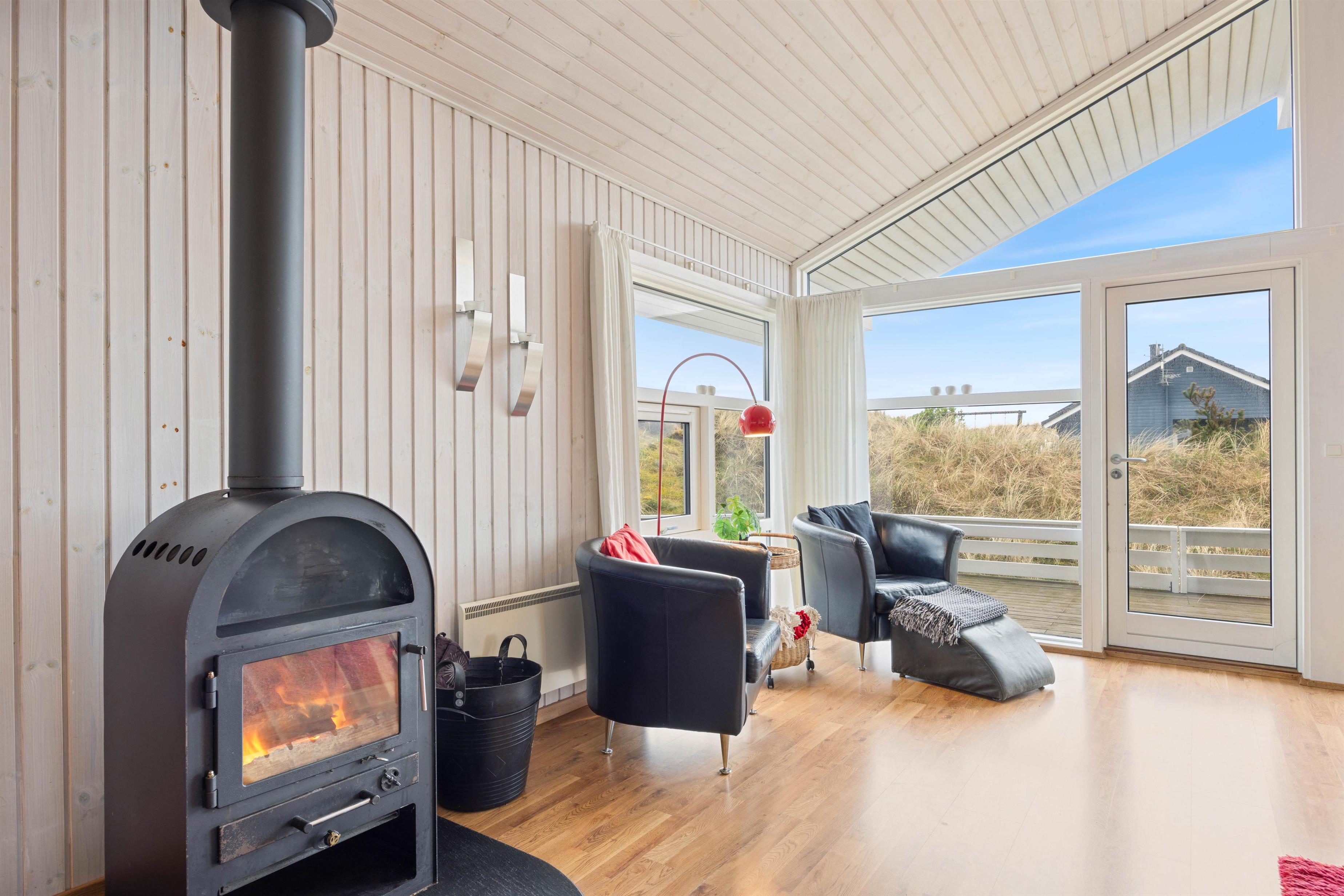 På den store sydvestvendte terrasse kan I nyde solen i komfortable havemøbler og liggestole. Bliver solen for stærk, kan I trække ind på det overdækkede område eller om på terrassen på den anden side af sommerhuset. Børnene kan lege i sandkassen, gynge eller gå på opdagelse på klitgrunden. Med kun 650 meter til Vesterhavet bliver en tur til stranden et must for unge og gamle. Få håret blæst igennem og tag eventuelt en dukkert, før turen går tilbage igennem klitlandskabet til jeres hyggelige sommerhus. Tænd op i grillen og nyd et lækkert grillmåltid sammen, mens skyggerne bliver lange.