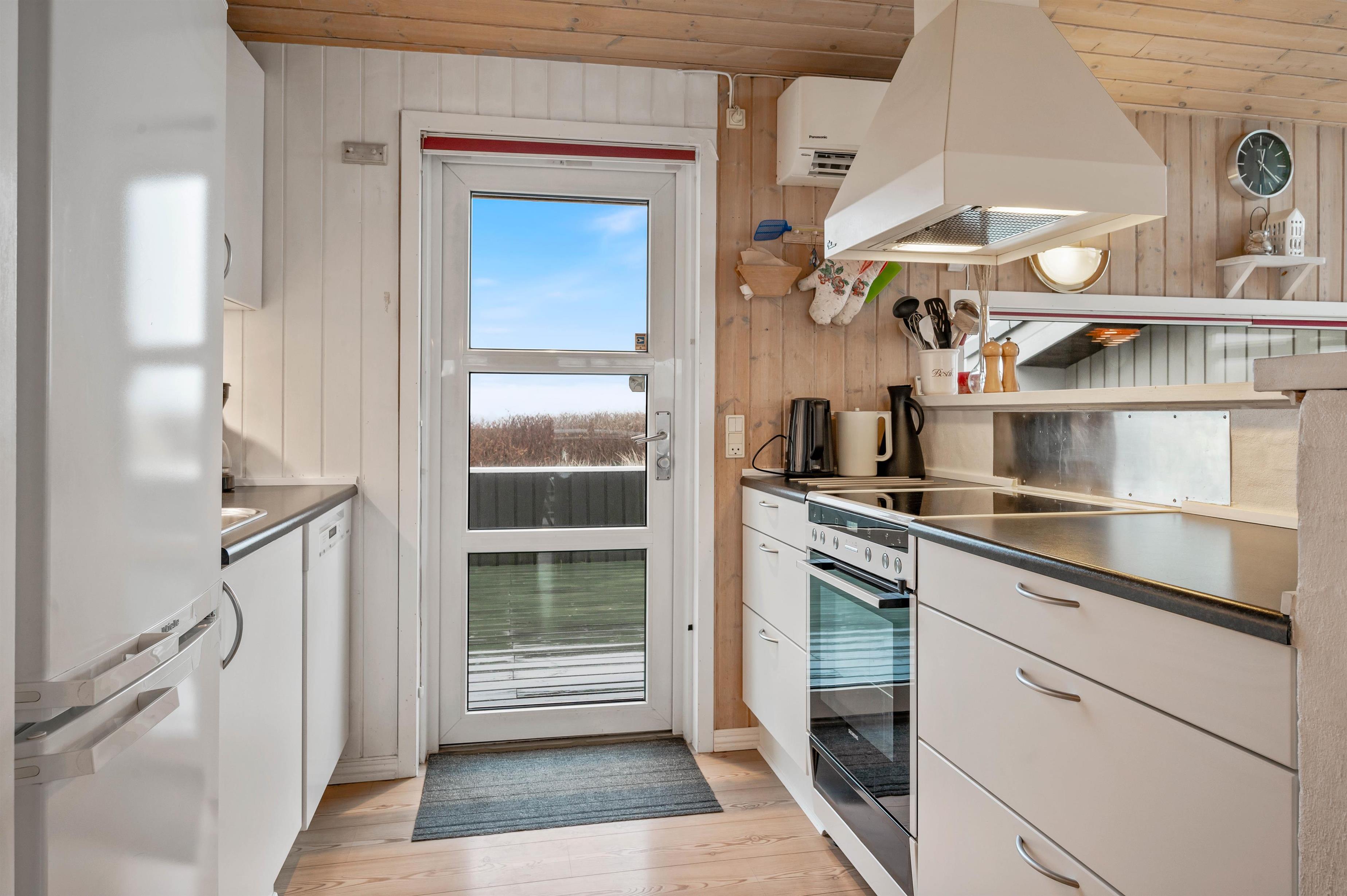 Her kan I nyde jeres velfortjente ferie i et velisoleret og indbydende indrettet feriehus med alle faciliteter til den vellykkede ferie på vestkysten i Danmark. Sommerhuset har et lyst og veludstyret køkken, hvorfra der er forbindelse til både spiseafdeling og opholdsafdeling med elegant og gedigen møblering.