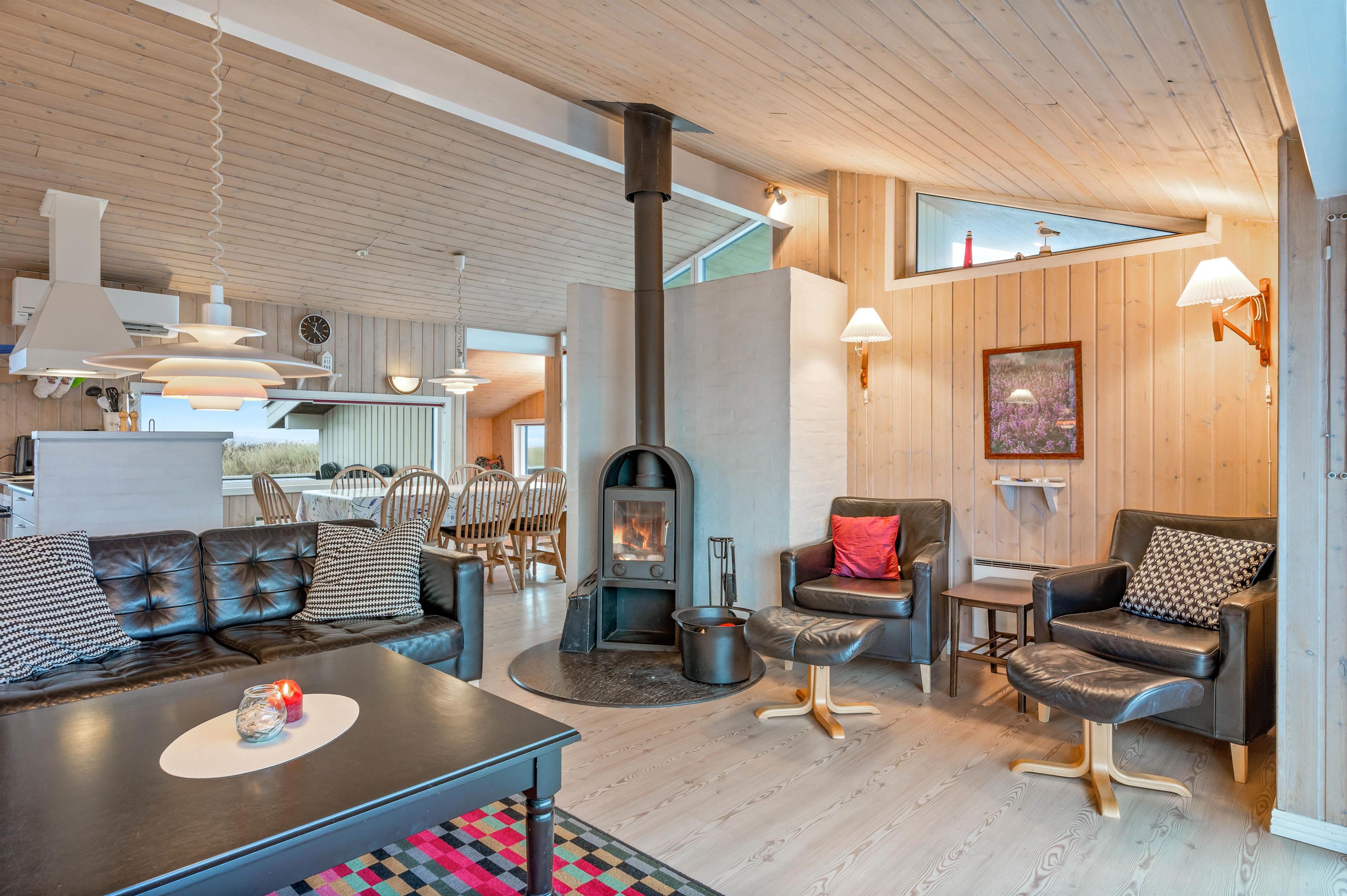 Feriehuset har 3 fortræffelige soverum og 2 ekstra sovepladser i en hyggelig alkove, som er udstyret med ekstra TV, der gør det muligt at få en god nats søvn. En robust brændeovn sørger, sammen med TV og stereoanlæg, for den afslappede stemning i de komfortable sofaer og det trådløse internet kan benyttes gratis. Som supplement til brændeovnen findes i sommerhuset også en stor varmepumpe, der gør det nemt at regulere temperaturen.