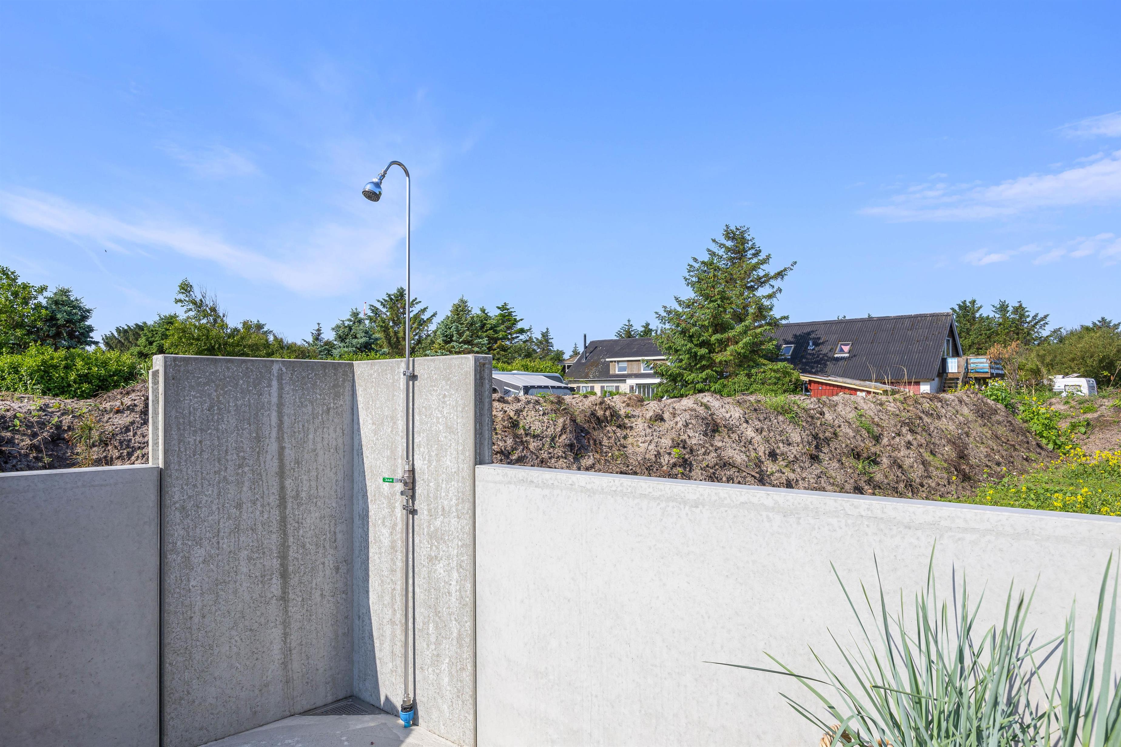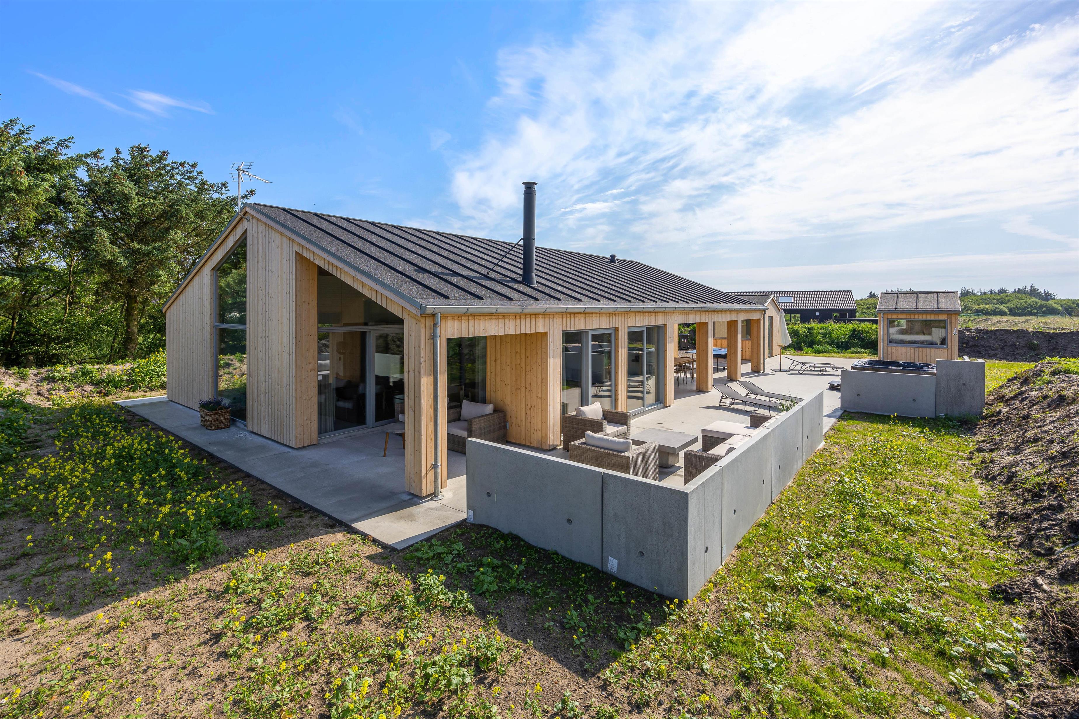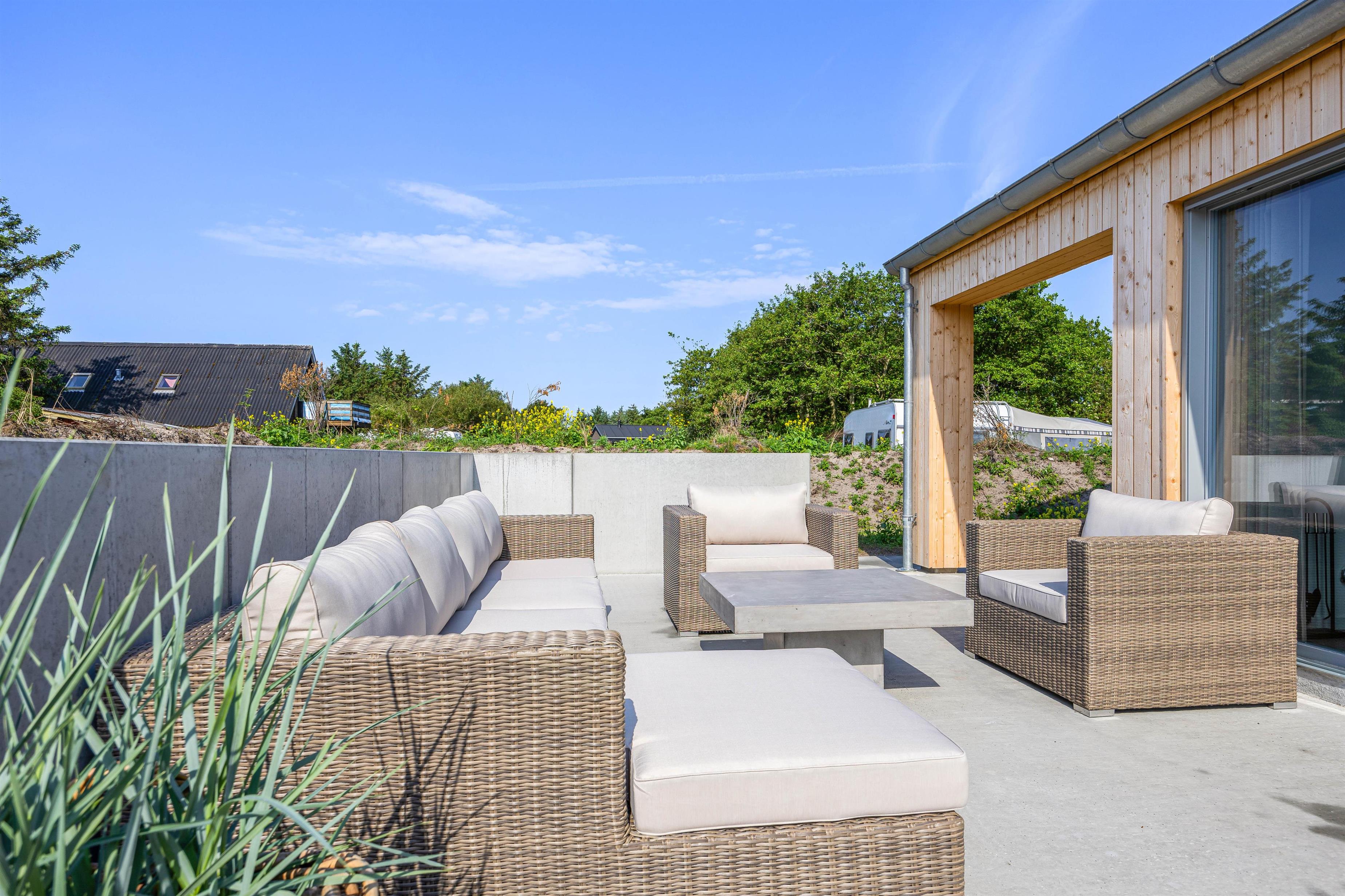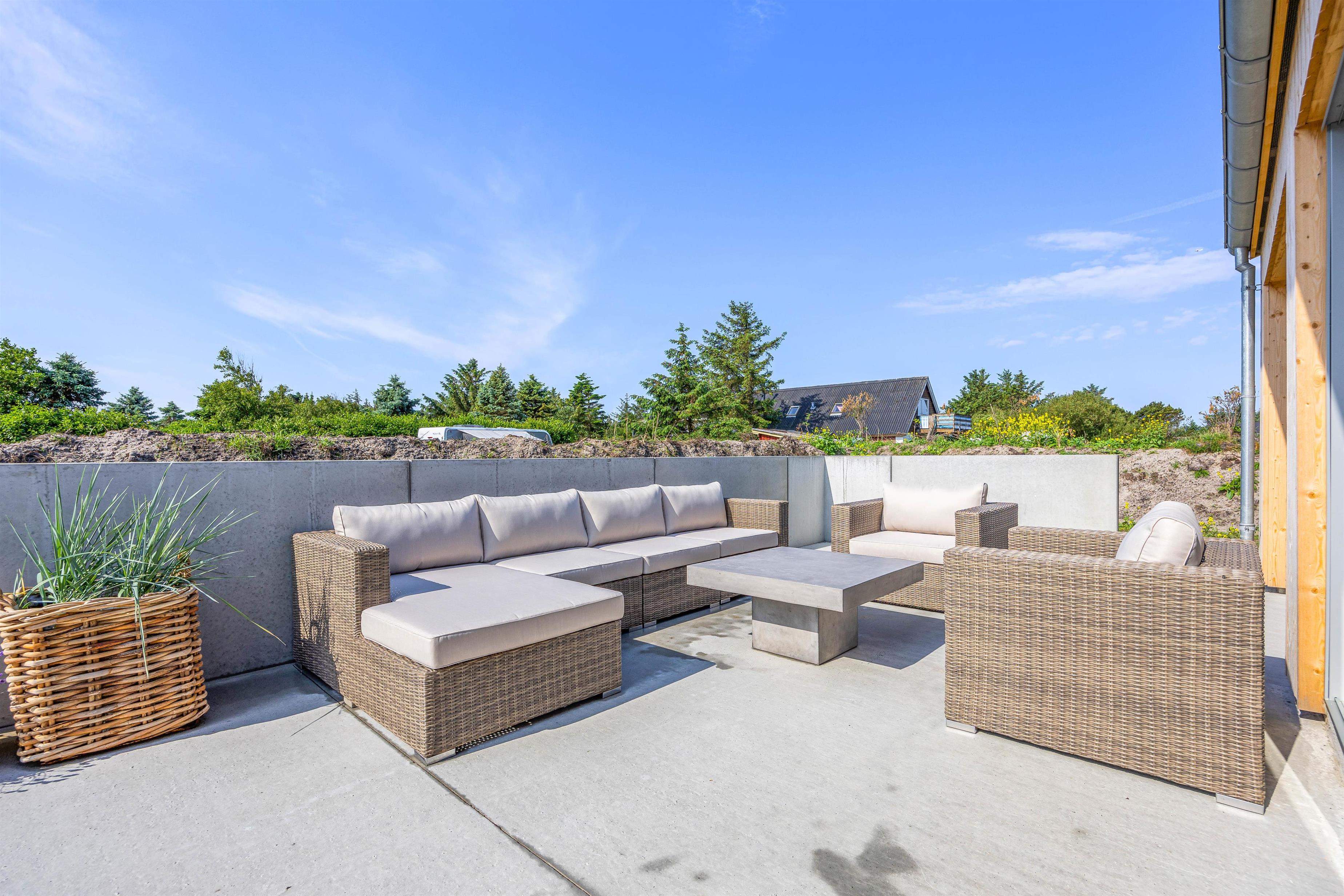 Den fine terrasse har både en afskærmet og en overdækket del, så I kan rykke rundt efter solen. Tag solbad i liggestolene eller slap af i havemøblerne. Har I brug for mere aktivitet, kan I udfordre børnene i et spil viking på plænegrunden. Tænd op i grillen til aften og nyd et lækkert grillmåltid sammen. Måske skal teenagerne stå for menuen denne dag. I kan stadig nå en spadseretur til stranden og opleve solnedgangen i Vesterhavet – det er altid en imponerende oplevelse. Udebruseren og udespaen kan I benytte, lige når det passer jer - wellness på en kølig dag eller under stjernehimlen med et glas vin. Udebruseren er tilgængelig fra april til november.