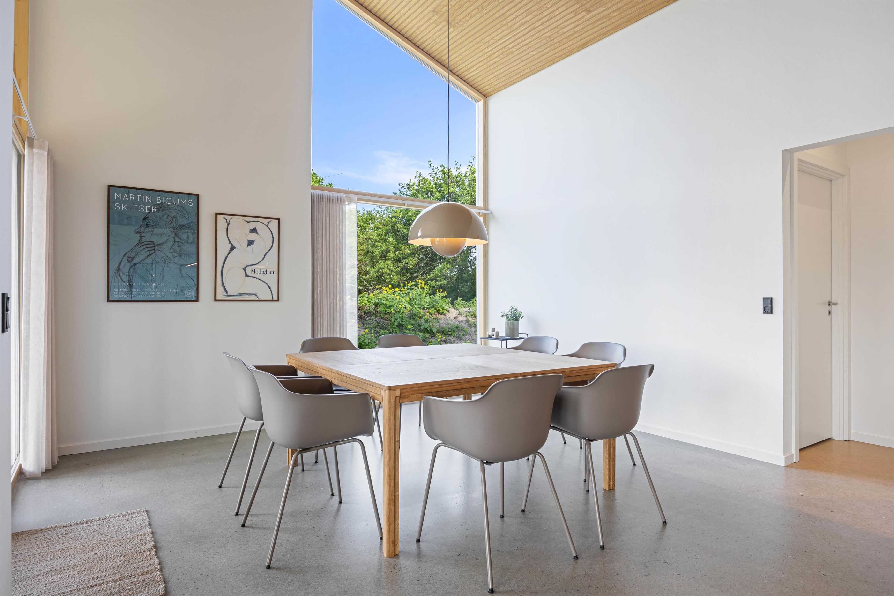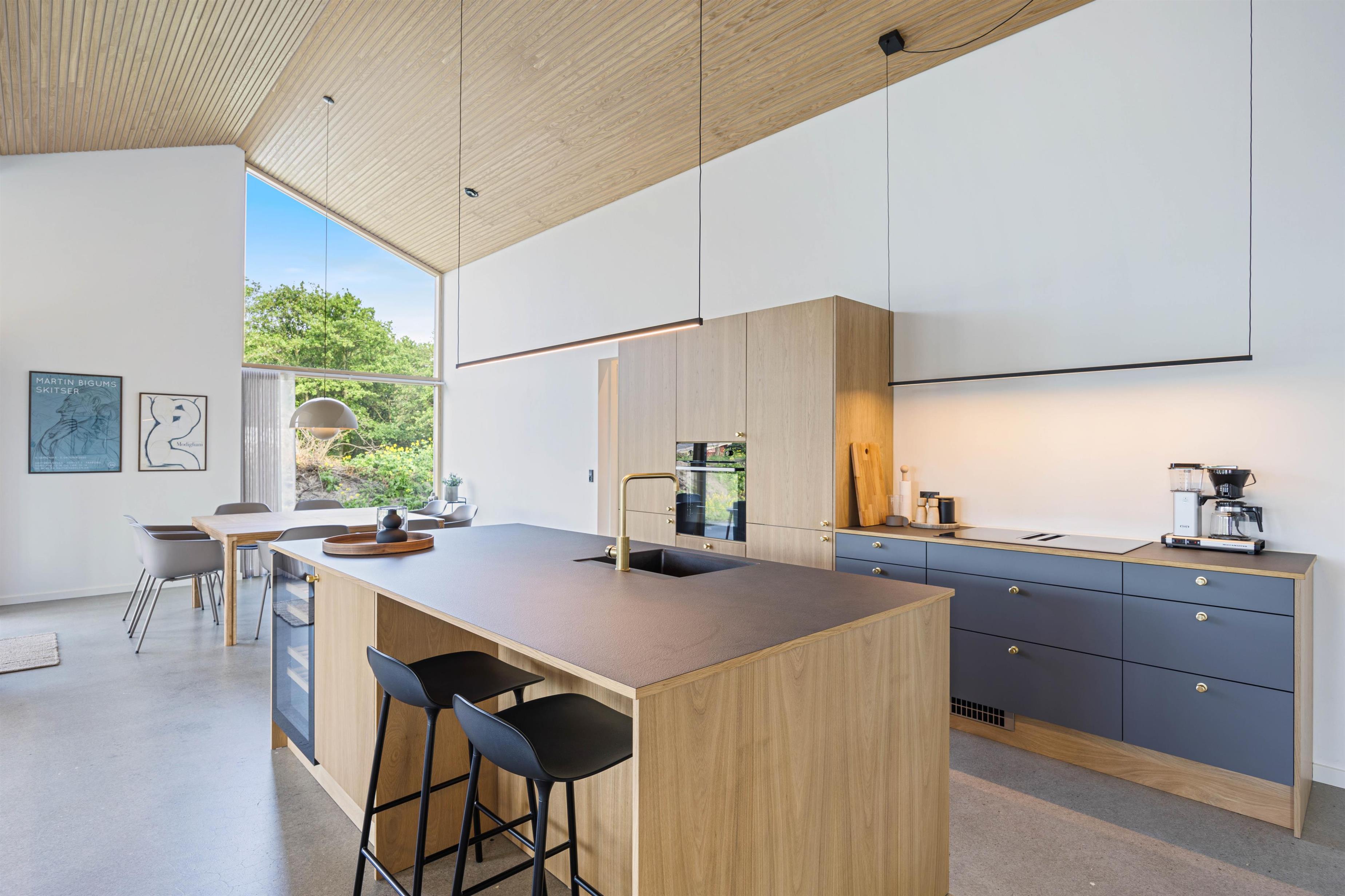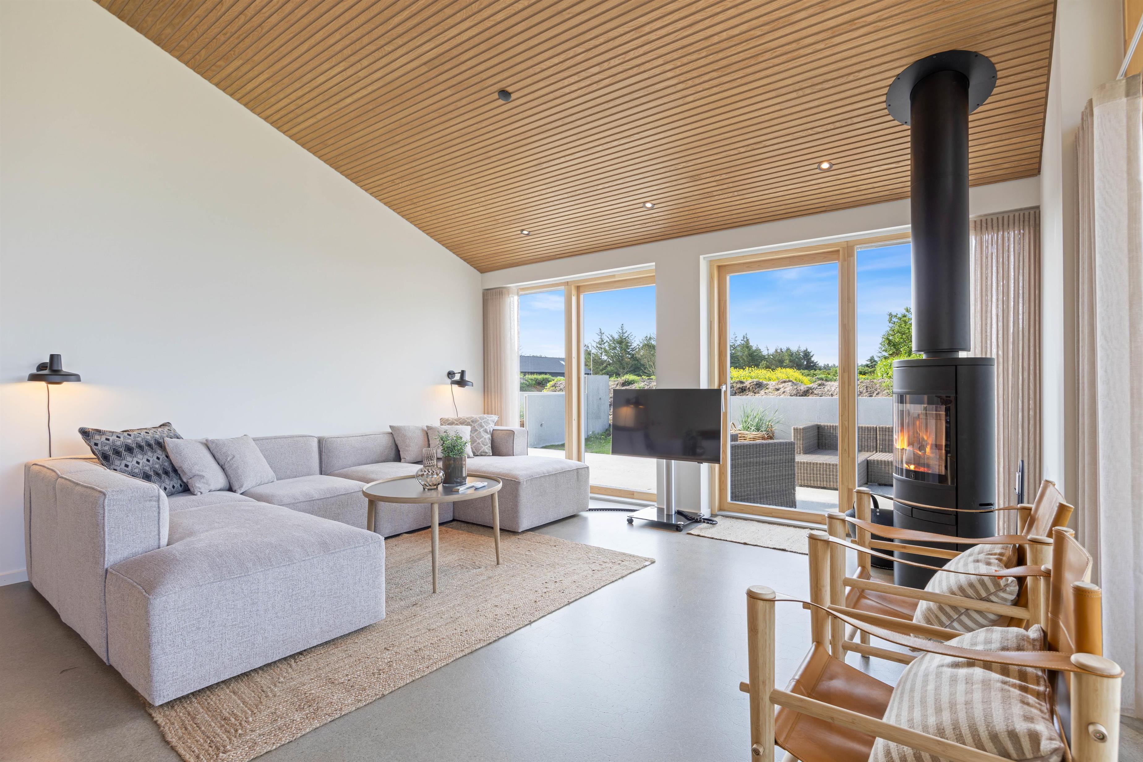 I vil føle jer godt tilpas straks, I træder ind ad døren til Heidesvej 1. Den lyse, moderne indretning med lofter op i kip giver et dejlig let miljø, og tænder I op i brændeovnen, vil feriestemningen straks indfinde sig. Slap af i sofaen, spil et brætspil ved spisebordet eller træk jer tilbage med en god bog. I kan alle opholde jer i den store, lyse stue. Samtidig kan I tilberede næste måltid i det åbne køkken, som indeholder alt, hvad I har brug for. Den omkostnings- og energibesparende varmepumpe sørger for behagelige temperaturer i feriehuset.
