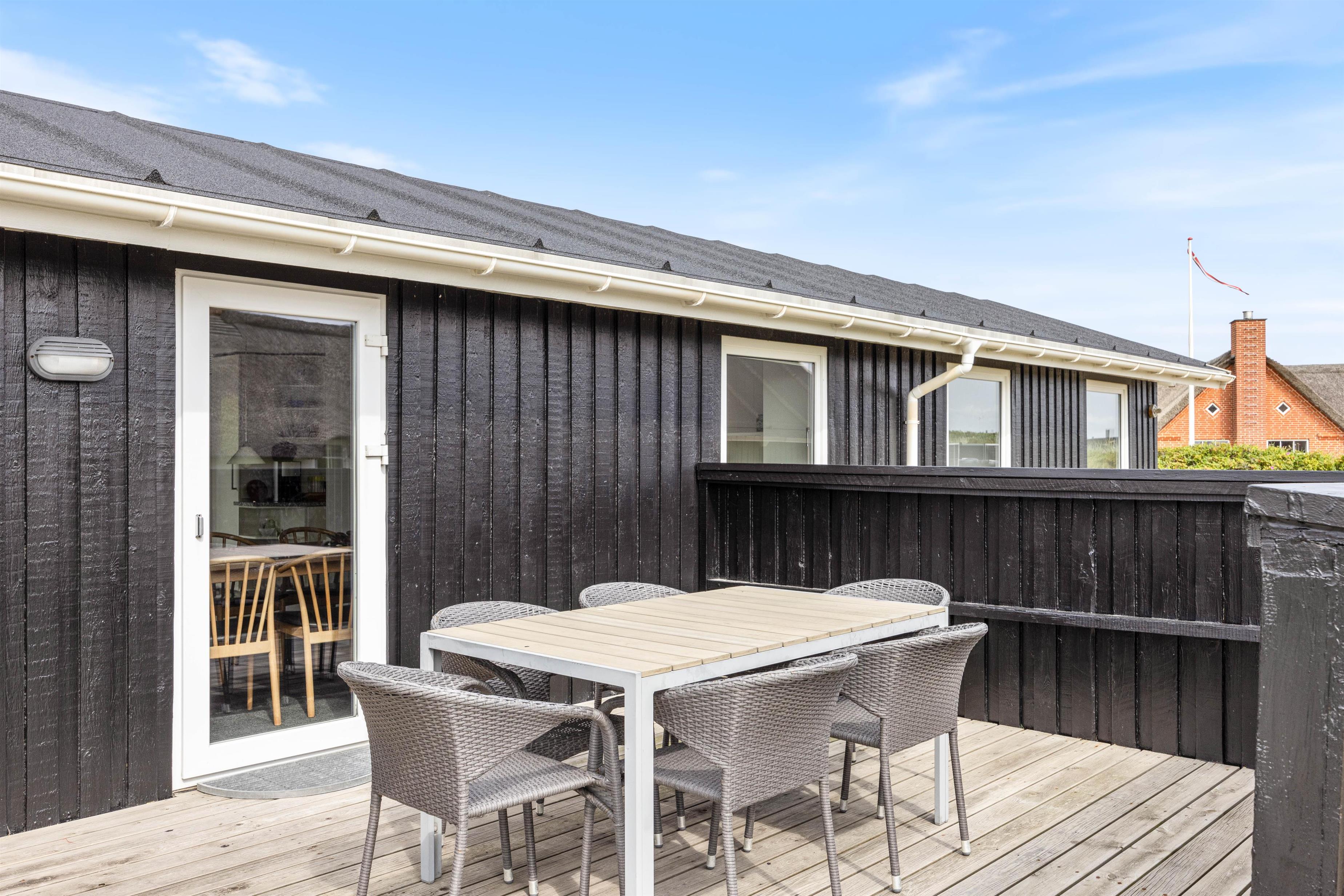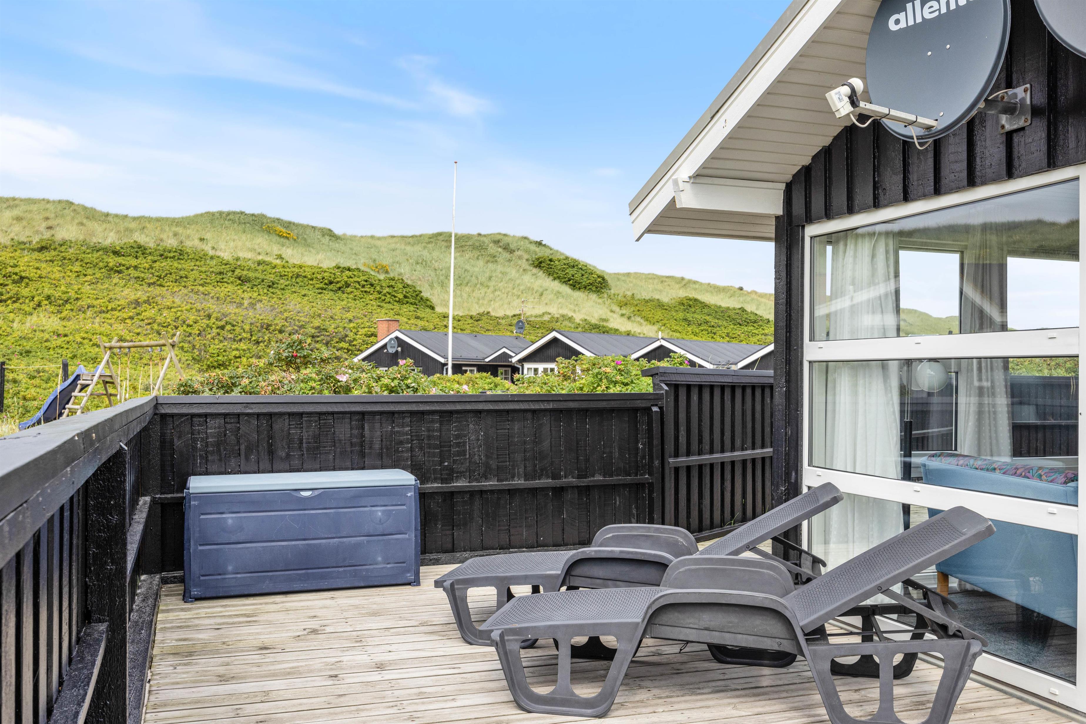 Den enestående beliggenhed meget tæt på klitterne i den storslåede vestjyske natur på Holmsland Klit, nær fiskerbyen Hvide Sande og Nymindegab, gør dette sommerhus til noget helt særligt. På den store velmøblerede og afskærmede terrasse kan man hele tiden høre bølgerne og mærke den salte luft fra det imponerende Vesterhav. Samtidig finder man her på terrassen altid en lækrog, hvor man kan nyde solen og naturen.