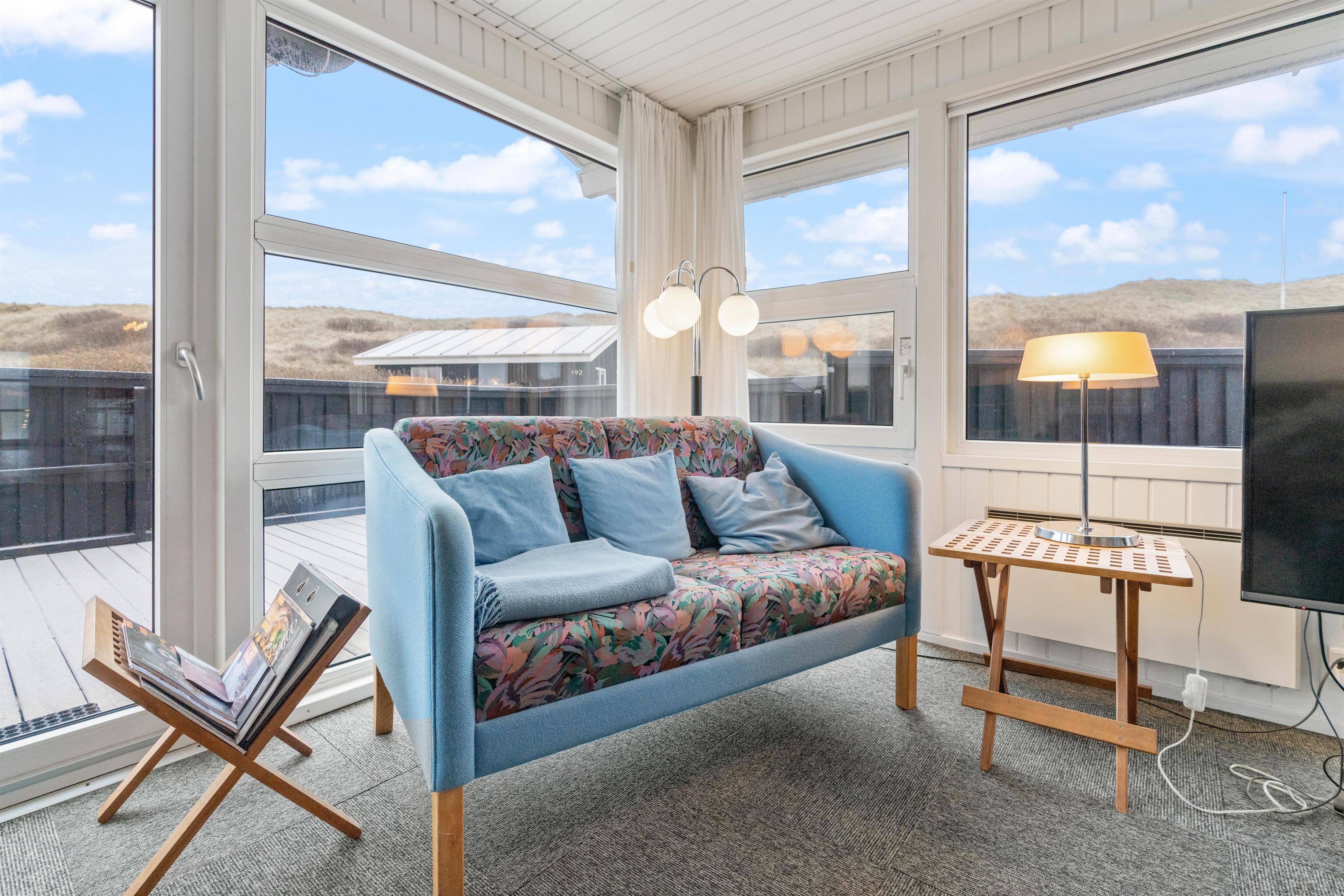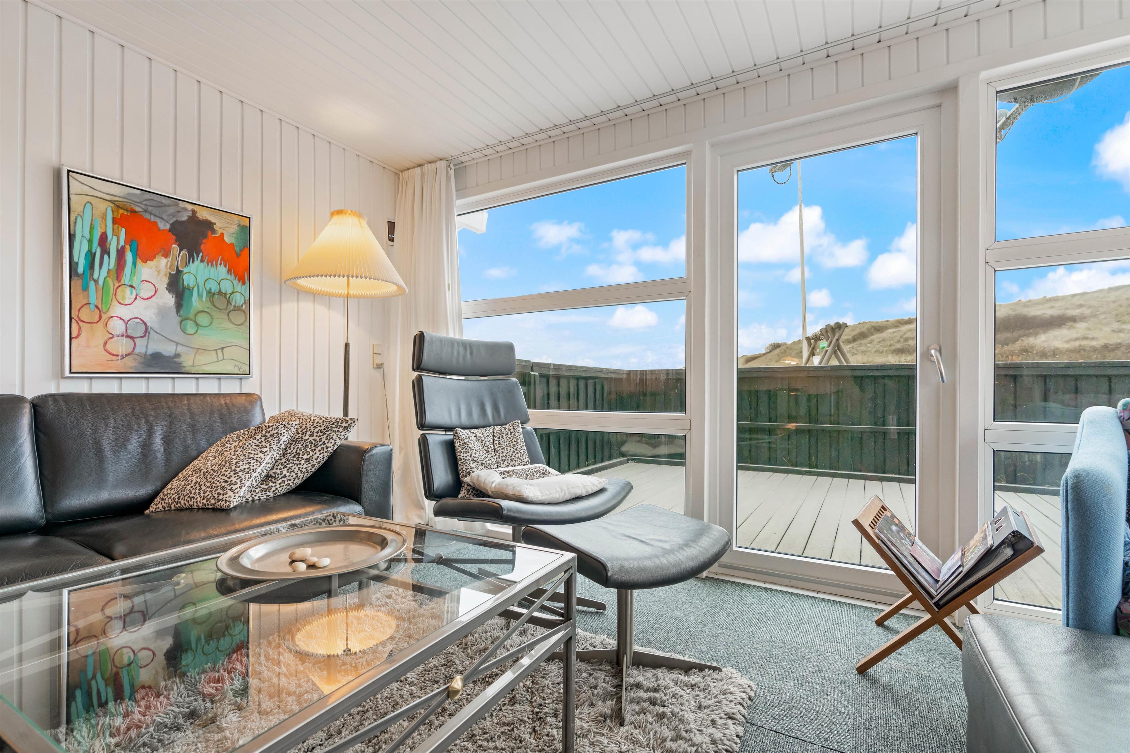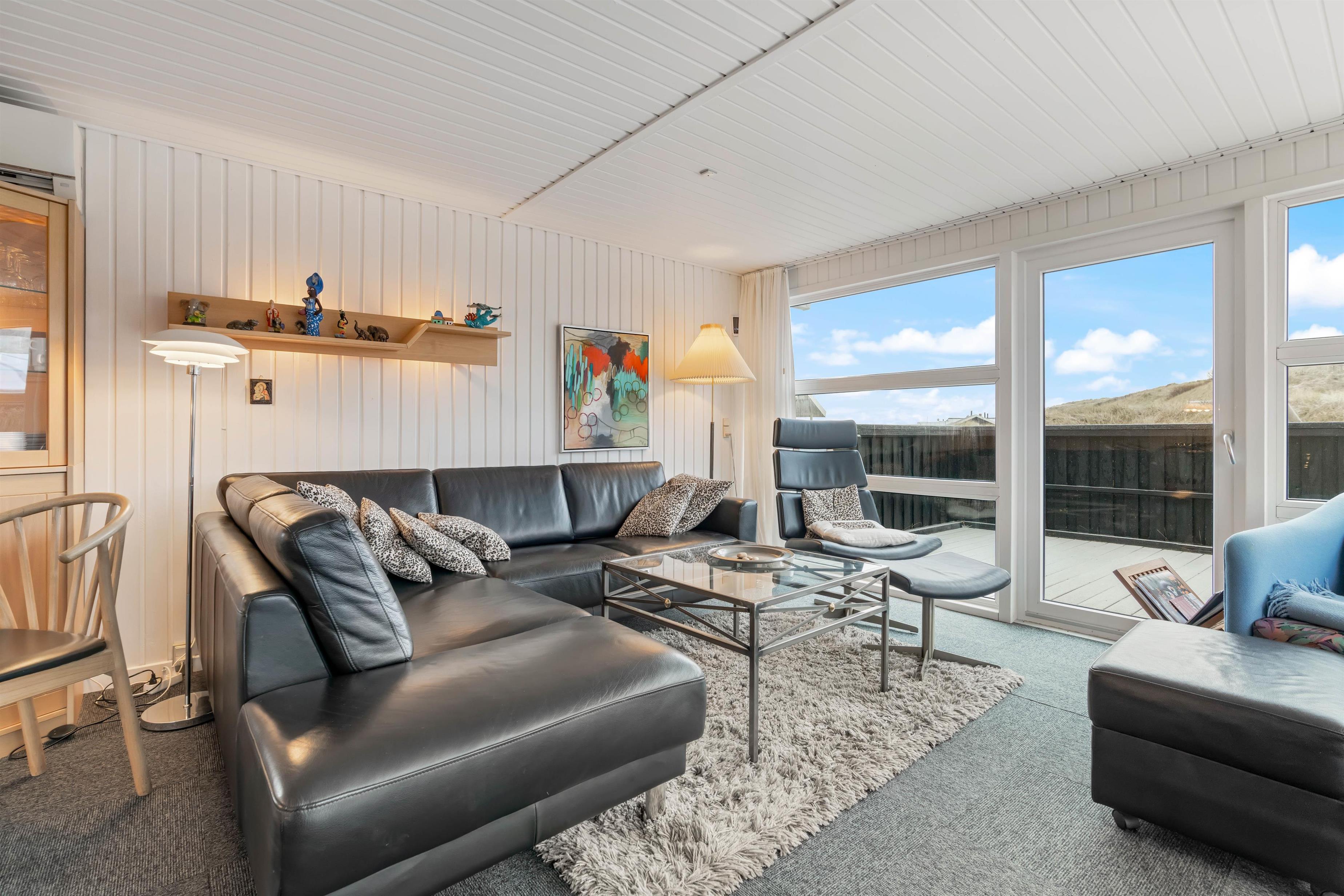 Sommerhuset er indbydende, lyst og venligt indrettet. Et funktionelt og praktisk indrettet køkken er åbent ind til den elegante spiseafdeling og den hyggelige og lyse opholdsafdeling. Det brede vinduesparti giver et smukt lysindfald og udsigt ud i naturen og klitterne. Hyg dig i en god lænestol med en god bog og en kop kaffe, imens ilden fra brændeovnen giver varme og hygge til hele rummet og bidrager til den afslappede feriestemning. Badeværelset med spa og sauna giver rig mulighed for afslapning og velvære. Der er 3 gode, lyse soveværelser med komfortable dobbeltsenge, hvor I kan hvile rigtig godt ud i den friske vesterhavsluft.