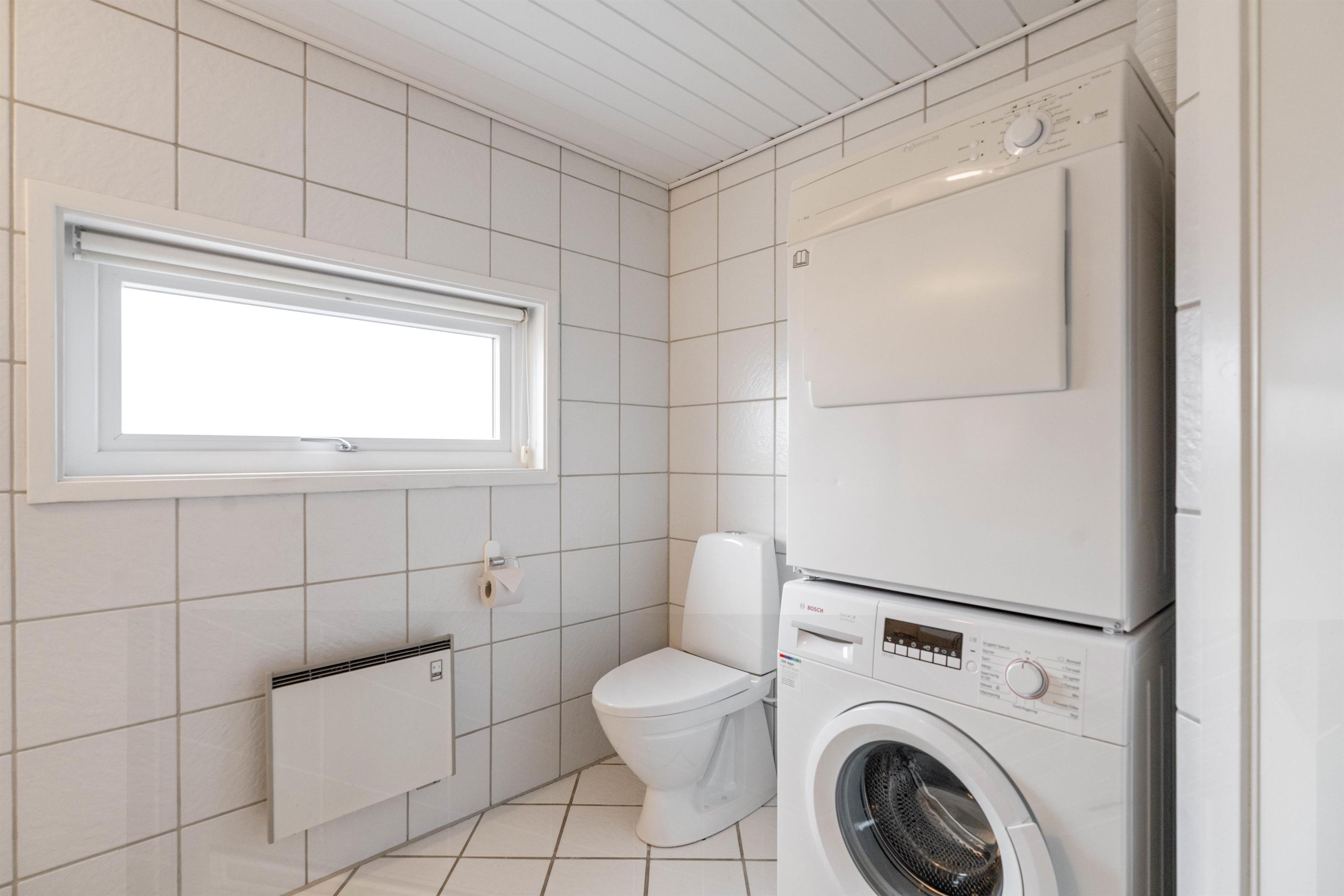 Feriehuset er udstyret med moderne faciliteter, som vaskemaskine, tørretumbler og energibesparende varmepumpe.