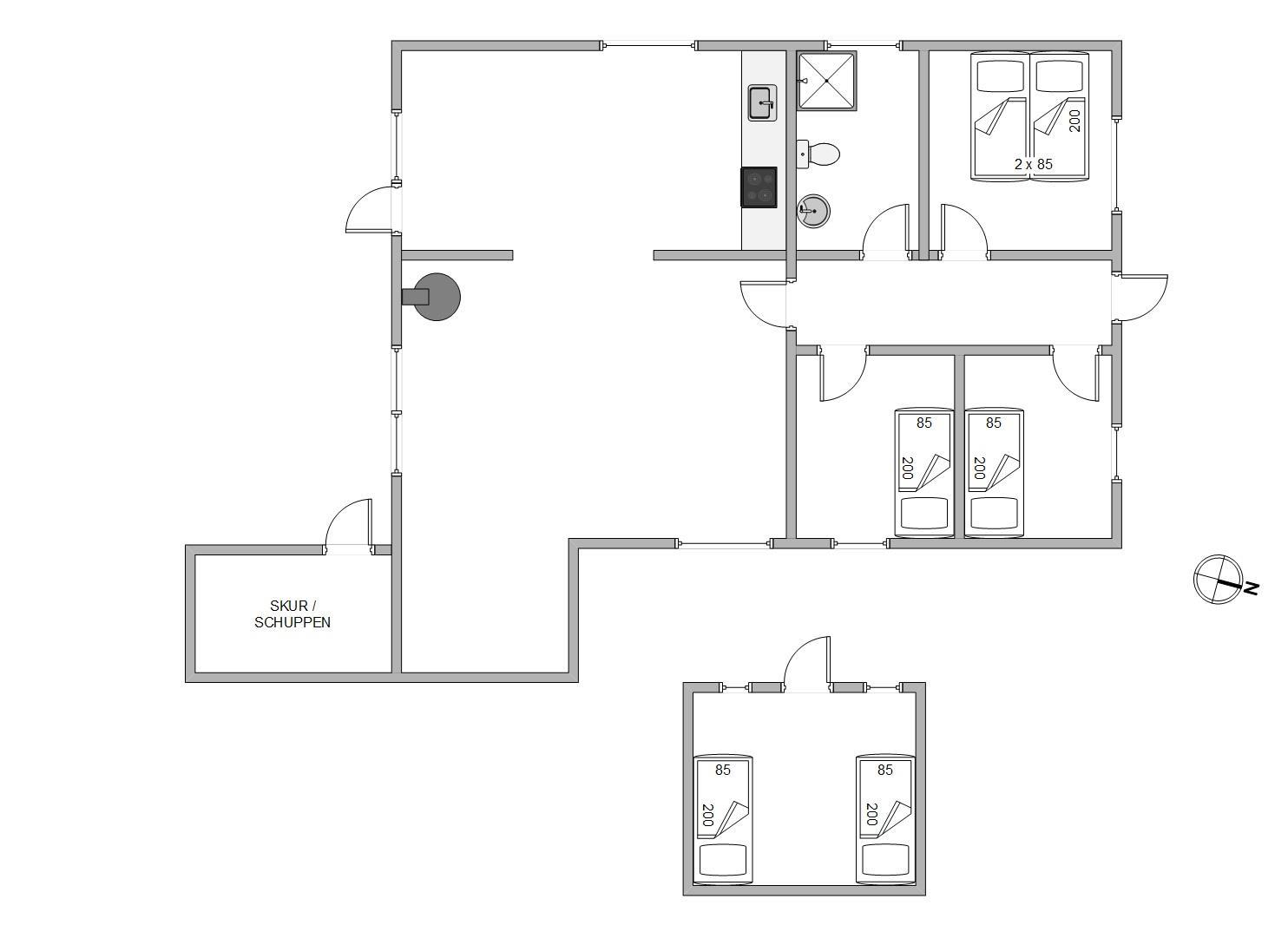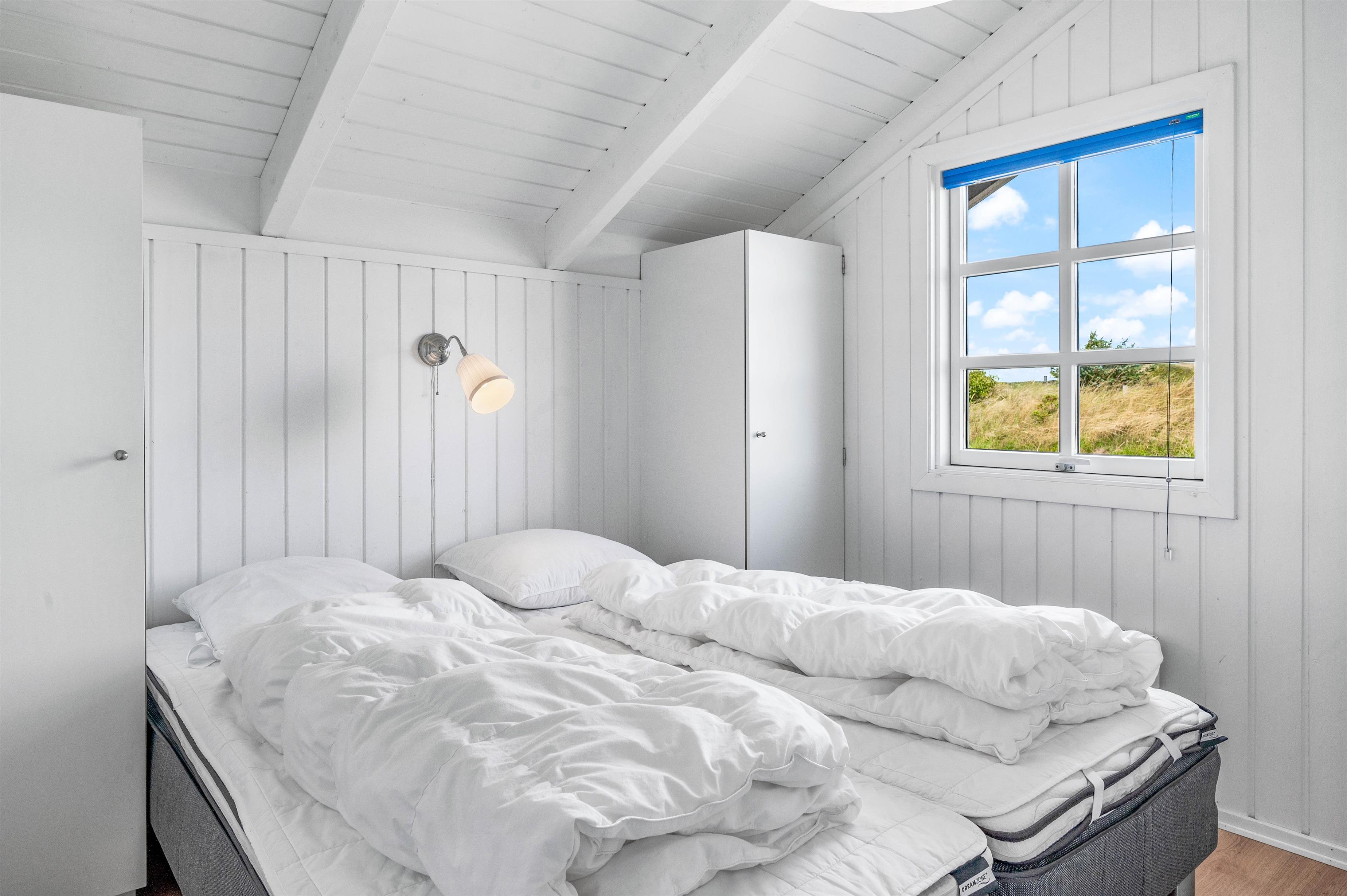 Sommerhuset har 3 soveværelser, 1 med dobbeltseng og 2 med enkeltsenge. Desuden er der et anneks med 2 enkeltsenge, så der er fin plads til, at 6 personer kan hvile godt ud i de komfortable senge. Har I teenagere med, vil de elske at bo i annekset.