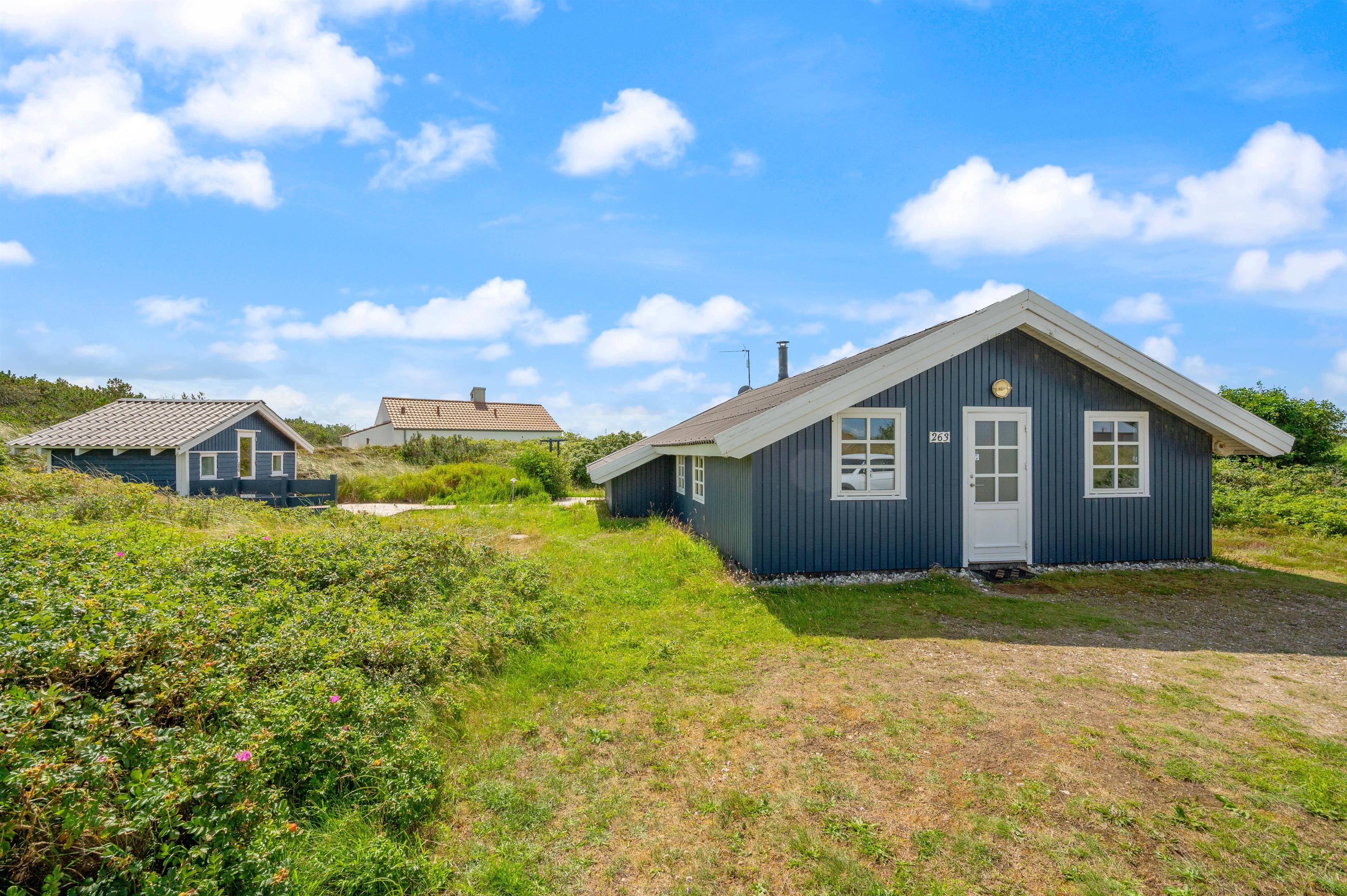 Det hyggelige sommerhus på Bjerregårdsvej 263 byder velkommen til 6 personer, ideelt til familien eller venner, som holder ferie sammen. Sommerhuset er fra 1980, og den lyse og venlige atmosfære opfordrer til at tilbringe timer sammen i spisekøkkenet eller stuen, eventuelt med ild i brændeovnen. Med kun 300 meter til stranden vil bruset fra Vesterhavet danne det lydmæssige baggrundstæppe til ferien. Du er velkommen til at tage hunden med, så I sammen kan nyde de skønne vandreture langs stranden.