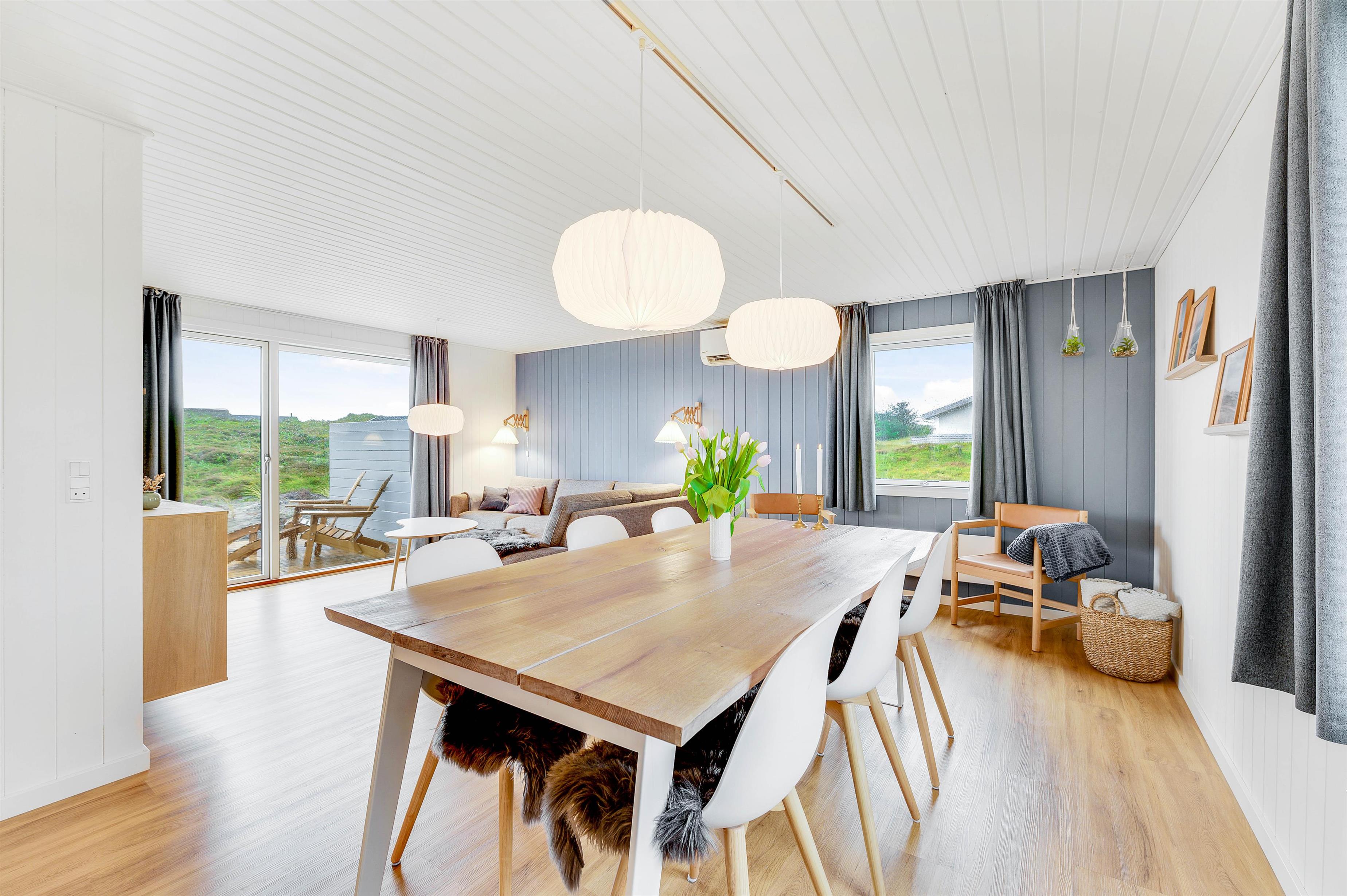Sommerhuset ligger kun 650 meter fra den smukke, hvide sandstrand på den danske vestkyst. I området omkring Ringkøbing Fjord venter jer et væld af stisystemer, som fører jer rundt i det naturskønne område præget af hede- og klitlandskaber.