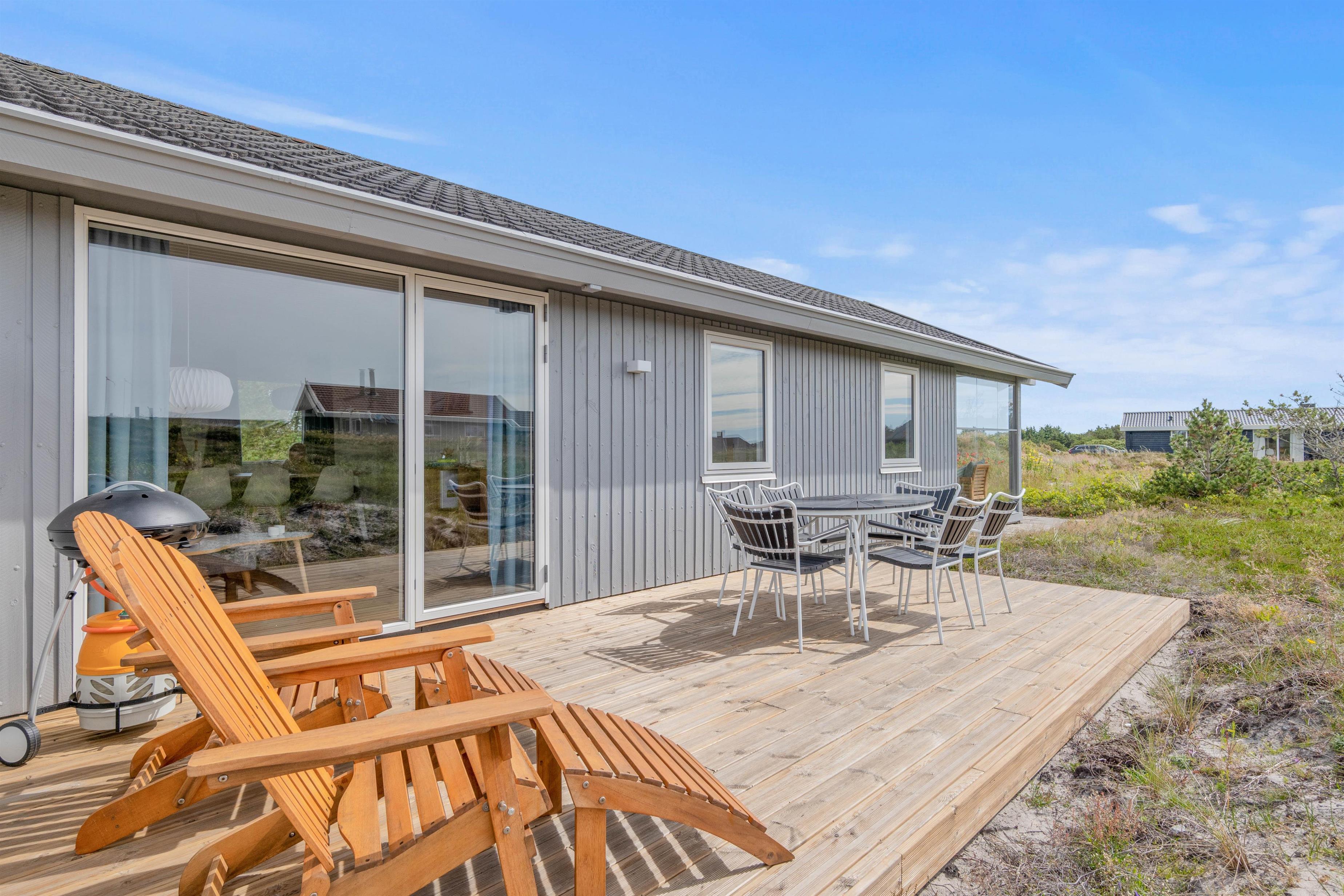 På det udendørs område ved det hyggelige sommerhus indbyder grillen og de komfortable havemøbler til en afslappet grillaften, mens solen går ned bag klitterne og afslutter den begivenhedsrige dag. Terrassen er delvist afskærmet, så I kan sidde i læ for vinden.