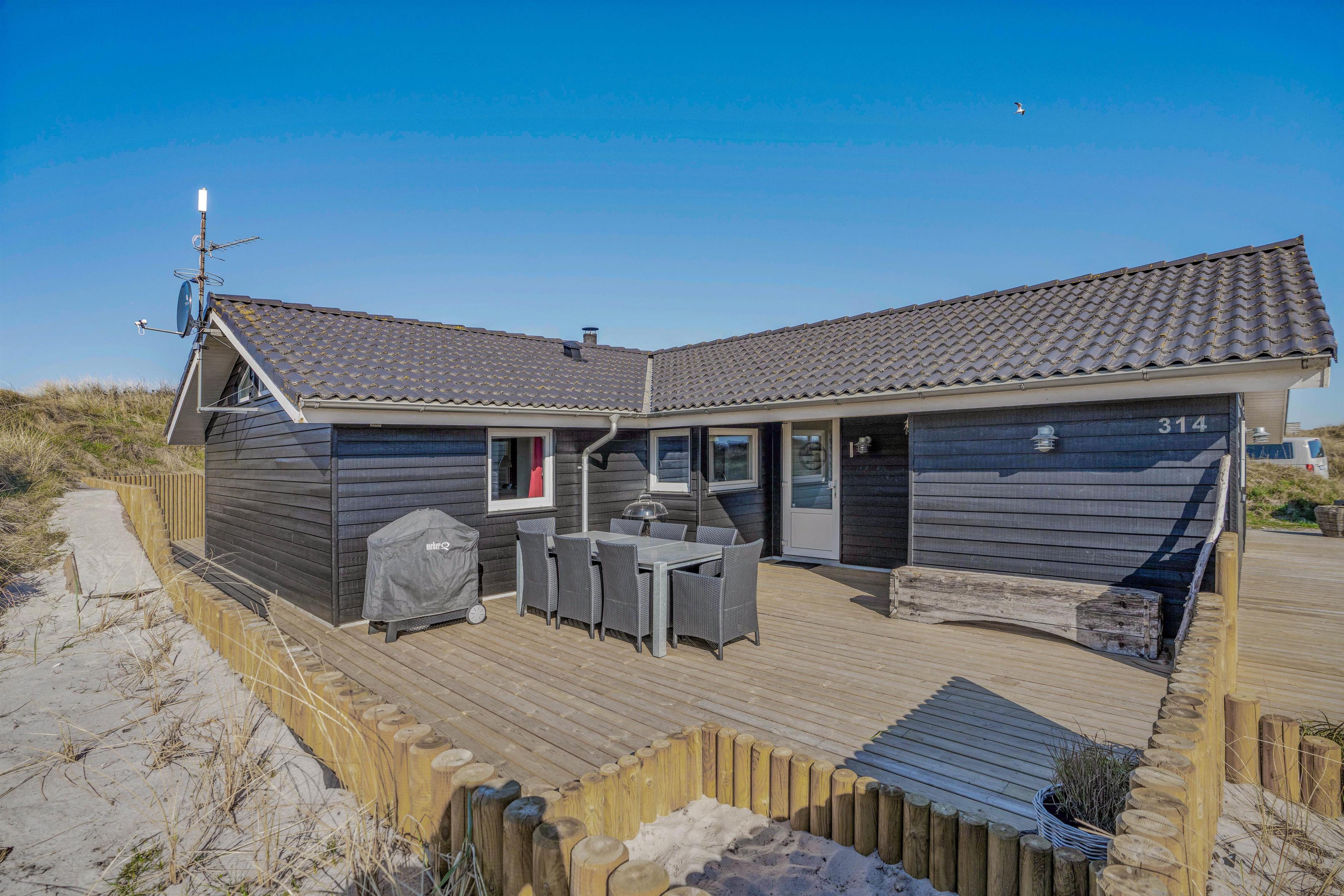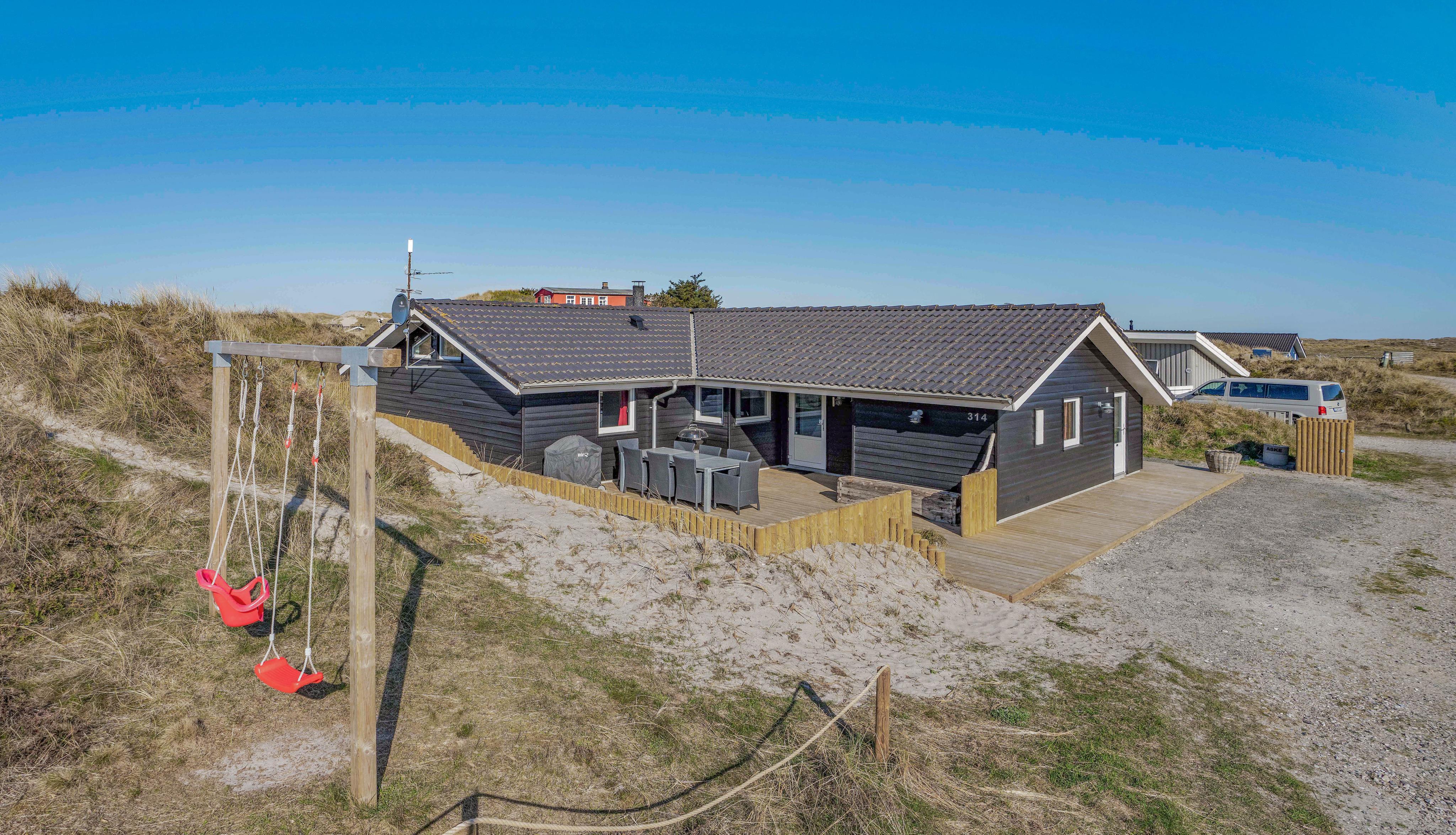 Hvis du ikke allerede er kommet i feriestemning på køreturen gennem det vidtspændende vestjyske klitlandskab, så vil du helt sikkert komme det, når du træder indenfor på Bjerregårdsvej 314. Det klassiske træsommerhus til 8 personer byder på en lys og venlig indretning, der rummer stort set alt, hvad man kunne ønske sig på en afslappende sommerhusferie ved Vesterhavet. Du kan også tage hundene med på ferie her!