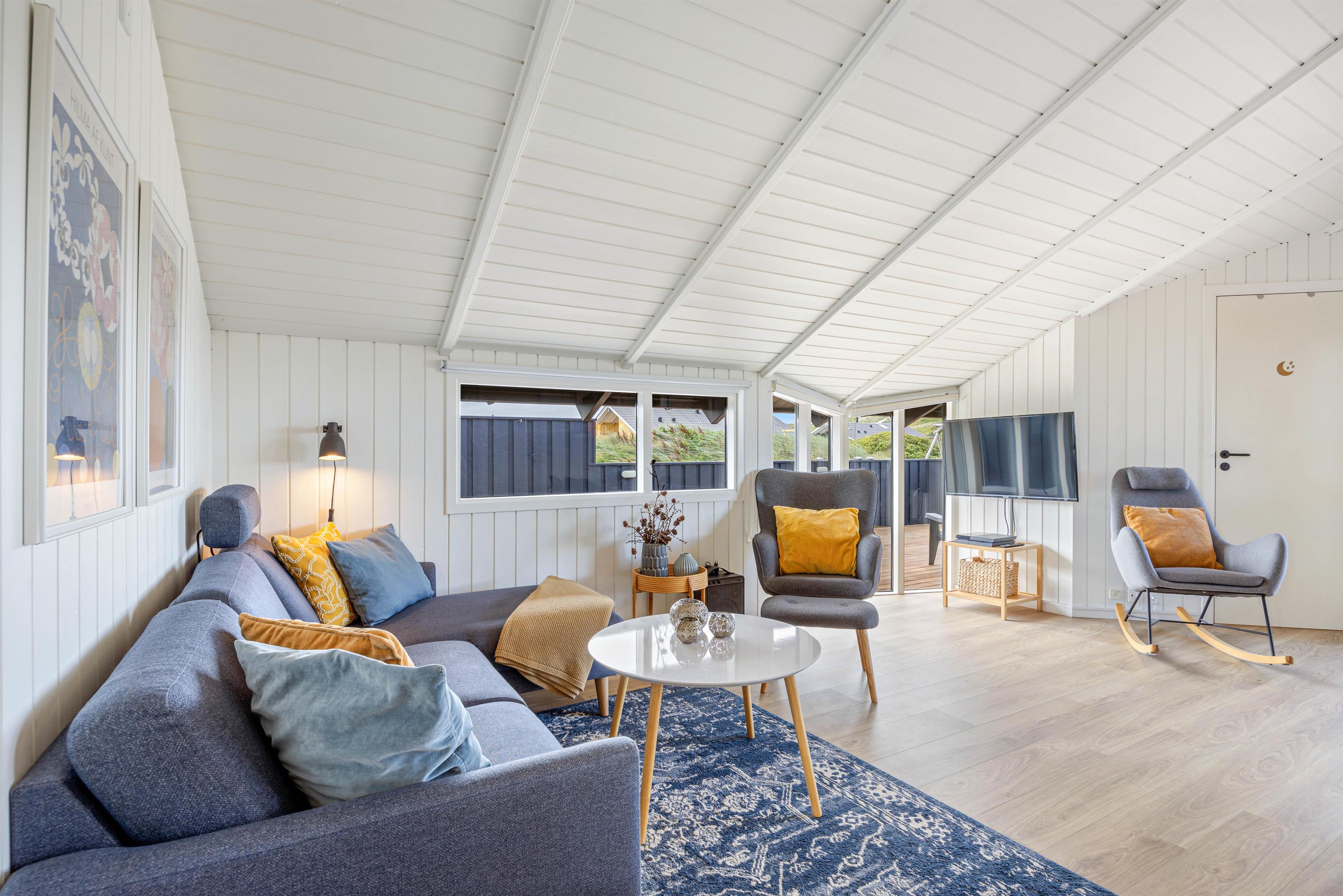 Hjerterummet her er nemlig stuen, hvorfra der er åbnet op ind til køkkenet. Her kan I tilbringe mange timer sammen og sammen hver for sig, mens nogen tilbereder et lækkert måltid i køkkenet, der bliver spillet brætspil og en tredje læser sin yndlingsbog med benene på sofaen. I den bløde sofa kan I sætte jer godt til rette med den gode bog, film eller spille det sjoveste spil på sommerhusets Play Station 4 – det er ferie!