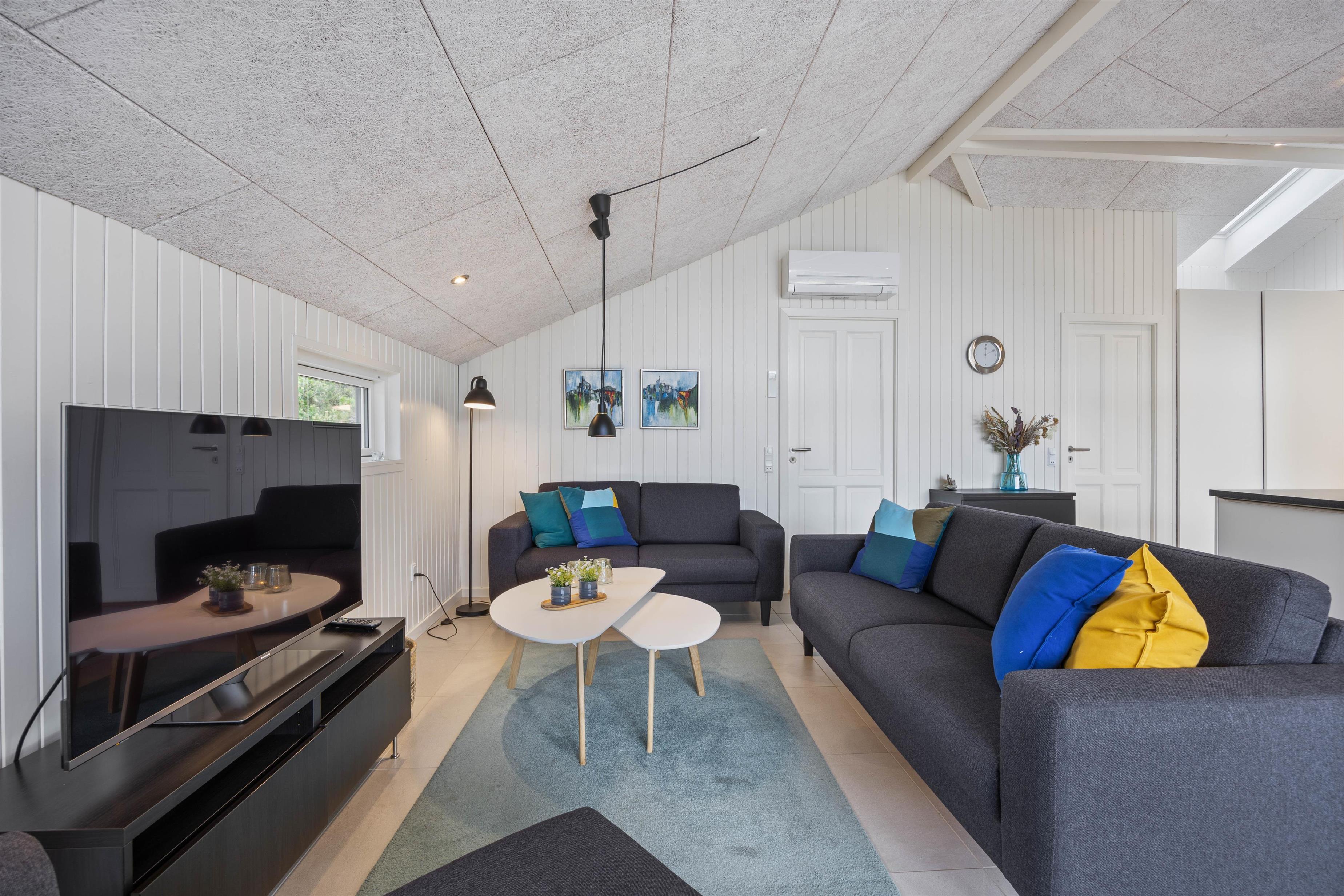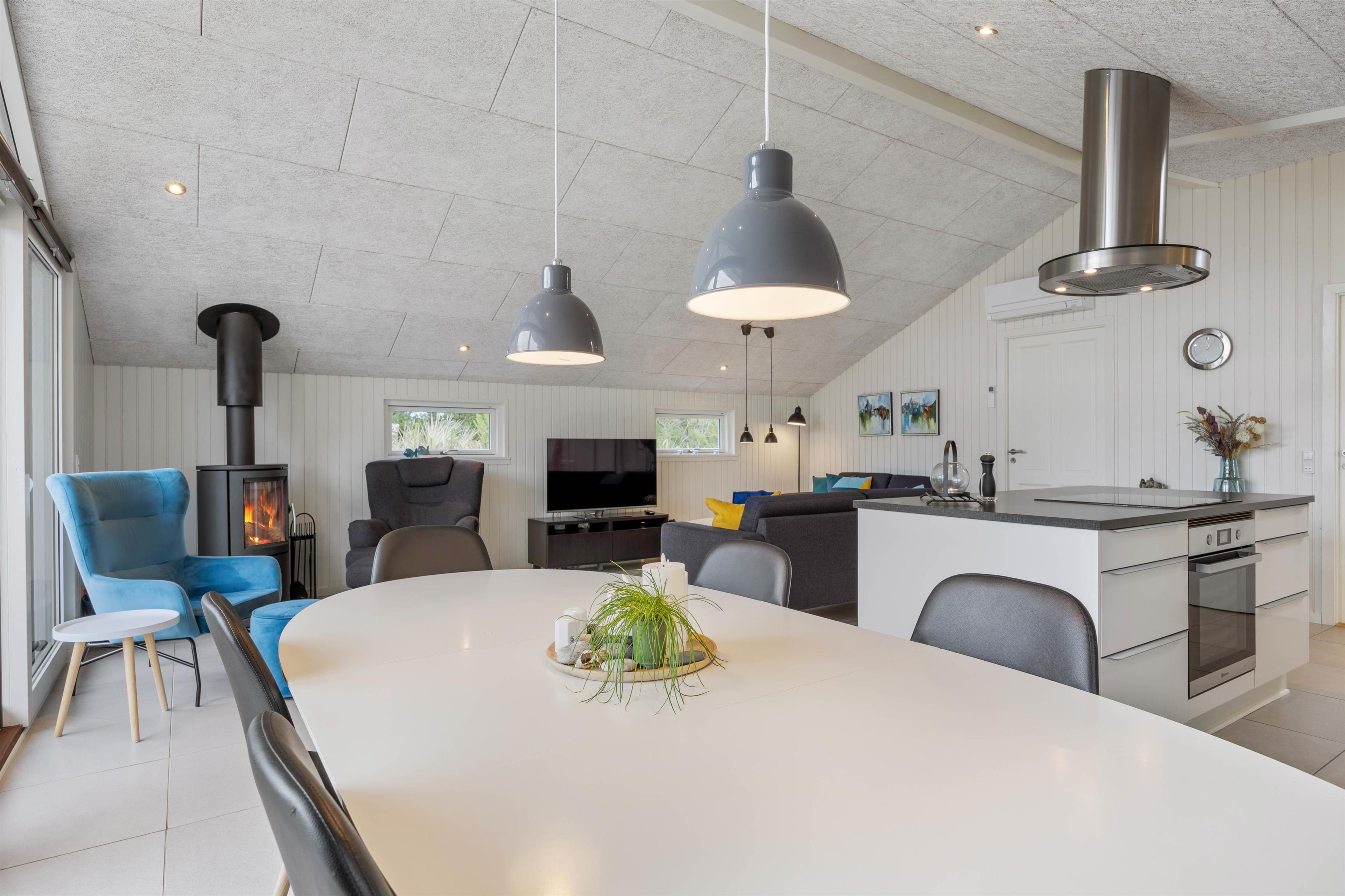 Det er nemt at se, at feriehuset på Kirksvej 20 er renoveret i 2019, og den moderne indretning er præget af lyse og åbne omgivelser, som gør huset rummeligt og skaber en imødekommende ferieatmosfære.
