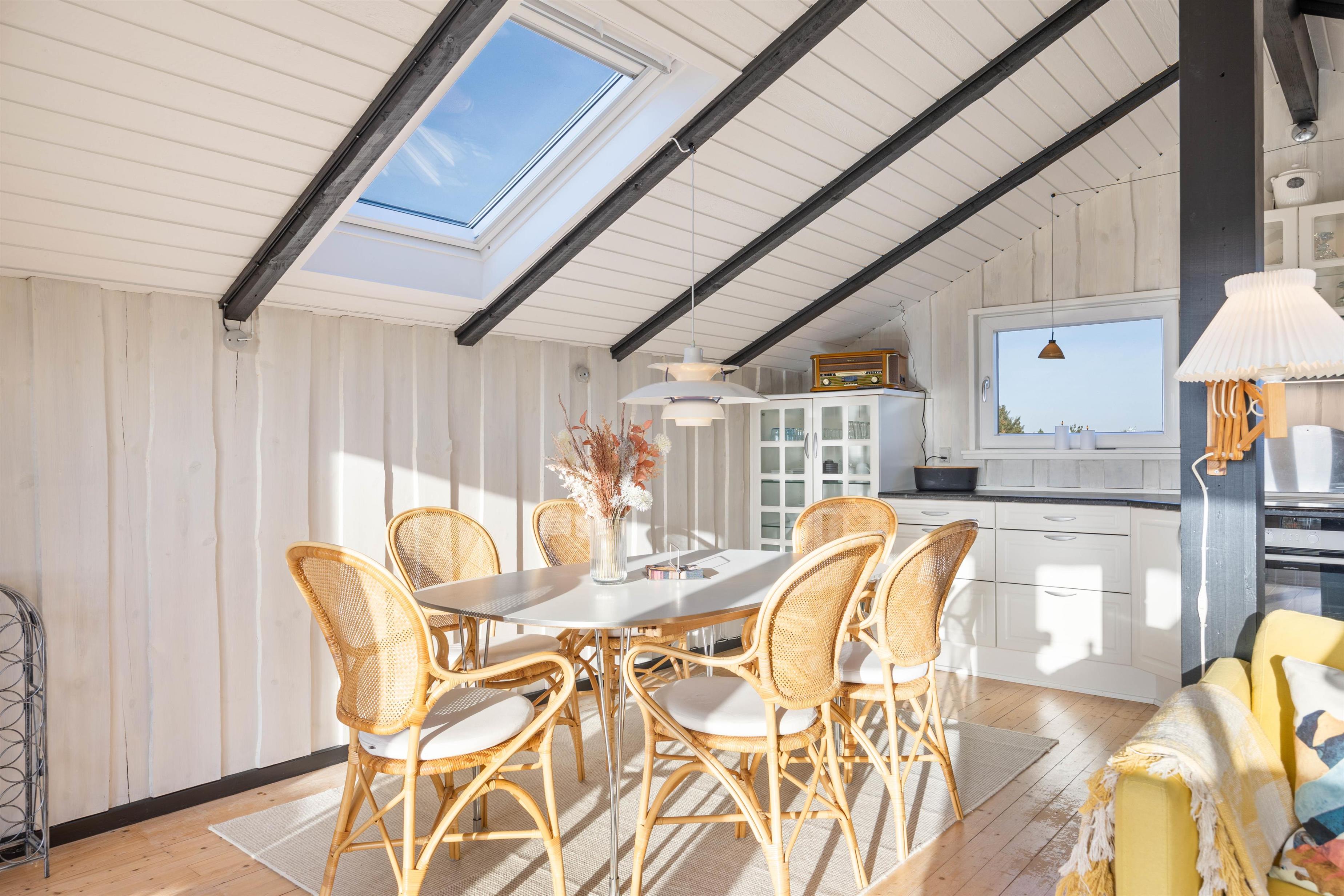 På Bilbergsvej 65 finder I dette fantastiske sommerhus, der emmer af feriestemning. De smukke klassiske træbeklædte vægge og loftbjælker skaber en hyggelig atmosfære sammen med de komfortable møbler. Her er god plads med feriehusets 103 m², der er praktisk fordelt. Et funktionelt sommerhus, hvor der er rart at være.