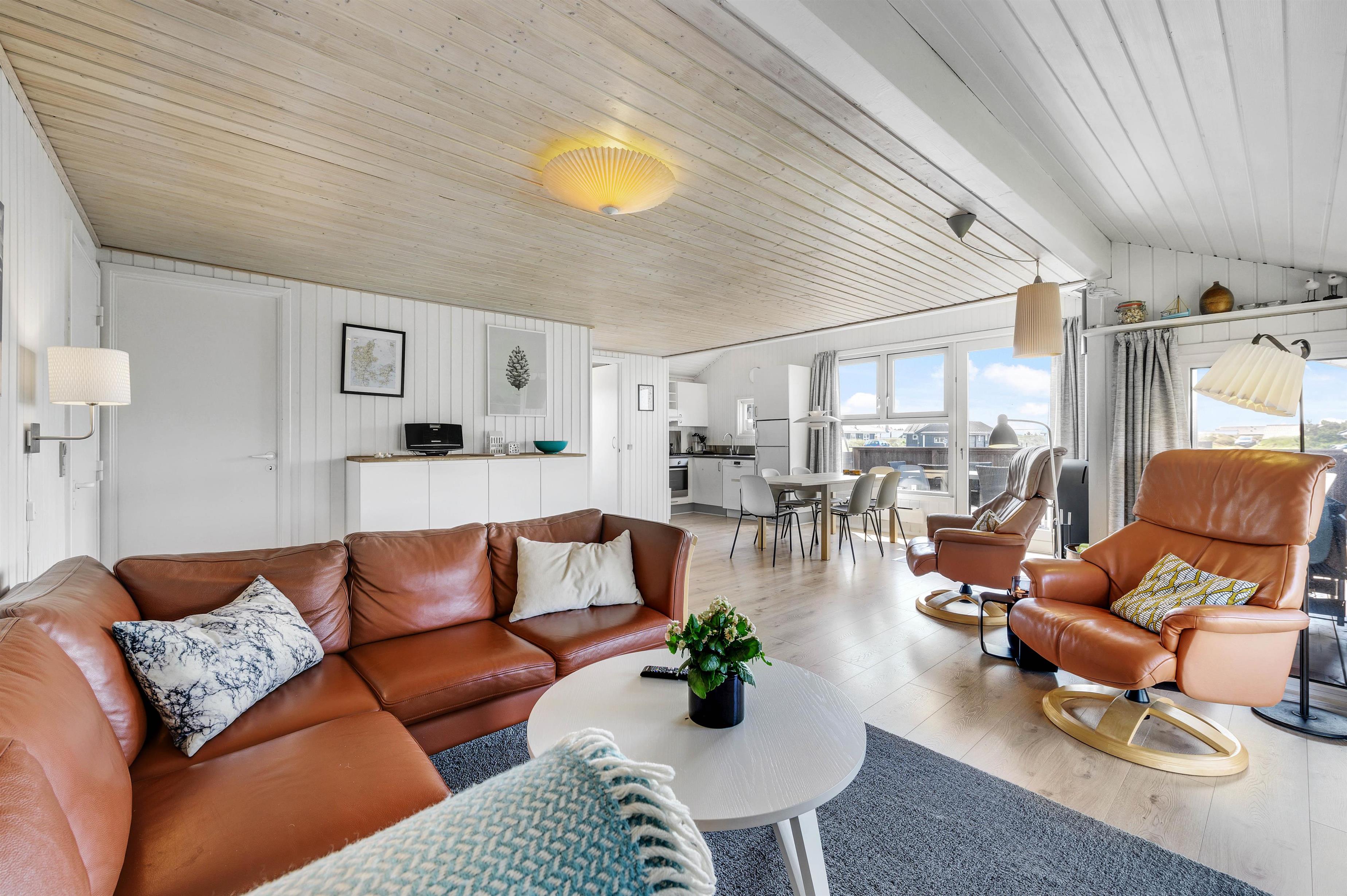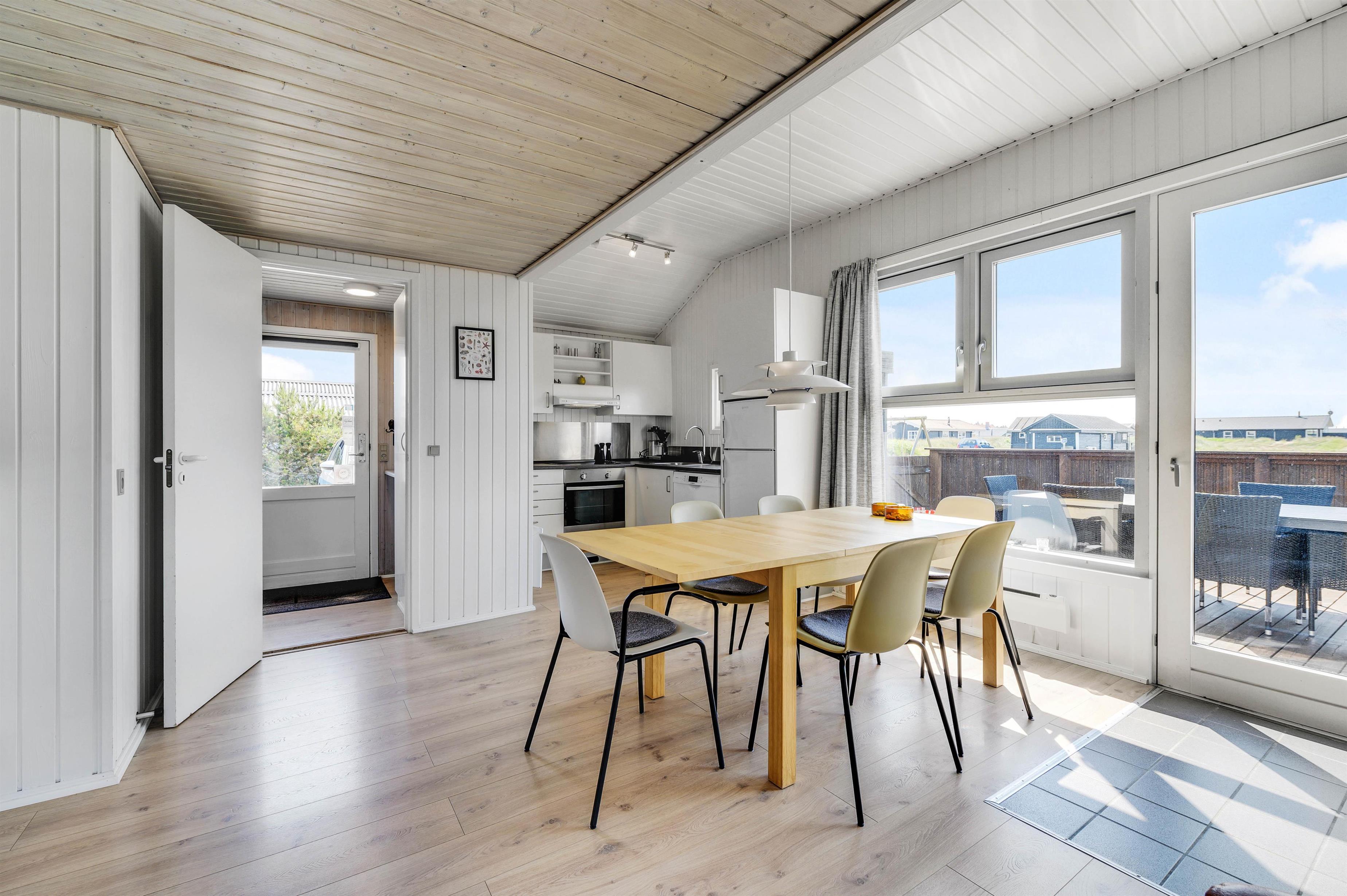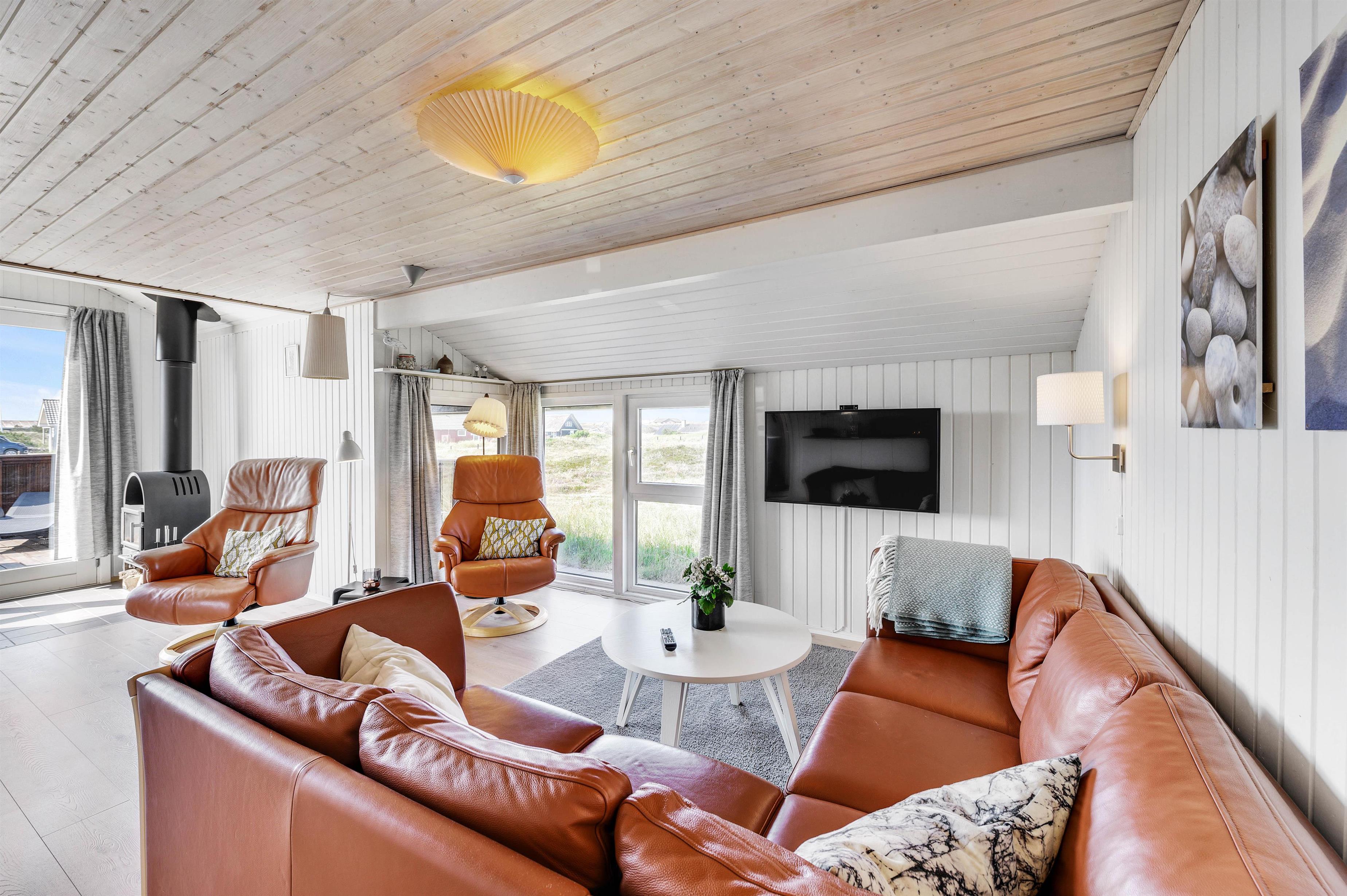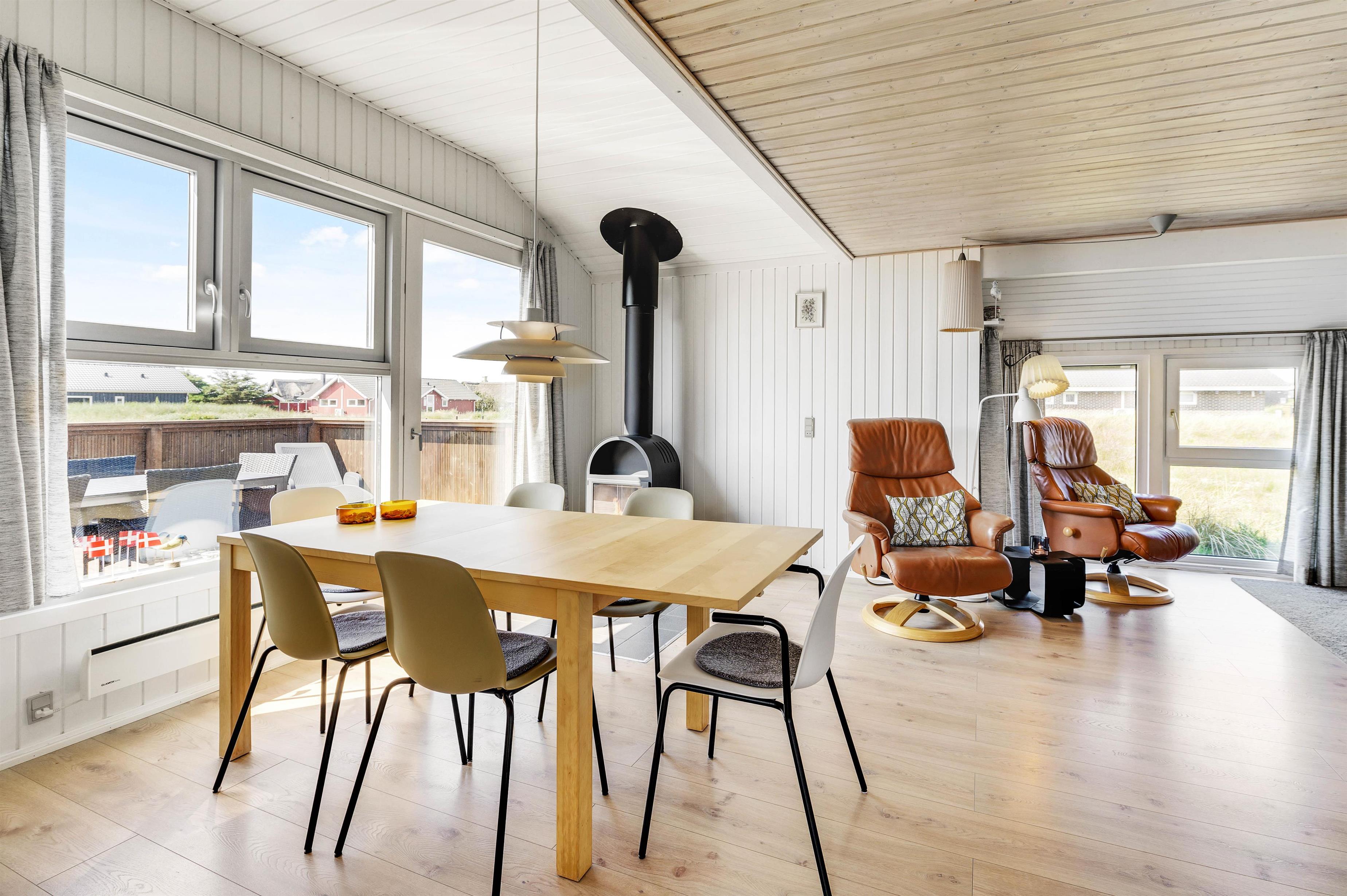 De store vinduespartier skaber et rigtig godt lysindfald, og indretningen er moderne. Dermed fremstår sommerhuset lyst og indbydende, og I vil hurtigt føle jer hjemme. Fra sommerhuset er der også en fantastisk udsigt over det smukke klitlandskab.