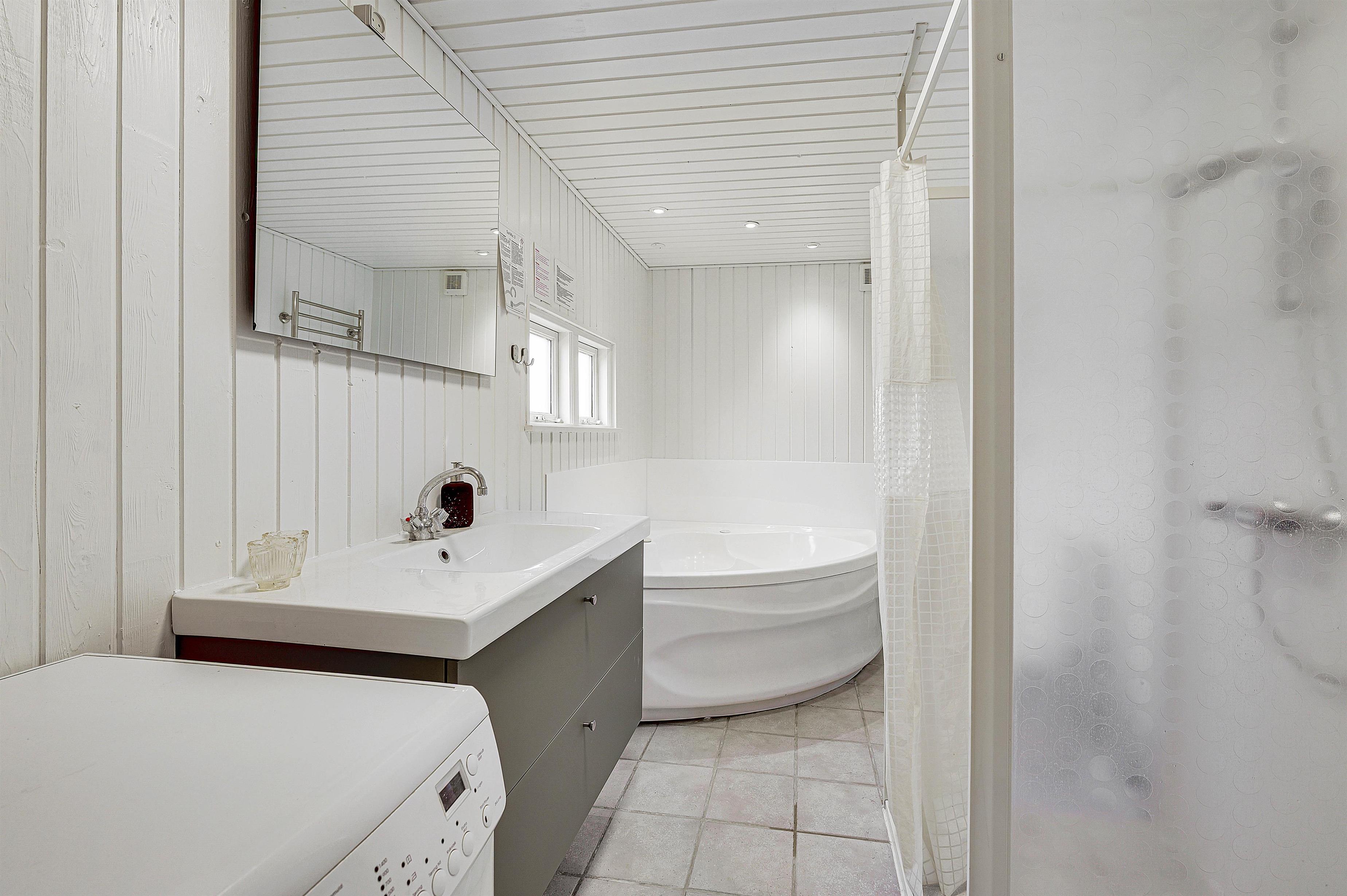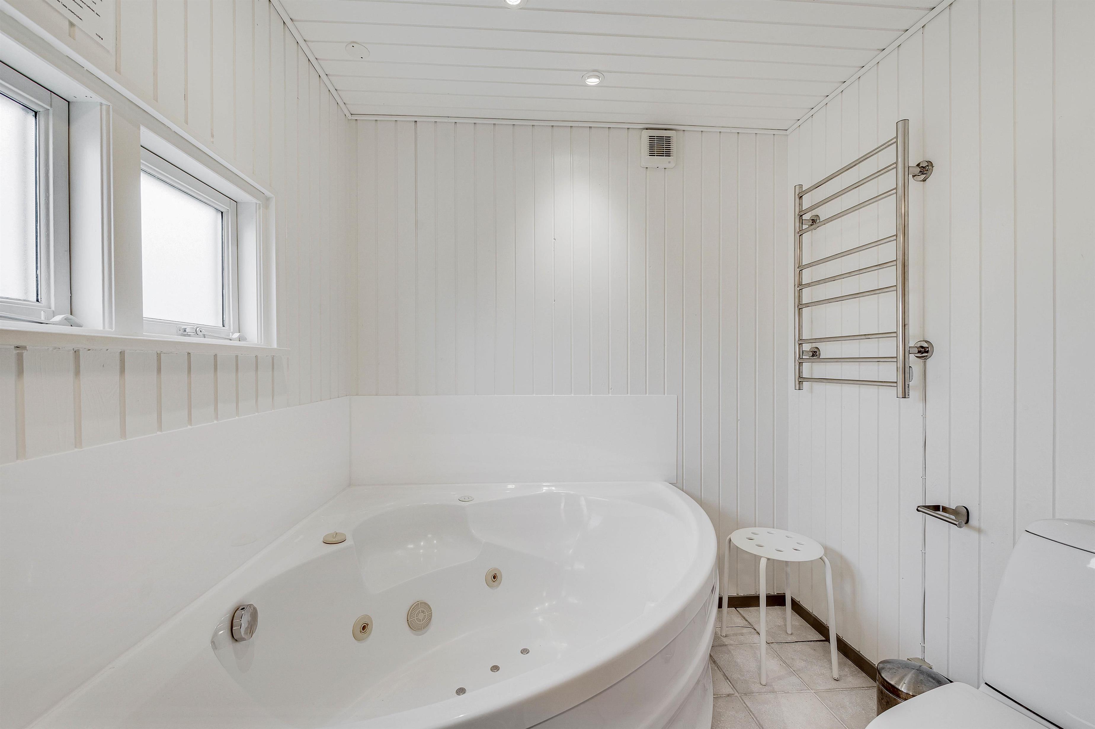 Efter en lang gåtur på stranden kan I afslutte dagen med hygge og velvære i sommerhusets spa. På badeværelset er der desuden gulvvarme.