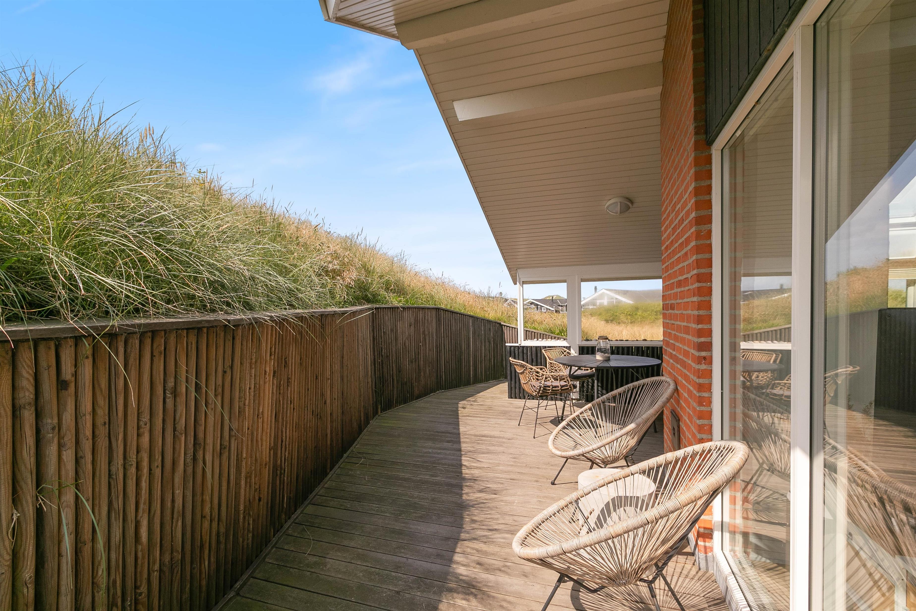 Sommerhuset på Bjerregårdsvej er beliggende på en stor naturgrund og omringet af marehalm, som er Vestkystens kendetegn. Der er en rigtig god lukket terrasse til huset, der strækker sig fra øst over syd og slutter mod vest. Den er derfor særdeles velegnet dagen lang. Mod vest er terrassen delvist overdækket og delvist afskærmet, hvilket gør den ideel til hyggelige grillaftener. Hele terrassen er perfekt for familier med børn eller hund. På naturgrunden uden for terrassen er der en dejlig sandkasse til de yngste feriegæster, så de også kan bruge en masse energi i naturen.