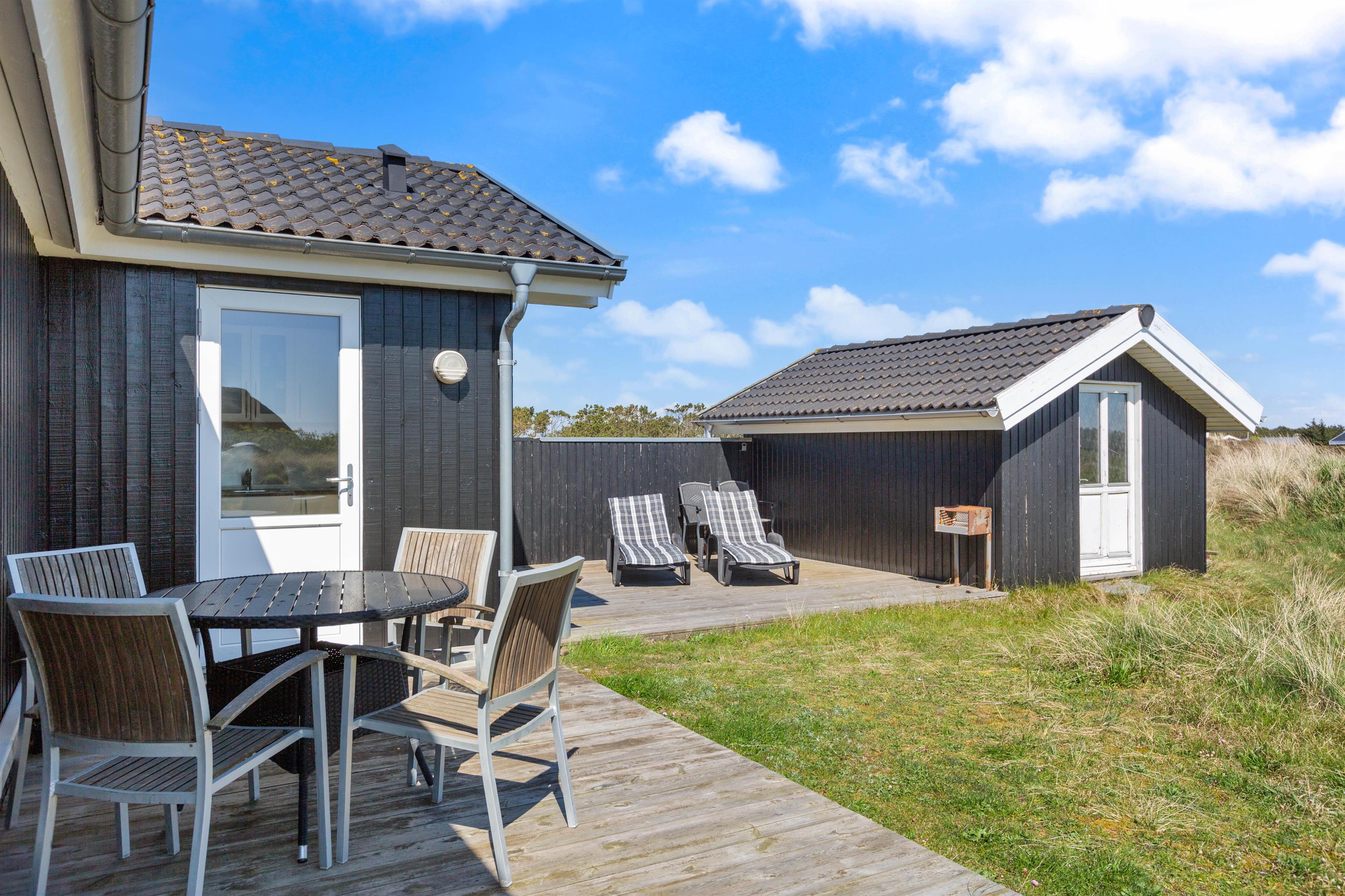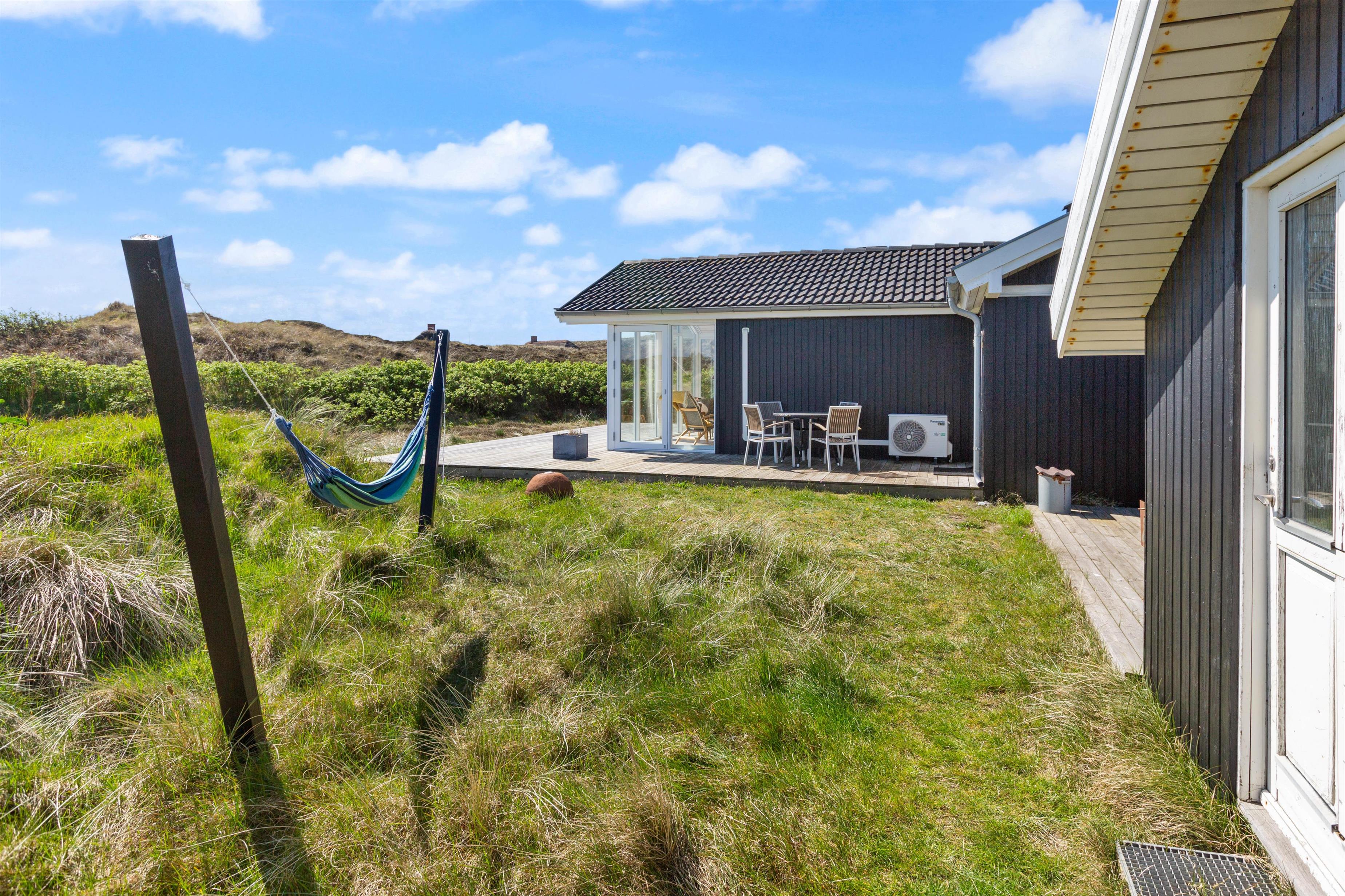 Fra terrassen kan I næsten høre bølgernes brusen, og den brede sandstrand ligger blot 450 meter væk. Stranden er et paradis for både store, små og hunde - og mon ikke, der bliver tid til et strandbesøg eller to i løbet af ferien?