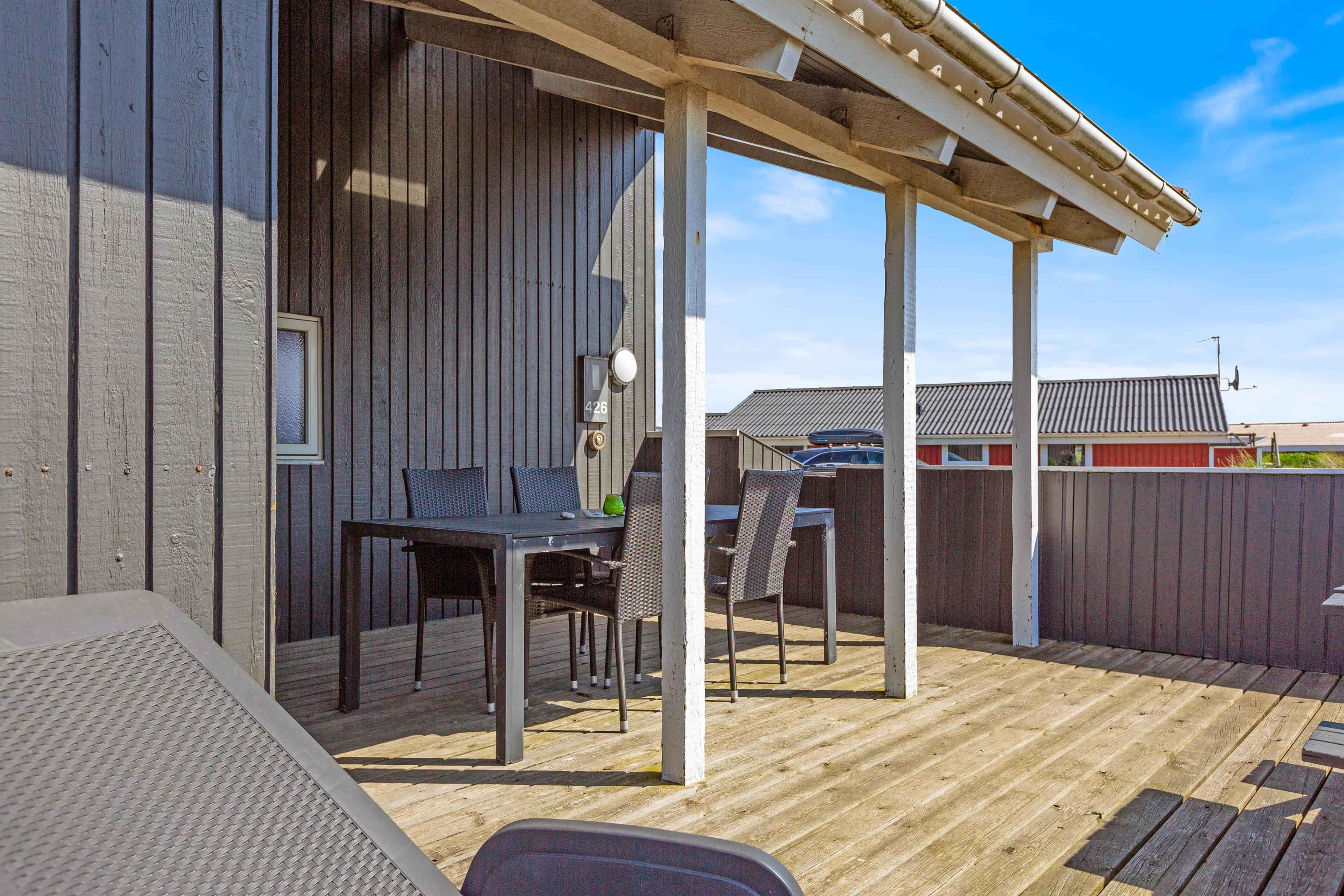 Det 99 kvadratmeter store feriehus på Bjerregårdsvej 426 med perfekt beliggenhed byder rammerne til en afslappende familieferie evt. med hund. På den lukkede terrasse kan I slappe af og samtidig holde øje med børnene, mens de gynger. Også på stranden små 250 meter herfra, kan I nyde mange gode time.