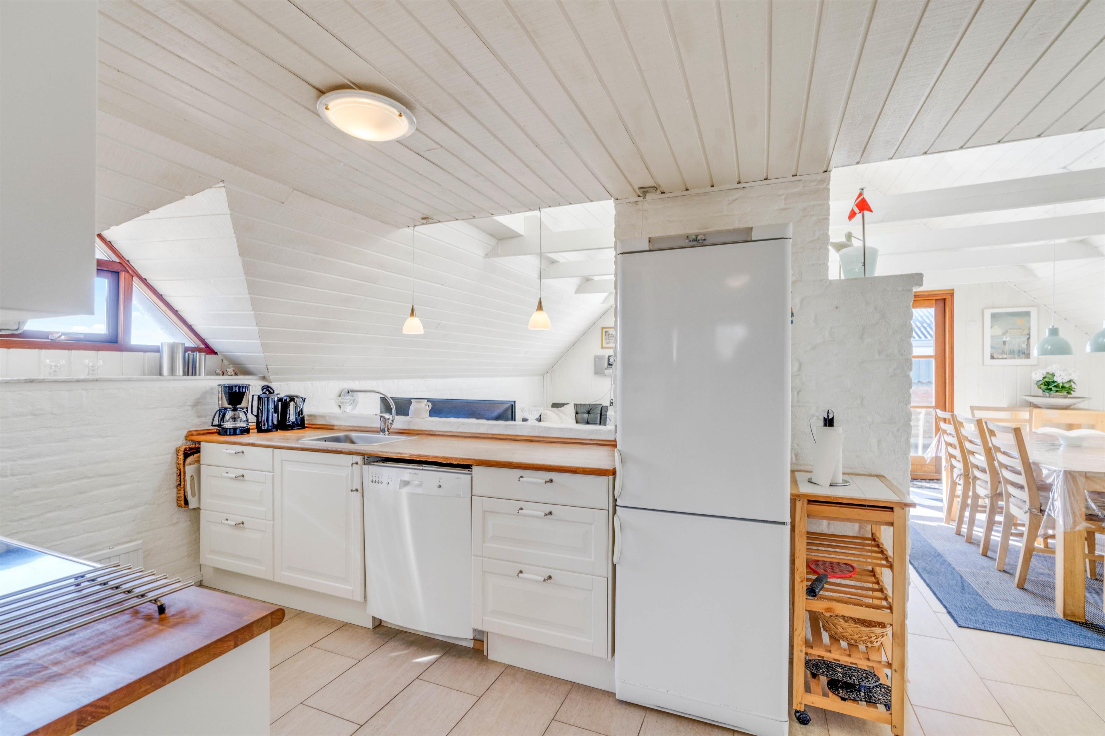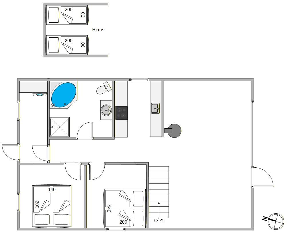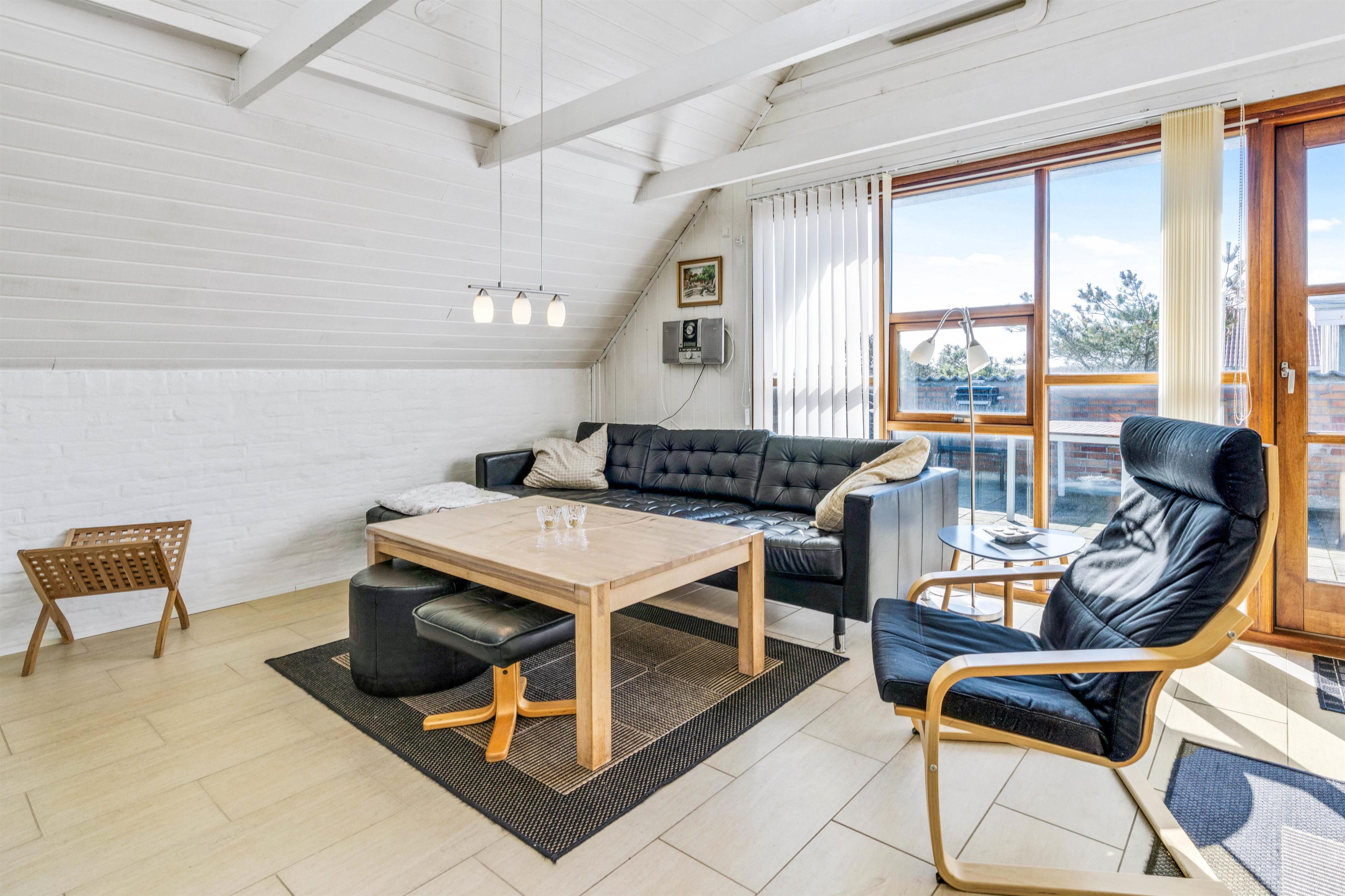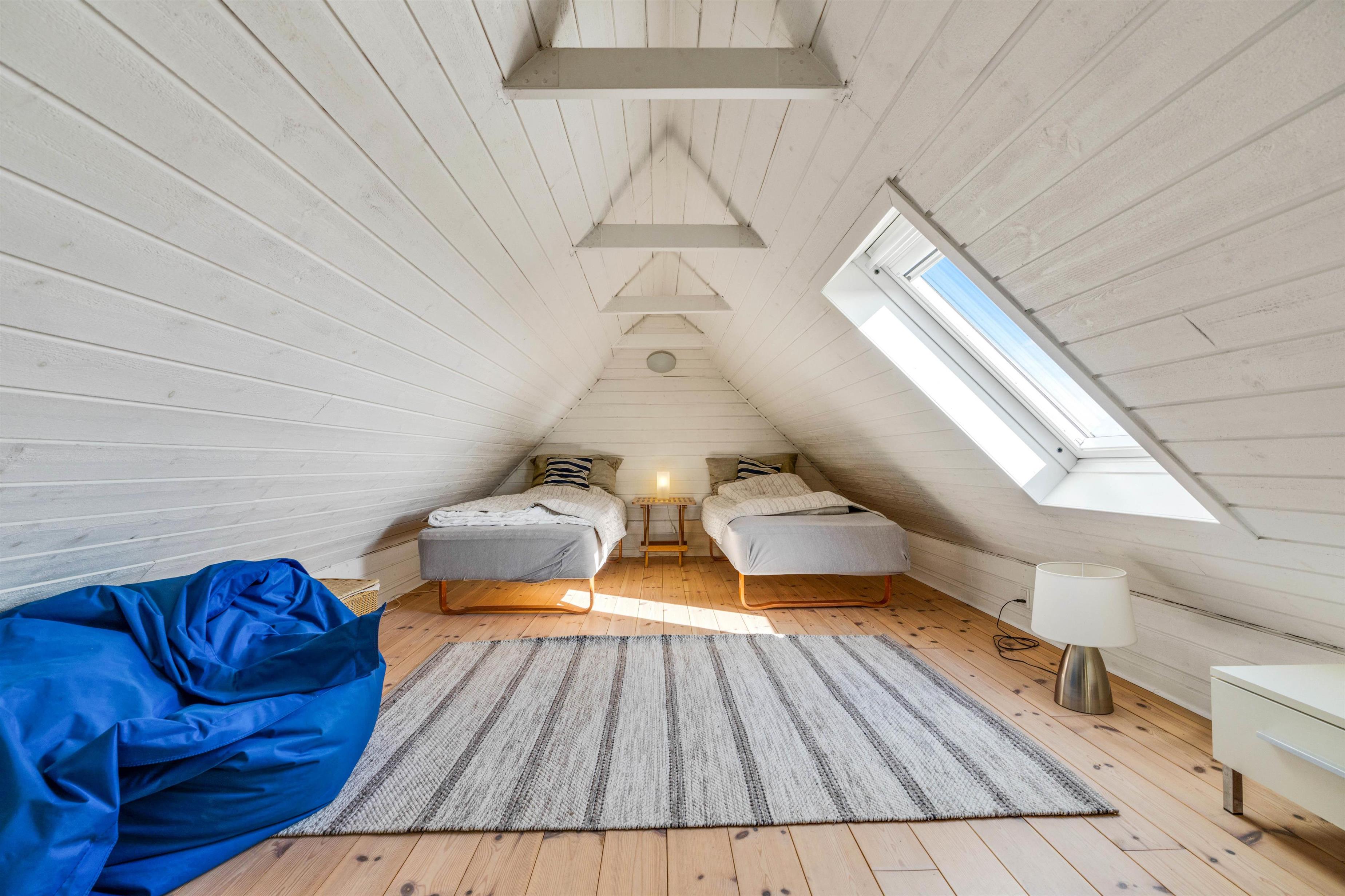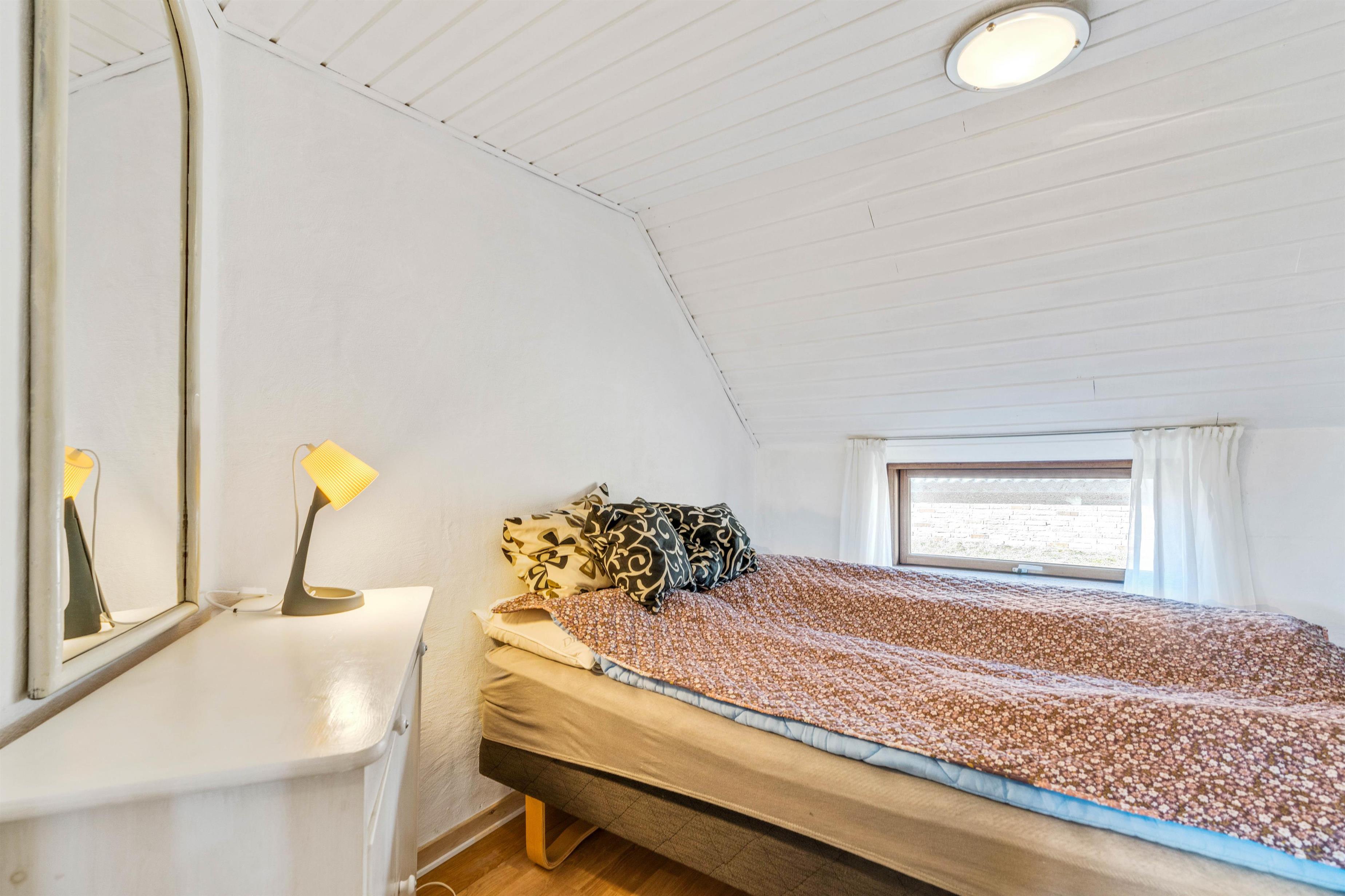 De 6 sovepladser i huset er fordelt på 2 soveværelser og en hems. Hemsen er ideel til de store børn, der gerne vil have muligheden for at kunne trække sig tilbage og få lidt privatliv. Hemsen er indrettet i den samme flotte og hyggelige stil som resten af huset, og fra vinduet har I den flotteste udsigt over Ringkøbing Fjord.