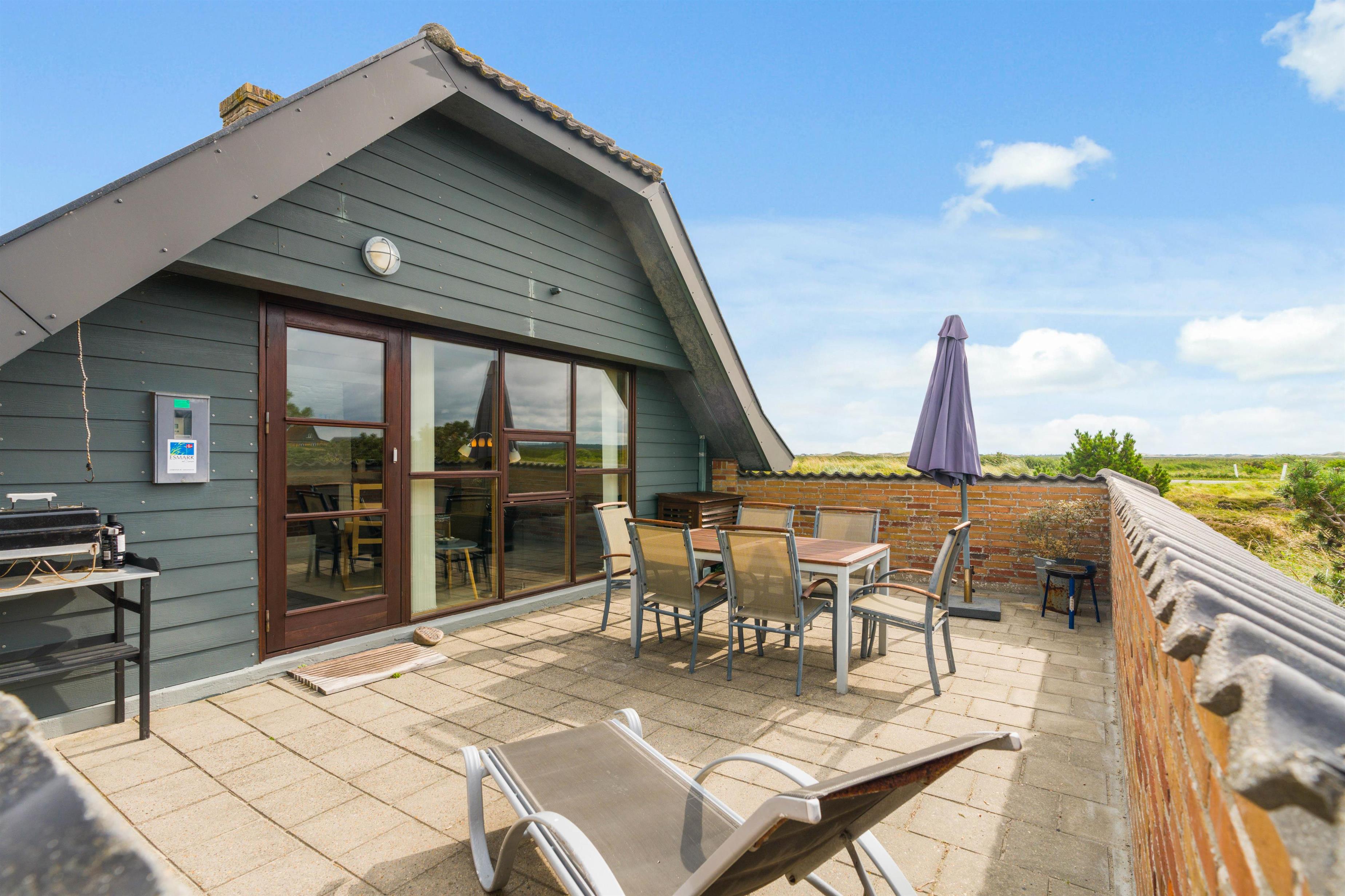 Det skønne sommerhus på Auroravej 10 ligger på en dejlig naturgrund med en indhegnet og afskærmet terrasse. Terrassen giver jer mulighed for at tilbringe mange dejlige timer udenfor, og I kan med fordel lade hundene løbe frit rundt, da den er hel tillukket. Fra terrassen og grunden har I en skøn udsigt over området, hvor I har frit udsyn helt til Ringkøbing Fjord.