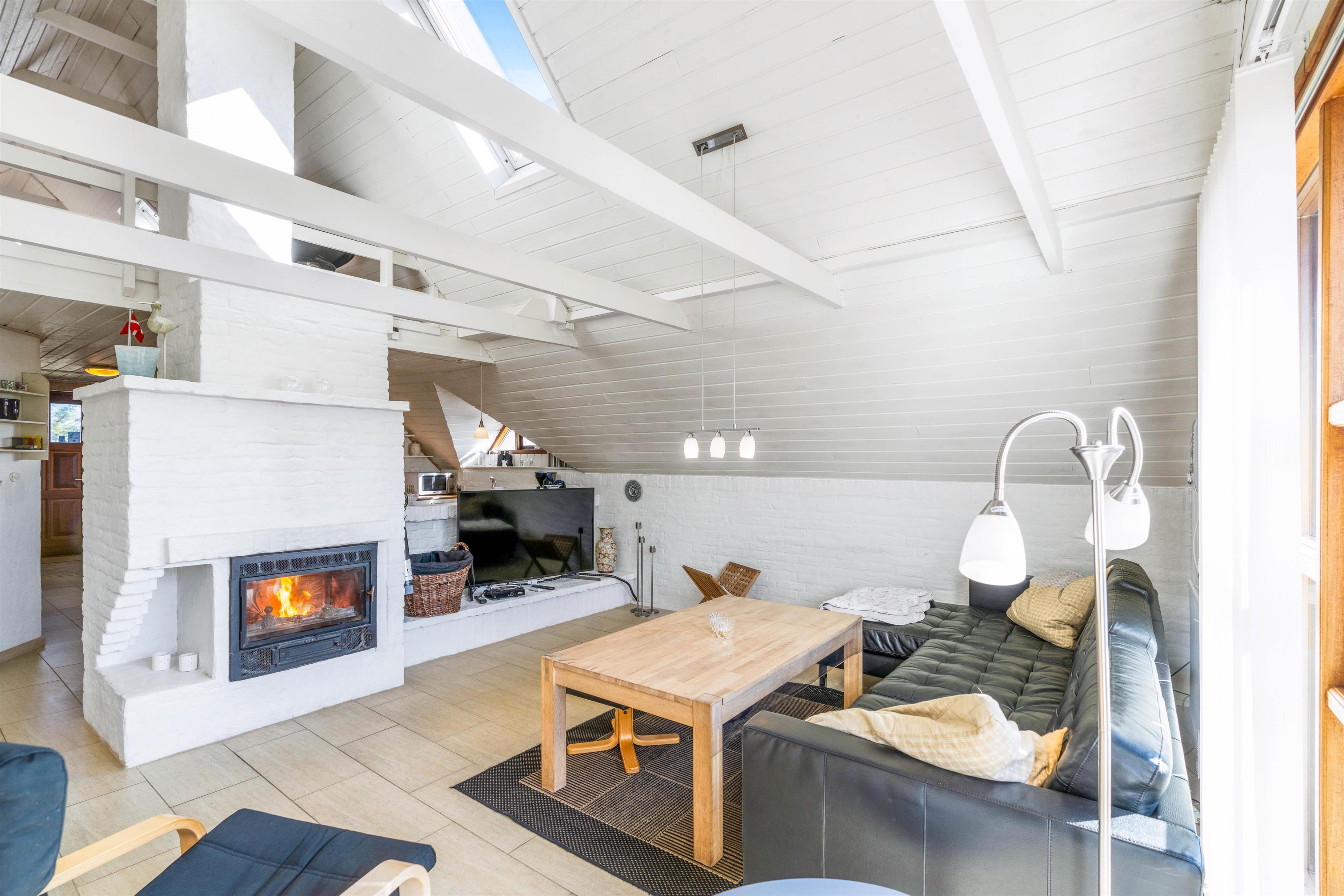 Pejsen er placeret centralt i opholdsrummet, der omslutter jer i sin varme og sikrer hyggelige timer. Den energibesparende varmepumpe kan tændes om nødvendigt for at sikre behagelige temperatur hele året rundt.