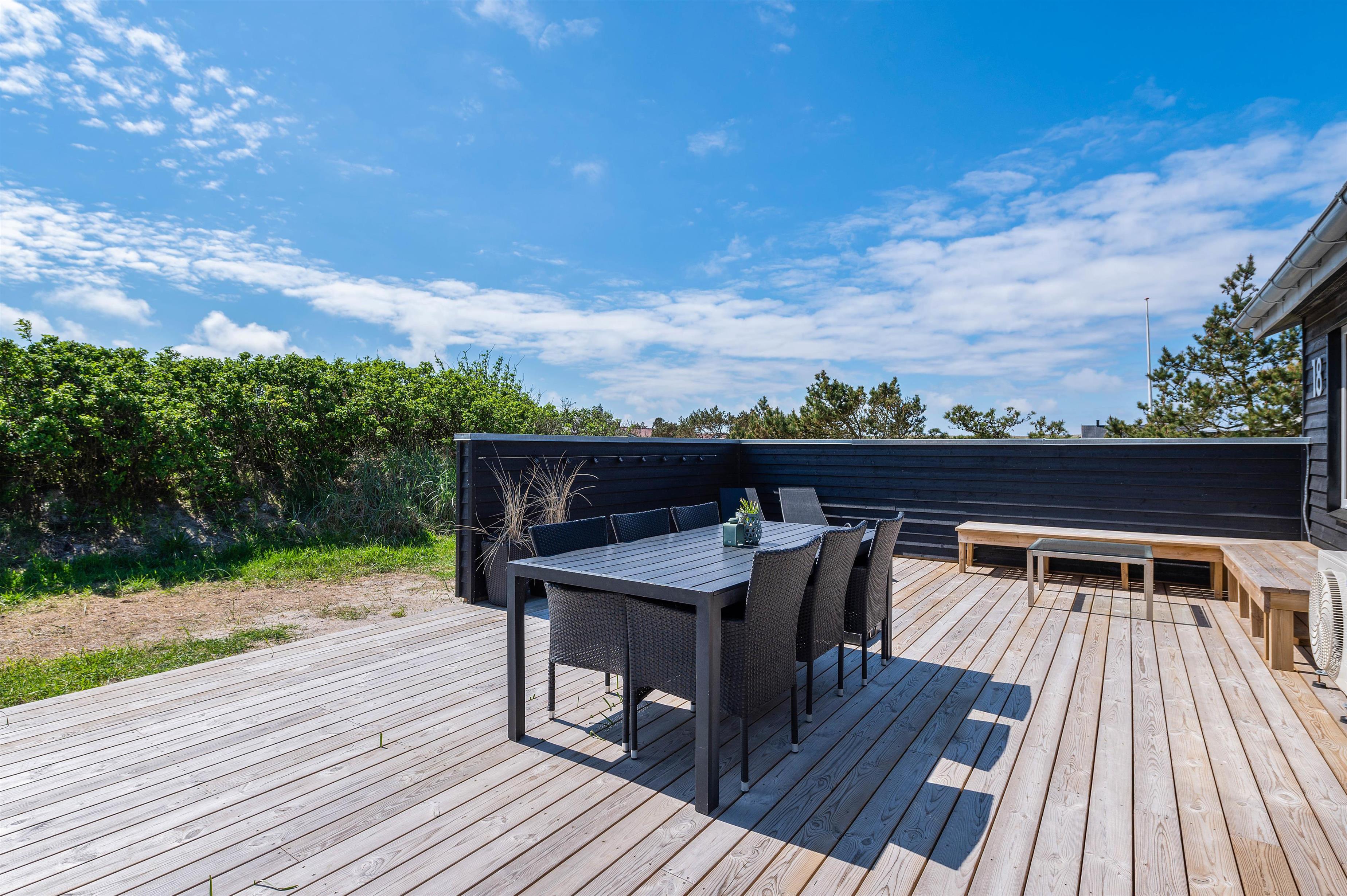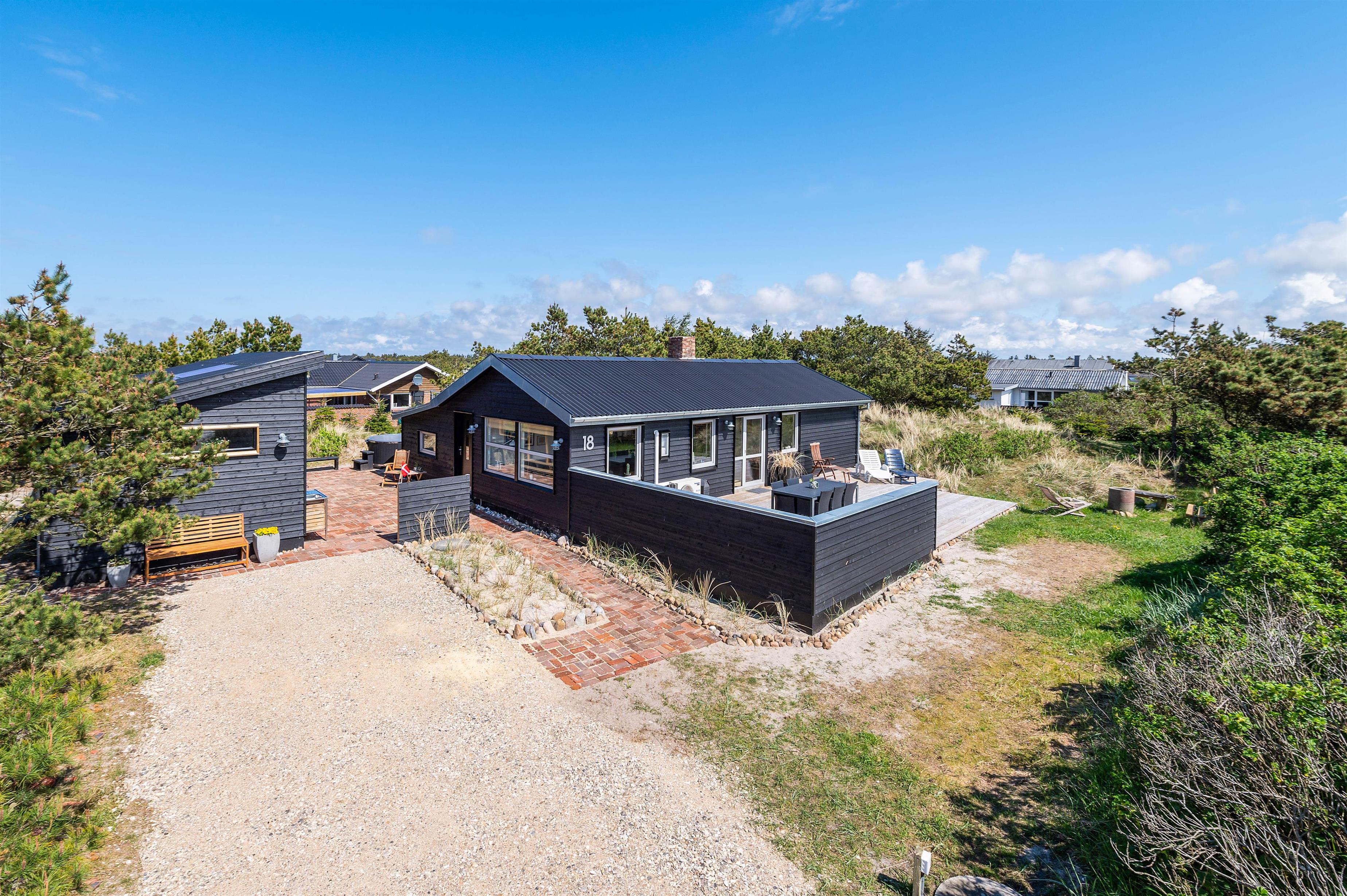 Dette hyggelige sommerhus på Rauhesvej 18 er et oplagt valg til jeres næste familieferie, hvis I ønsker en dejlig afslappende ferie i fantastiske omgivelser. Her er en skøn overdækket og afskærmet terrasse, som indbyder til mange hyggelige stunder med familien. Efter en god dag på stranden kan I hoppe en tur i vildmarksbadet, som er den perfekte afslutning på dagen. Har I hund, så er den også hjertelig velkommen i feriehuset.