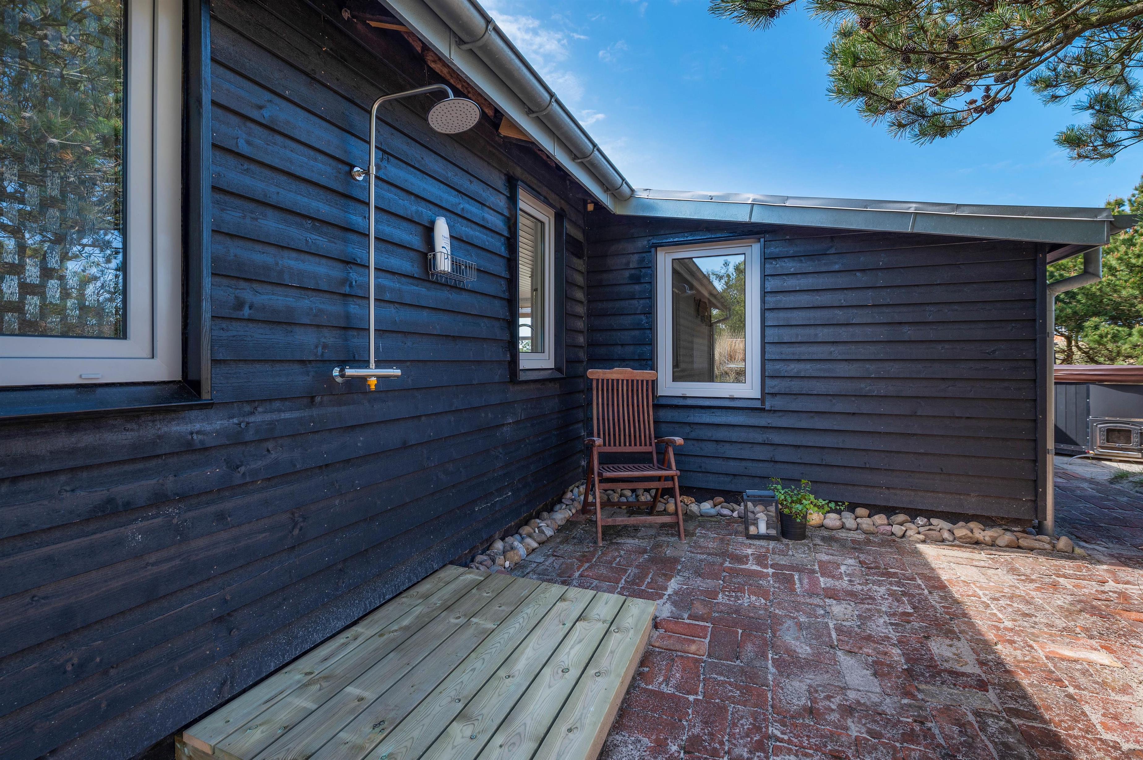 Hvis det danske sommervejr skulle blive for varmt, så har I mulighed for en kølig tur under den udendørs bruser (kan benyttes fra april til november). Til aften kan I tænde op for vildmarksbadet og nyde en afslappende stund med udsigt til den smukke stjernehimmel.