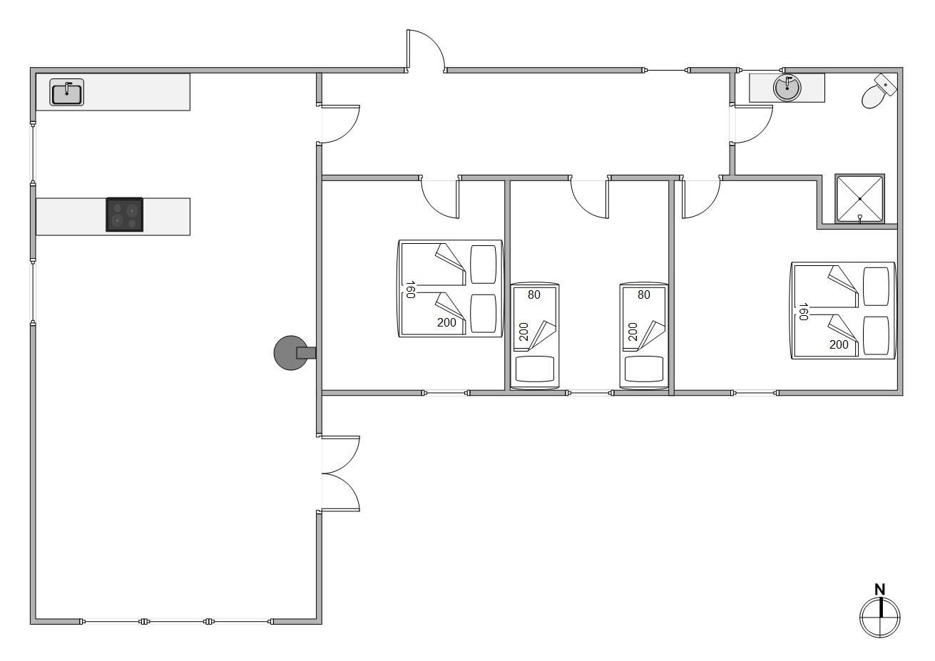 Det åbne køkken i forbindelse med stuen indeholder alt, hvad I behøver for at tilberede lækre måltider. Den praktiske indretning og forbindelsen til stuen gør, at I ikke behøver at afbryde det hyggelige samvær for at lave mad.