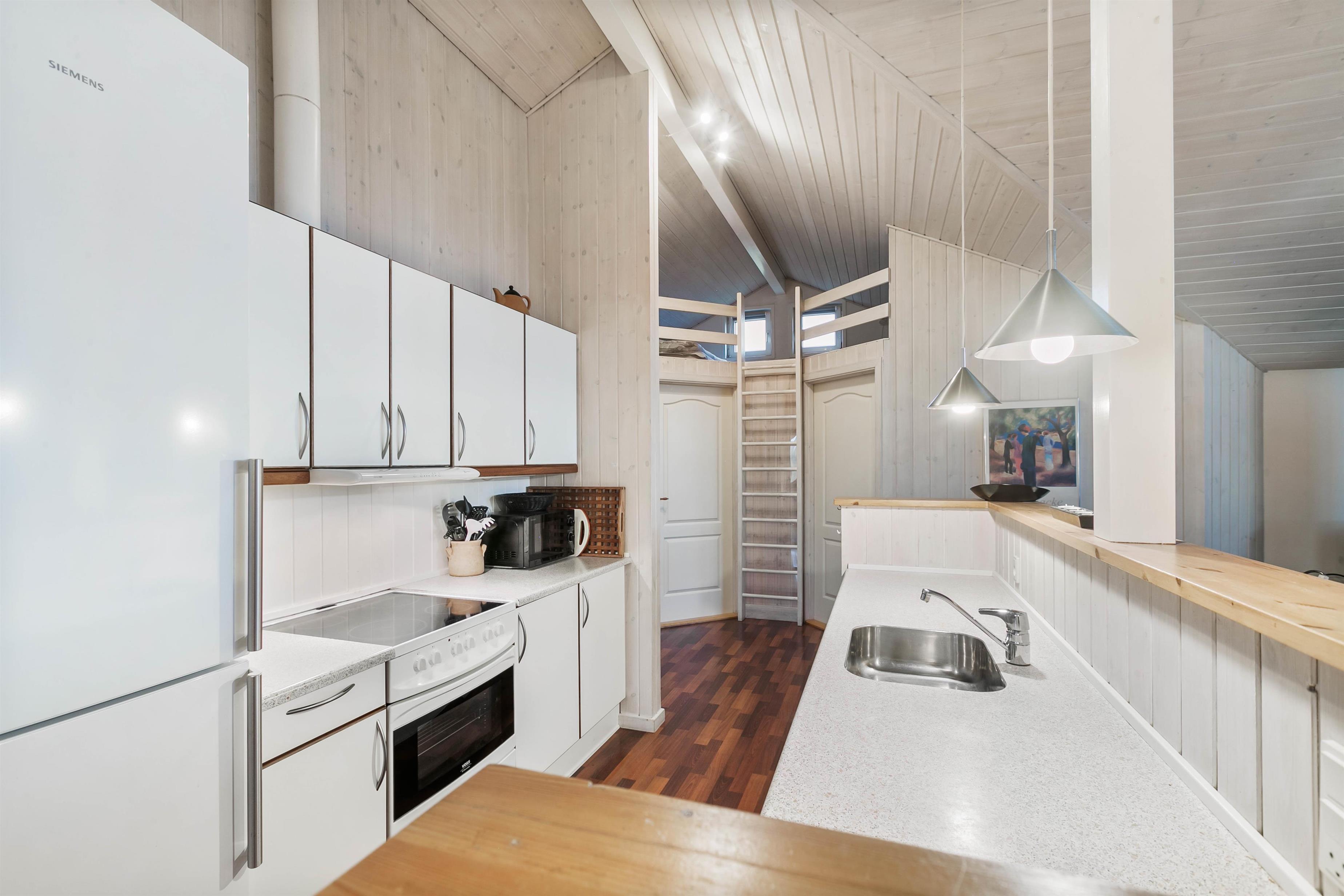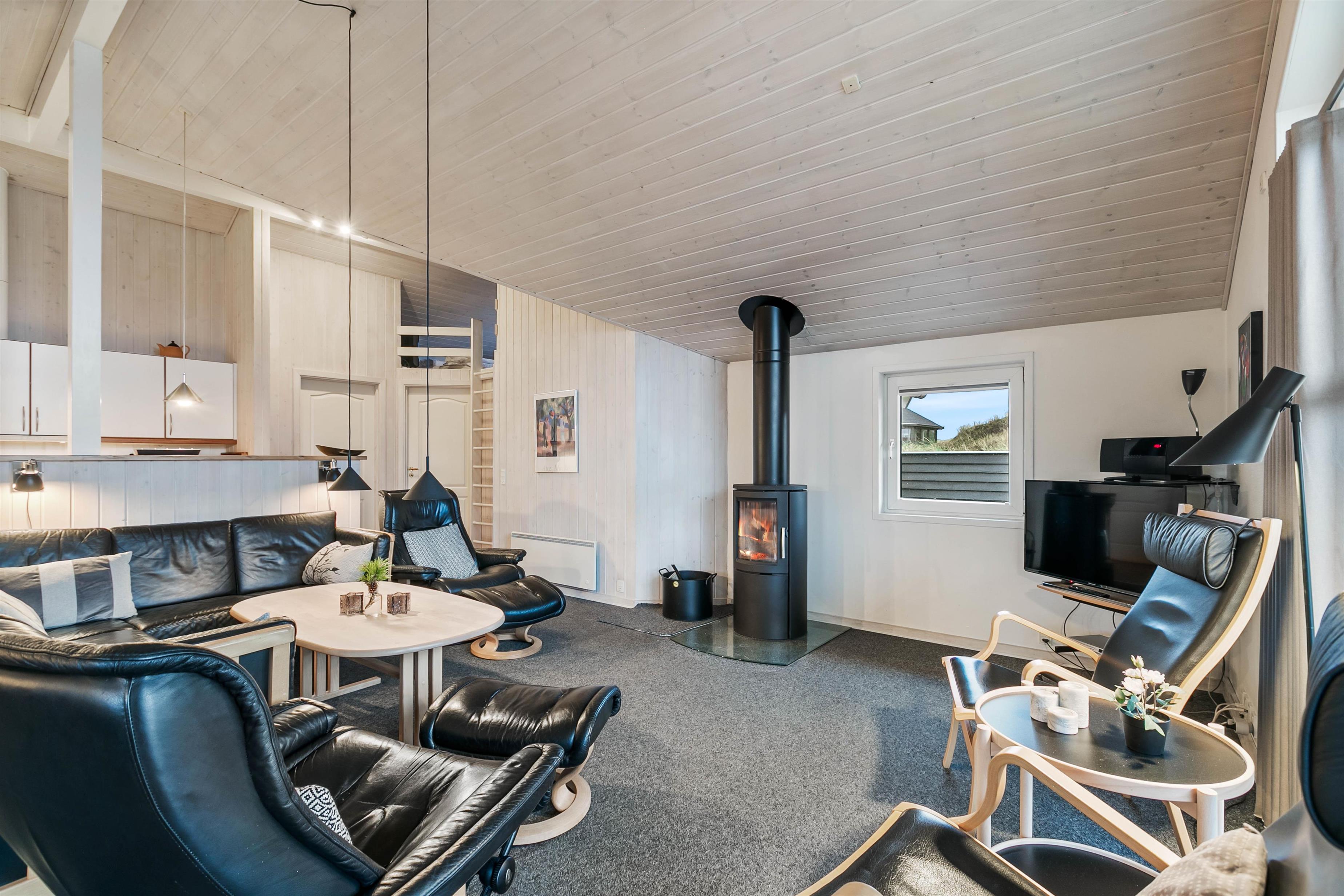 Feriehuset opvarmes bl.a. med en energibesparende varmepumpe, der holder strømomkostningerne nede og skaber et godt indeklima i feriehuset.