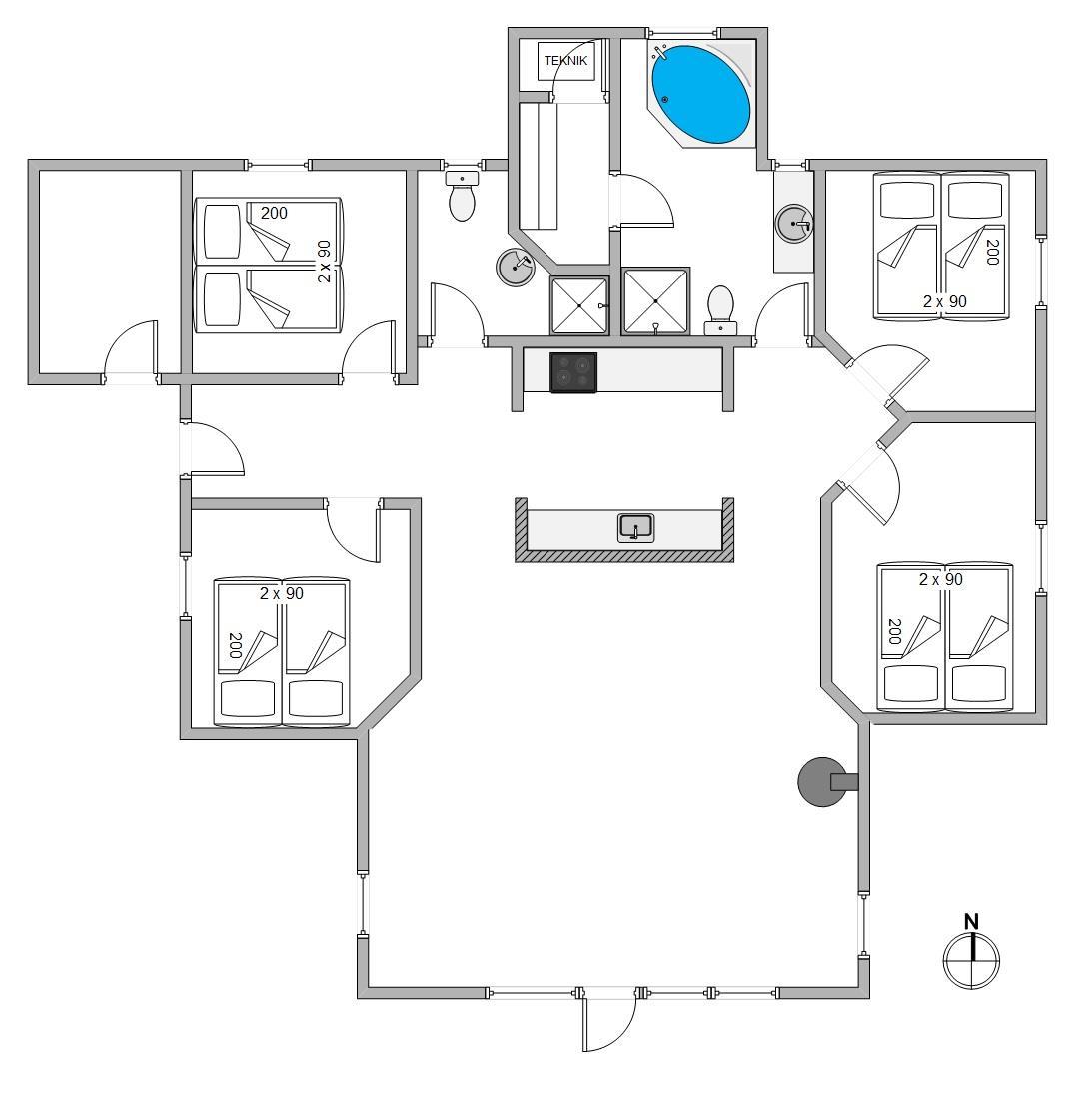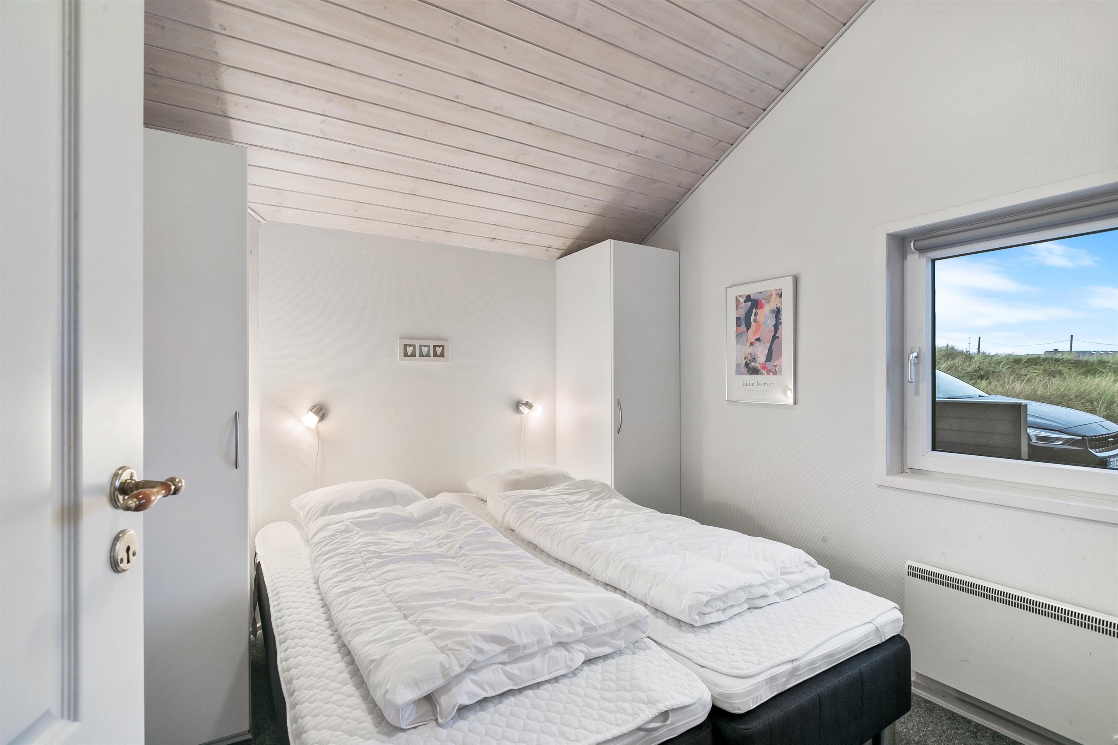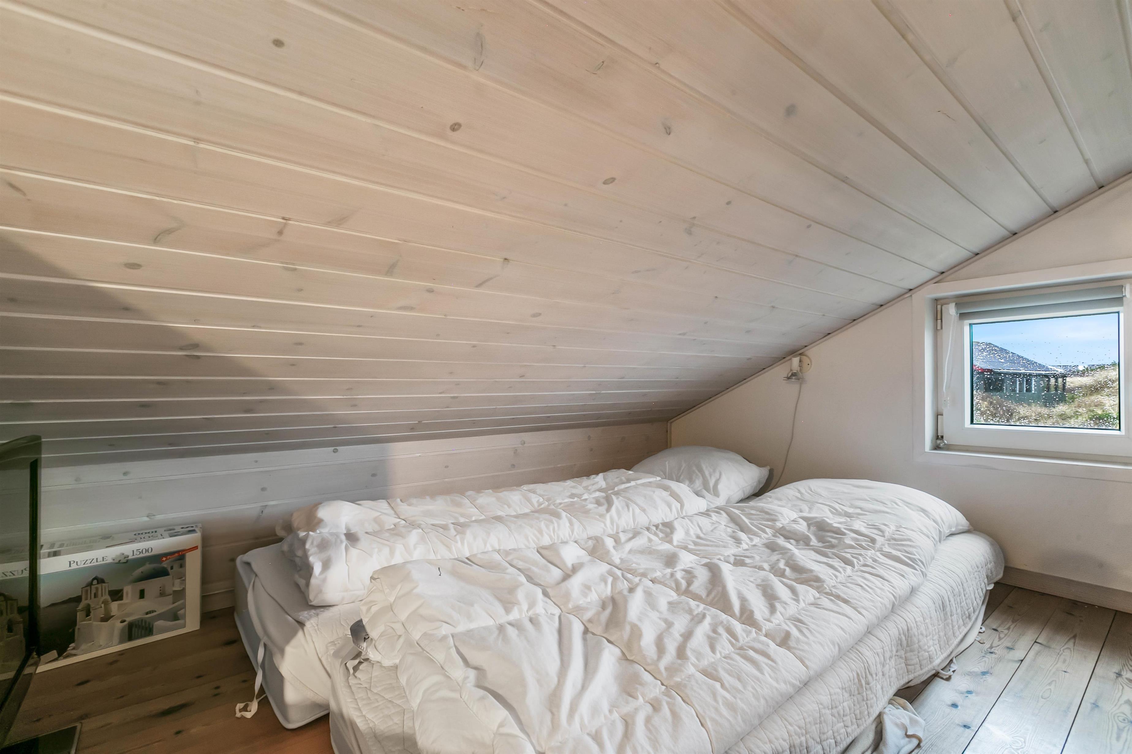 De 10 sovepladser er fordelt på 4 værelser samt en hems. Alle værelser er indrettet med dobbeltsenge og de sidste 2 sovepladser finder I på den fine hems.